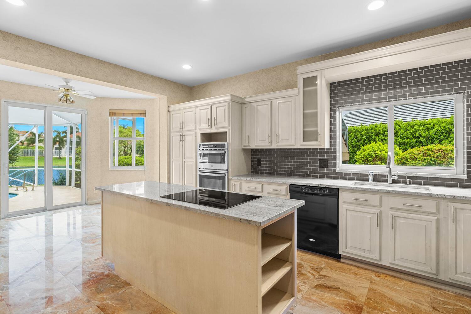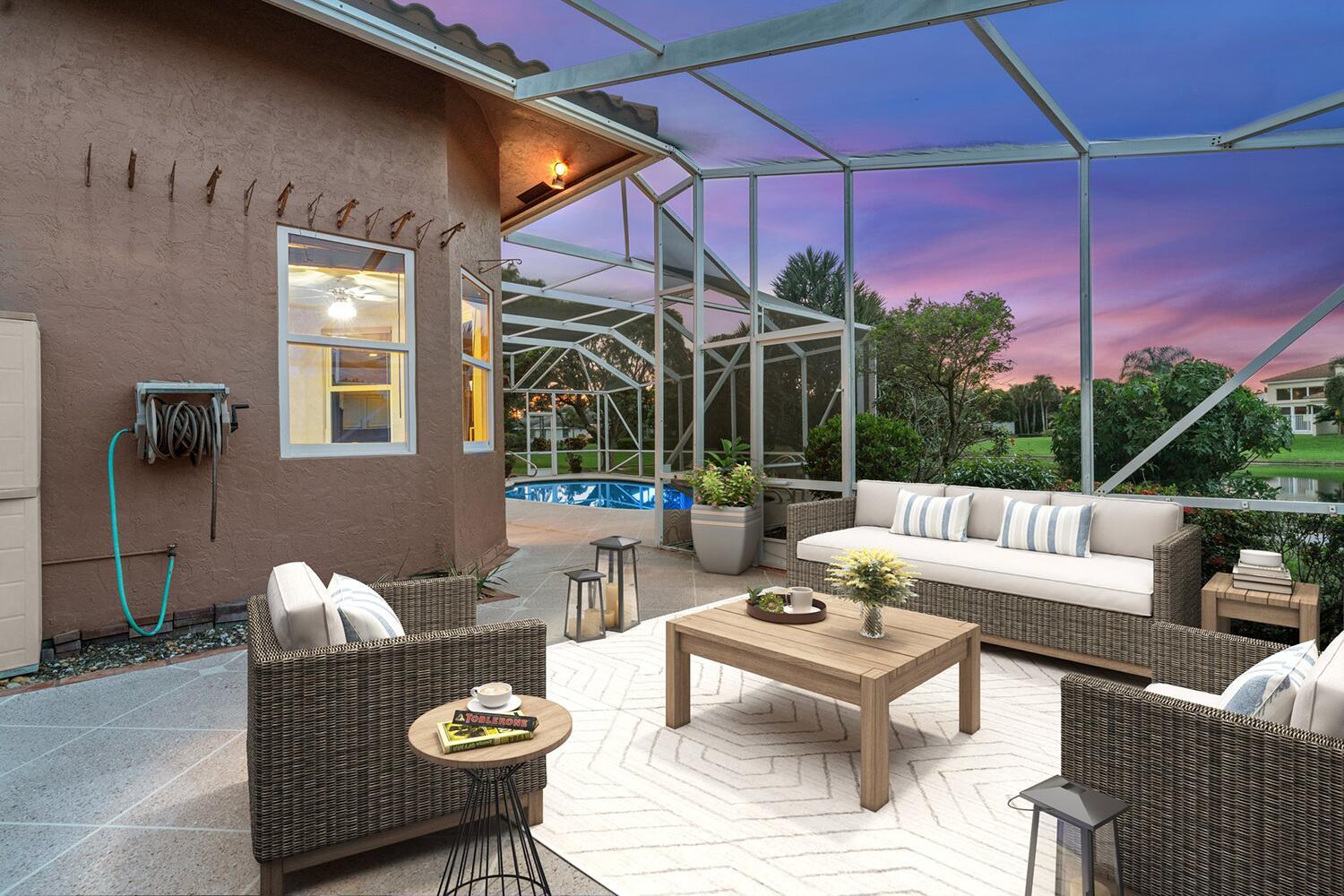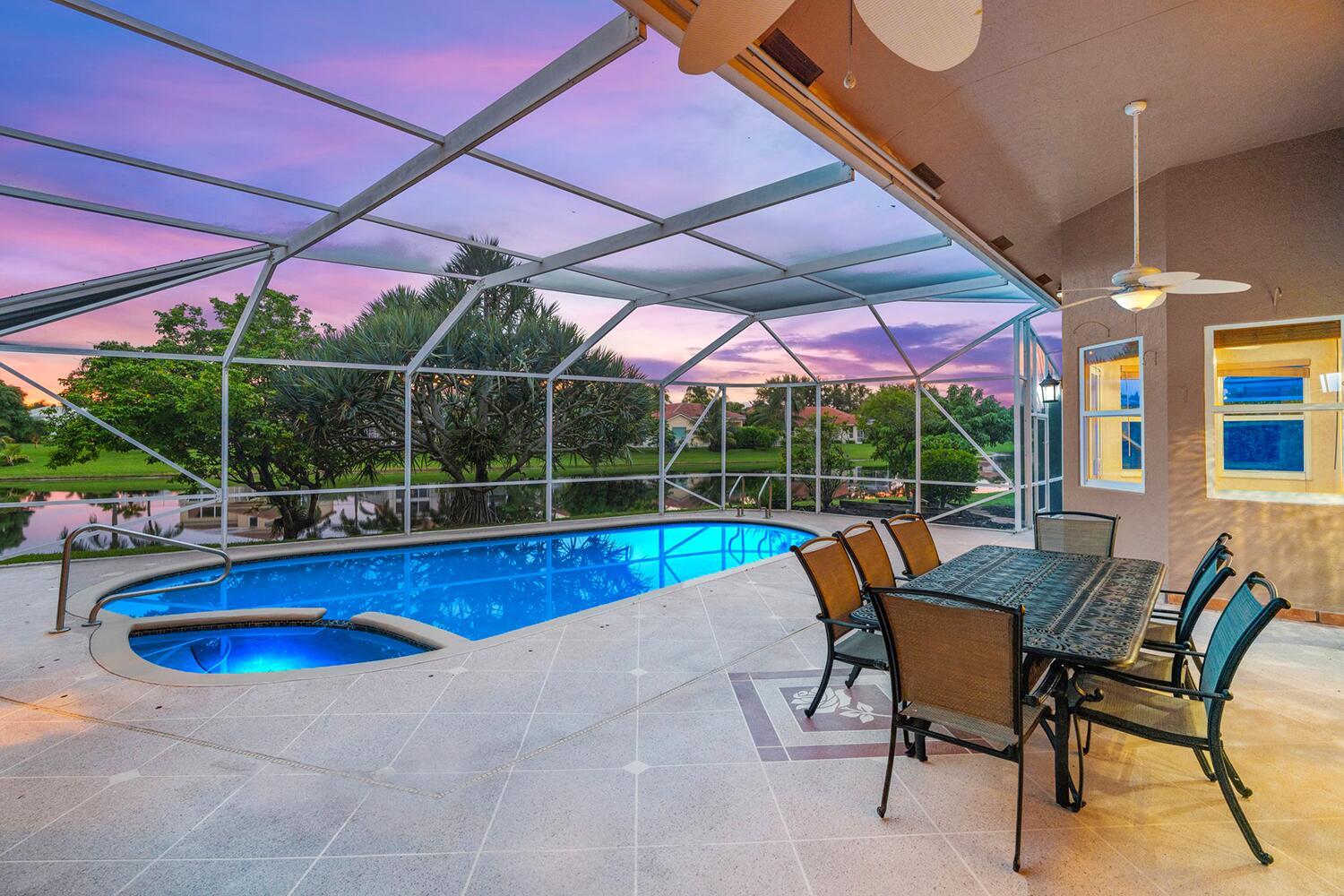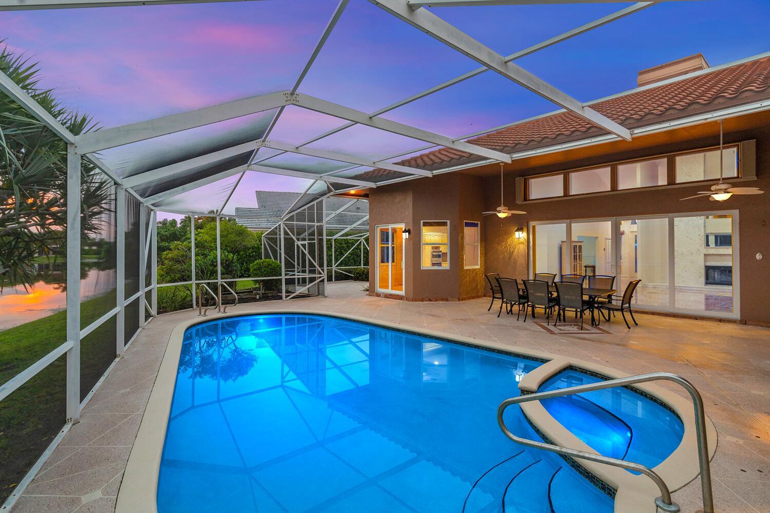 4 bedrooms, 3.5 bathrooms, one-story lakefront home with PRIVATE pool, spa, large yard, 2 car garage at the Newport Bay Club 24-hour manned gated community in Boca Raton. Family & Pet friendly, all-ages country club lifestyle with low monthly HOA fees, NO equity buy-in membership fees and A Rated Schools.The home features a den and family room with a coral fireplace, 22-foot ceilings, marble floors, updated bathrooms, a large eat-in kitchen, over-sized waterfront pool Screened patio.Newport Bay Club offers an active lifestyle with the new Sports Complex with Pickleball courts, and 7 Lighted Tennis courts, state-of-the-art fitness center, pro-shop, sauna, basketball court, staffed pro shop, heated swimming pool, kids playground and organized social events with many classes & club.