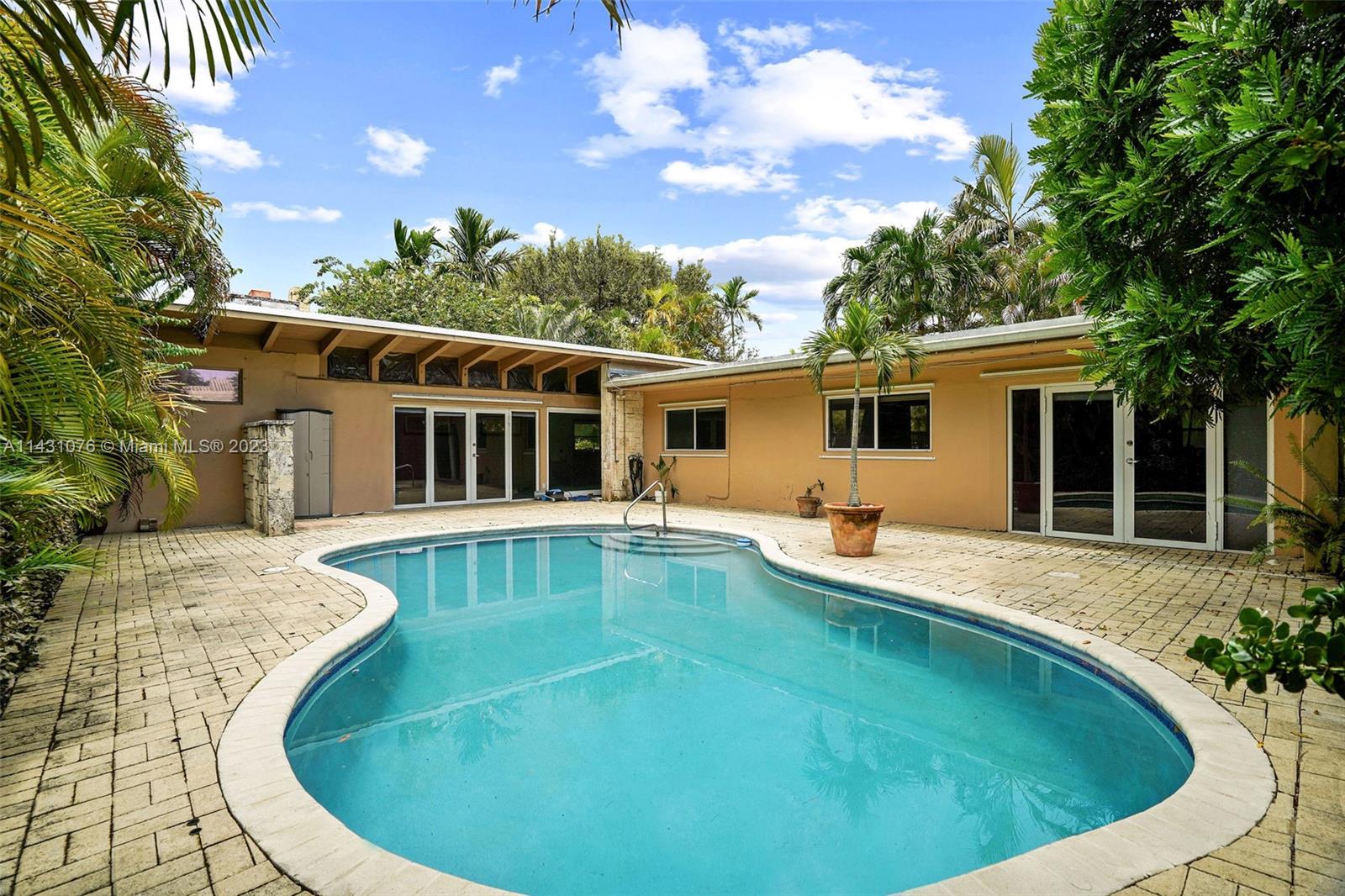 Mid-Century Modern home in the heart of Miami Shores. Designed by renowned architects Robert J Smith and Blair Wright with gorgeous Florida Keystone coral wall/fireplace, wood beam ceilings, and true indoor/outdoor living with all living spaces leading out to a tropical private pool. The home has been prepared for a full refresh and comes with a complete set of architectural plans, including a garage conversion that has already been approved by zoning. Skip the months of time it takes to get plans drawn and approved and get straight to work making this iconic home your own. Or add square footage to the current footprint with plenty of space to grow. Ideal central Shores location just blocks from elite schools, downtown shops and restaurants, library, parks, and athletic facilities.