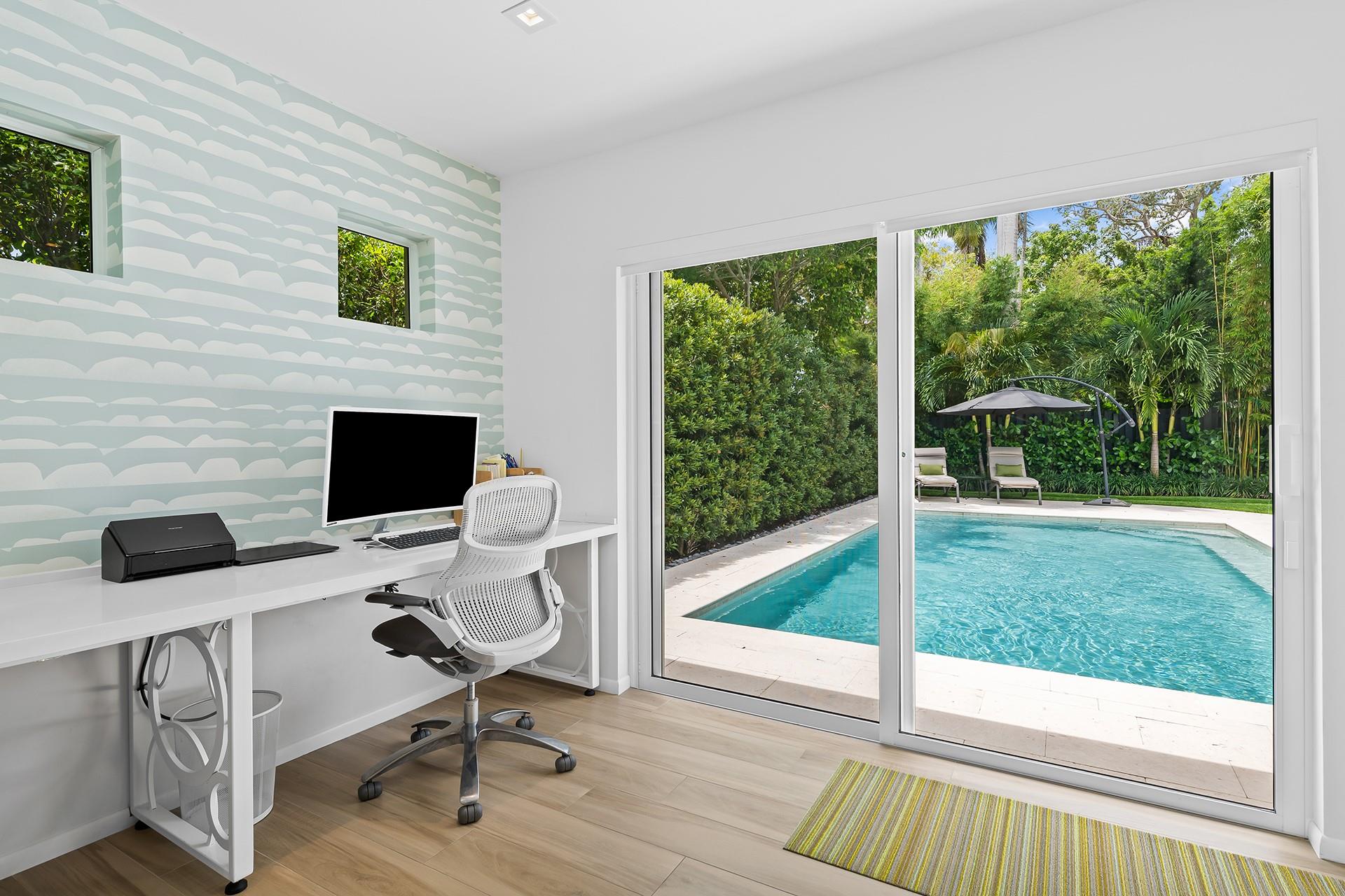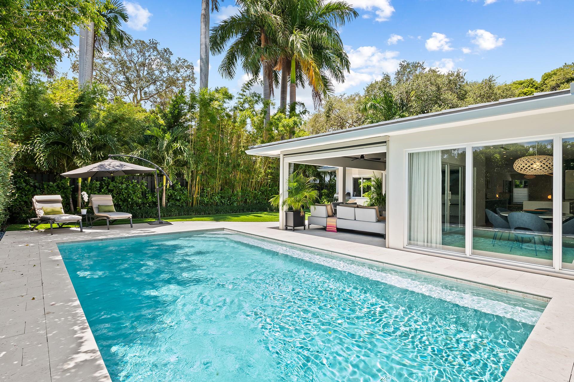 On the MOST beautiful street, in the MOST beautiful neighborhood - RIO VISTA - sits this highly renovated mid-century style "turnkey" residence offering 4 bedrooms, 3 Full baths, office/den, amazing outdoor living area with motorized phantom screens and gorgeous salt pool. Private/gated interior courtyard brings dappled sunlight inside, spectacular entertaining floorplan with center kitchen island, Italian appliances, opens onto the FAB outdoor living areas. Property is lush w/tropical landscaping adorning the 8869 SF lot. The front driveway can accommodate 4 vehicles comfortably. All impact windows/doors, roof, electric, plumbing, a/c’s, pool and water heater and gas generator hook up all new in 2019/2020.