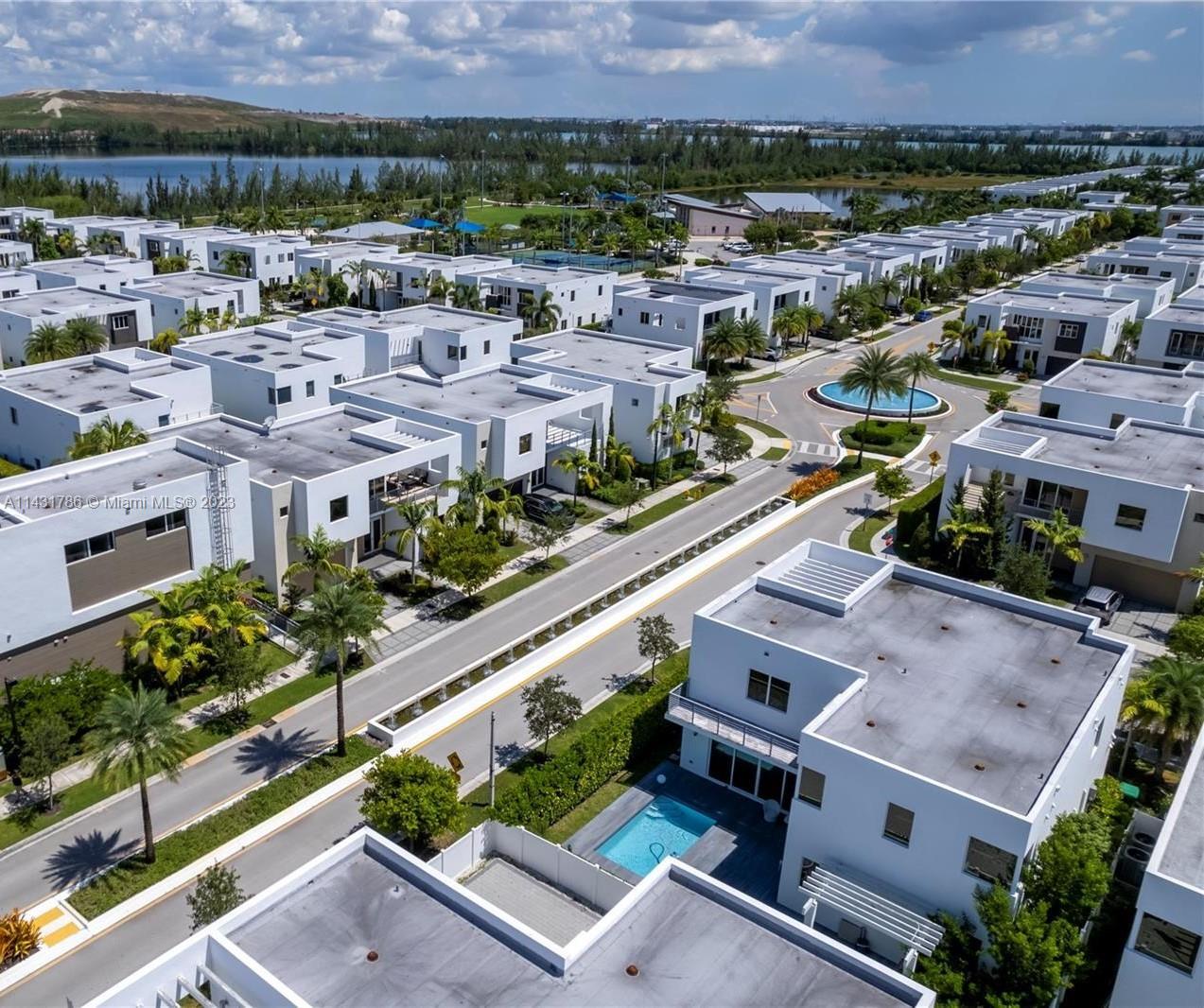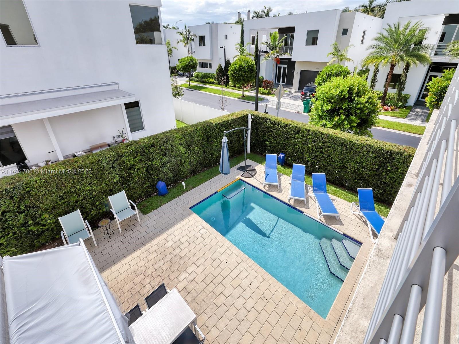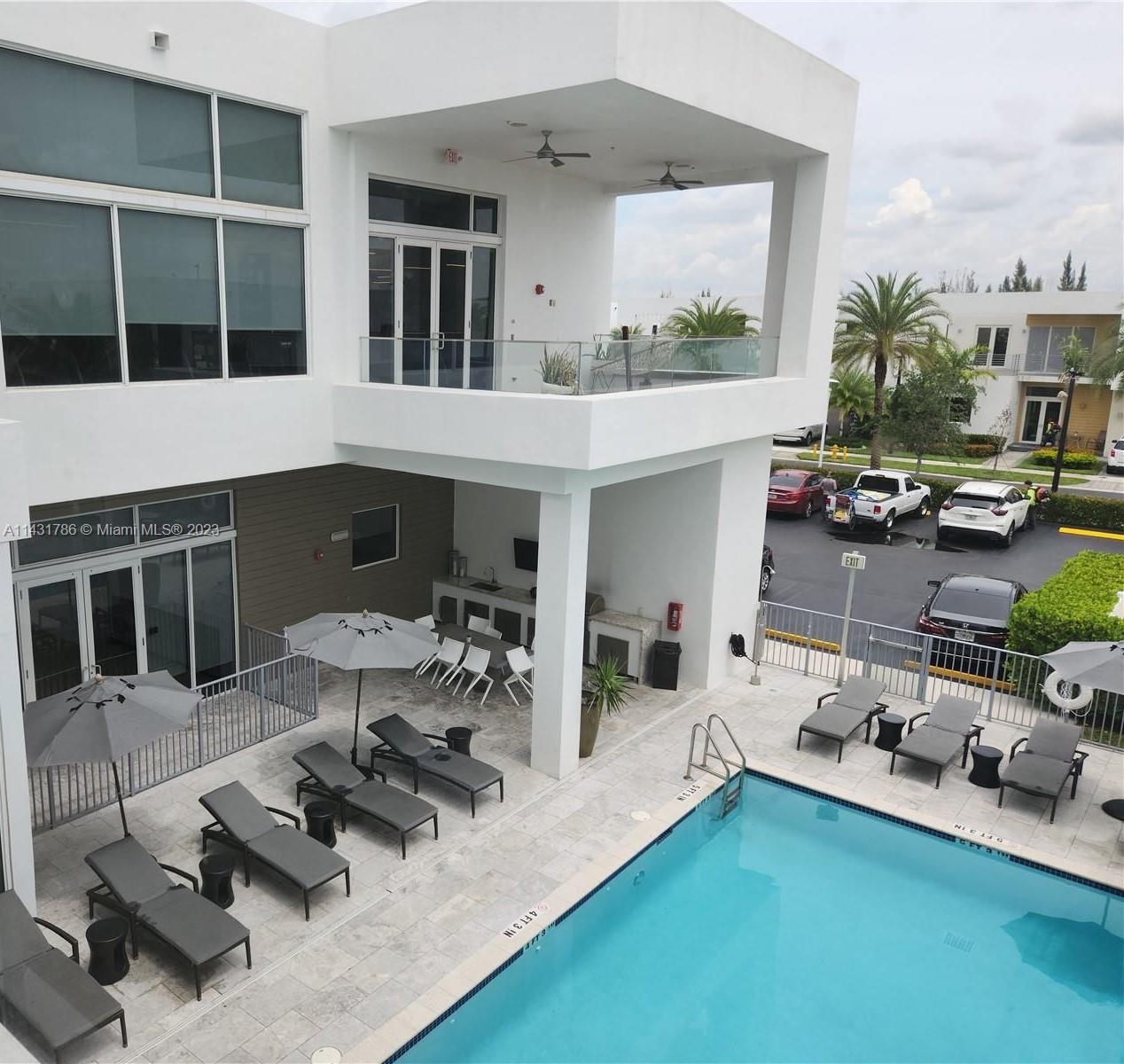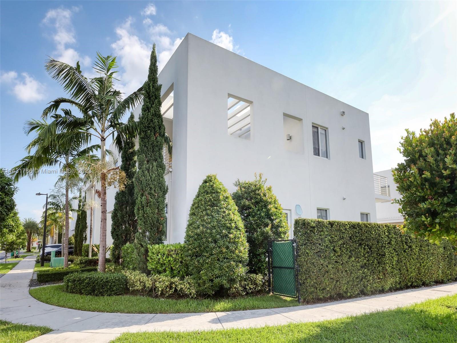 Beautiful 5-bedroom, 5-bathroom CORNER home for sale in the exclusive Modern 60 contemporary community in Doral. Open floor plan, 1 bedroom 1 bath on the first floor and elegant interior, high ceiling, impact windows and doors, porcelain floors on the first floor and hardwood floors on the second floor and stairs, white kitchen cabinets, quartz countertops and top of the line Bosch Stainless Steel appliances, under counter wine cooler, gas stove and water heater, 2 car garage and electric car charger, with a good size private pool and patio rear, Pergola with outdoor kitchen. includes sonox sound in outdoor patio and smart camera and doorbell system, Clubhouse with meeting areas, fully equipped gym and children's playroom, media room and kitchenette, pool, spa, gazebo area and more.
