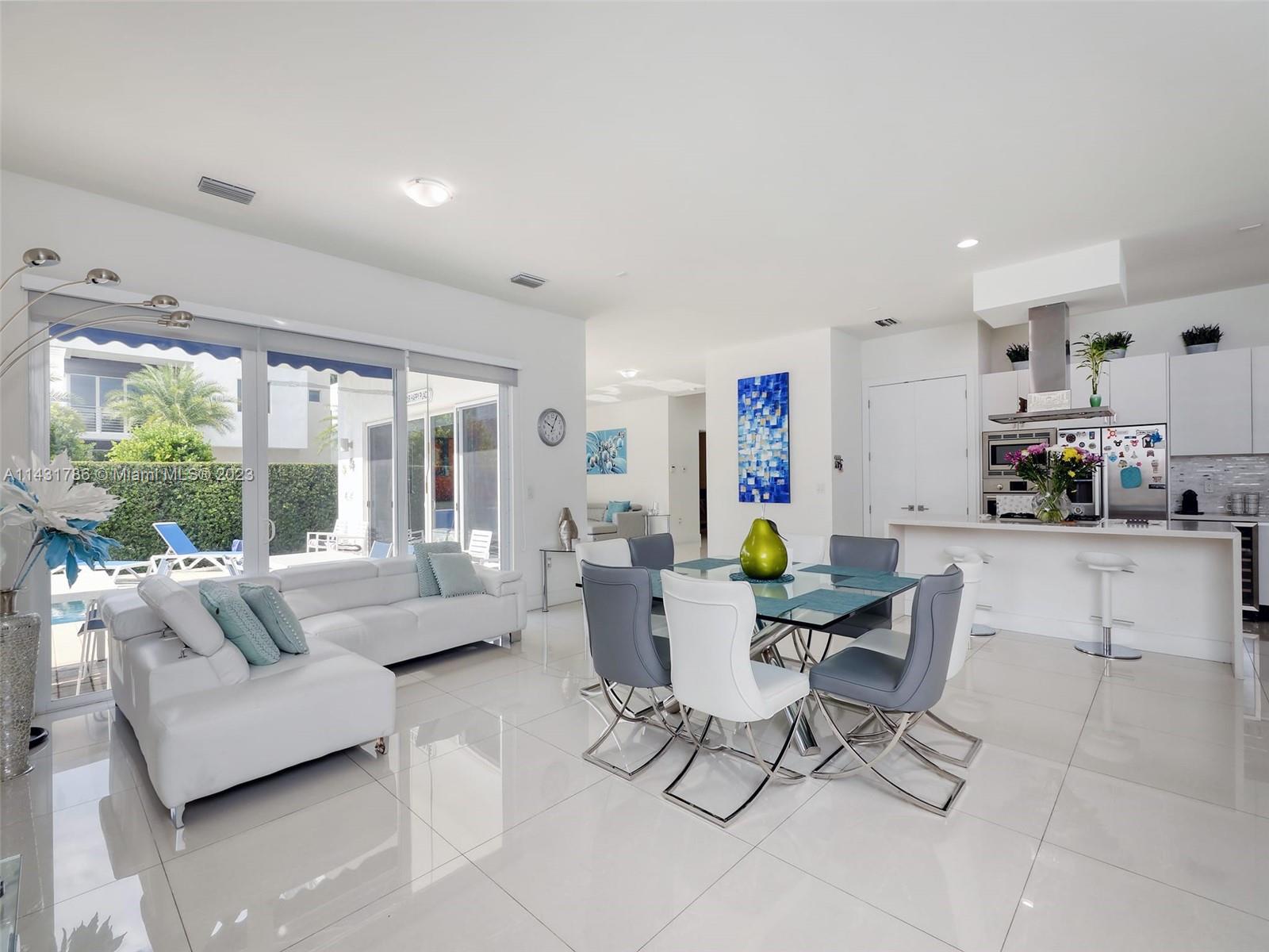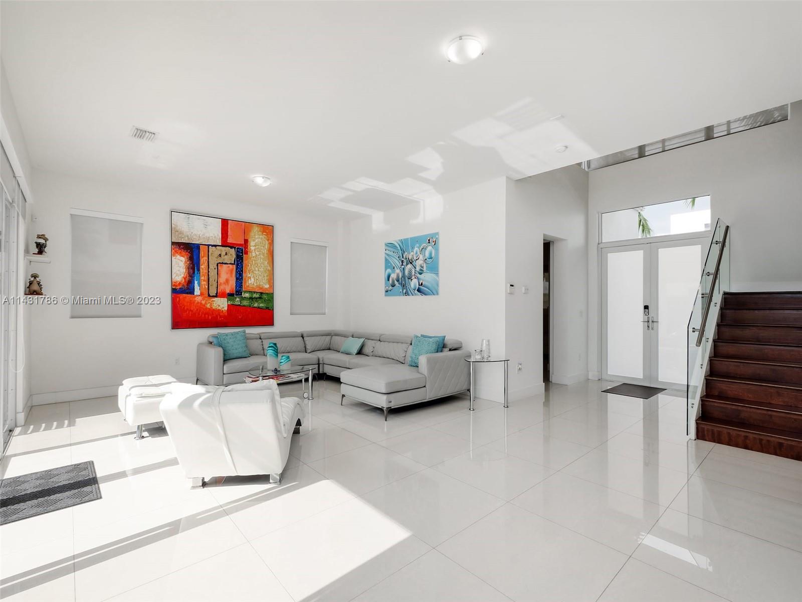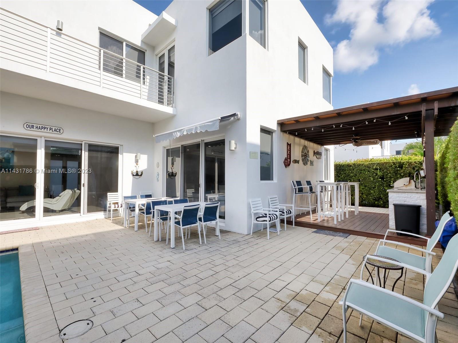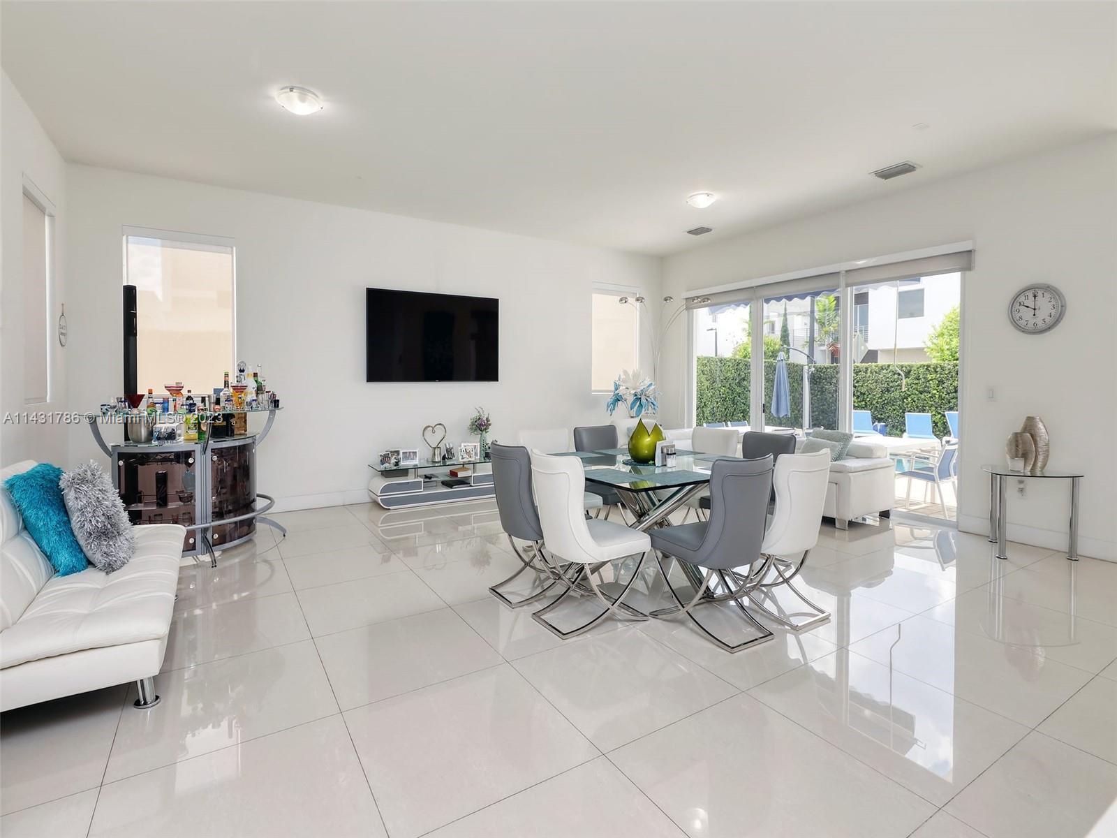 Beautiful 5-bedroom, 5-bathroom CORNER home for sale in the exclusive Modern 60 contemporary community in Doral. Open floor plan, 1 bedroom 1 bath on the first floor and elegant interior, high ceiling, impact windows and doors, porcelain floors on the first floor and hardwood floors on the second floor and stairs, white kitchen cabinets, quartz countertops and top of the line Bosch Stainless Steel appliances, under counter wine cooler, gas stove and water heater, 2 car garage and electric car charger, with a good size private pool and patio rear, Pergola with outdoor kitchen. includes sonox sound in outdoor patio and smart camera and doorbell system, Clubhouse with meeting areas, fully equipped gym and children's playroom, media room and kitchenette, pool, spa, gazebo area and more.