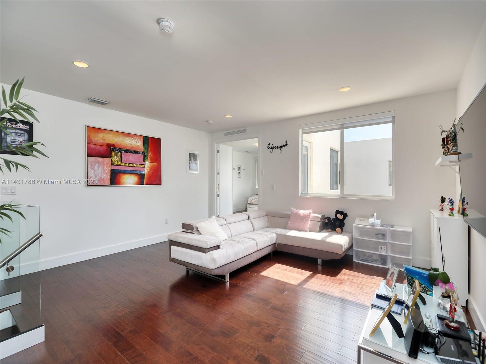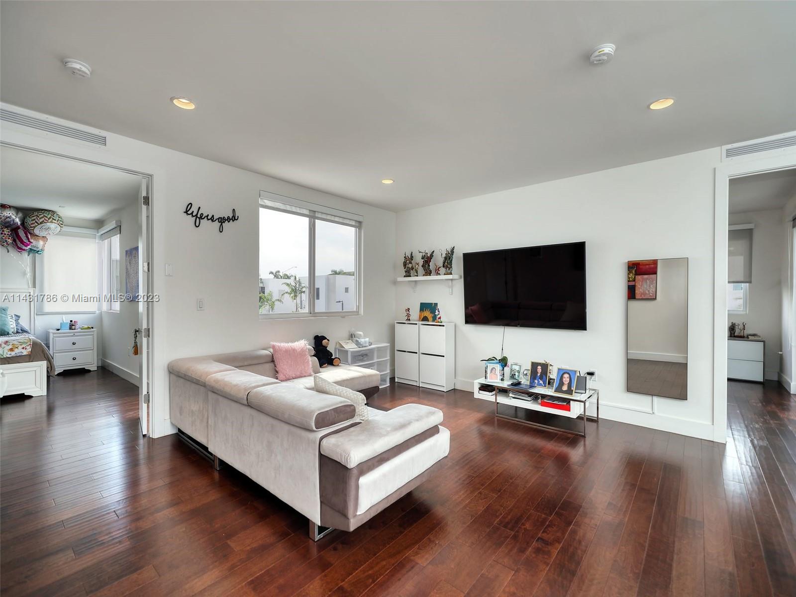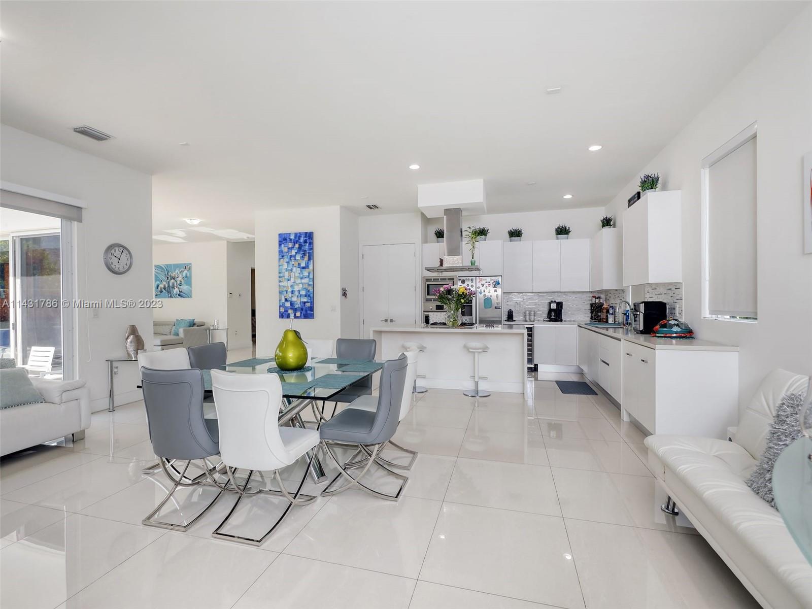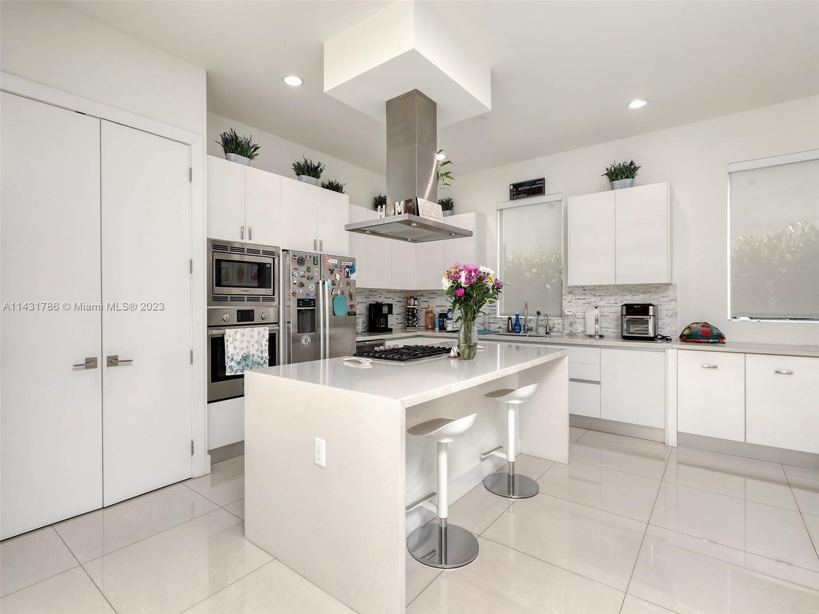 Beautiful 5-bedroom, 5-bathroom CORNER home for sale in the exclusive Modern 60 contemporary community in Doral. Open floor plan, 1 bedroom 1 bath on the first floor and elegant interior, high ceiling, impact windows and doors, porcelain floors on the first floor and hardwood floors on the second floor and stairs, white kitchen cabinets, quartz countertops and top of the line Bosch Stainless Steel appliances, under counter wine cooler, gas stove and water heater, 2 car garage and electric car charger, with a good size private pool and patio rear, Pergola with outdoor kitchen. includes sonox sound in outdoor patio and smart camera and doorbell system, Clubhouse with meeting areas, fully equipped gym and children's playroom, media room and kitchenette, pool, spa, gazebo area and more.