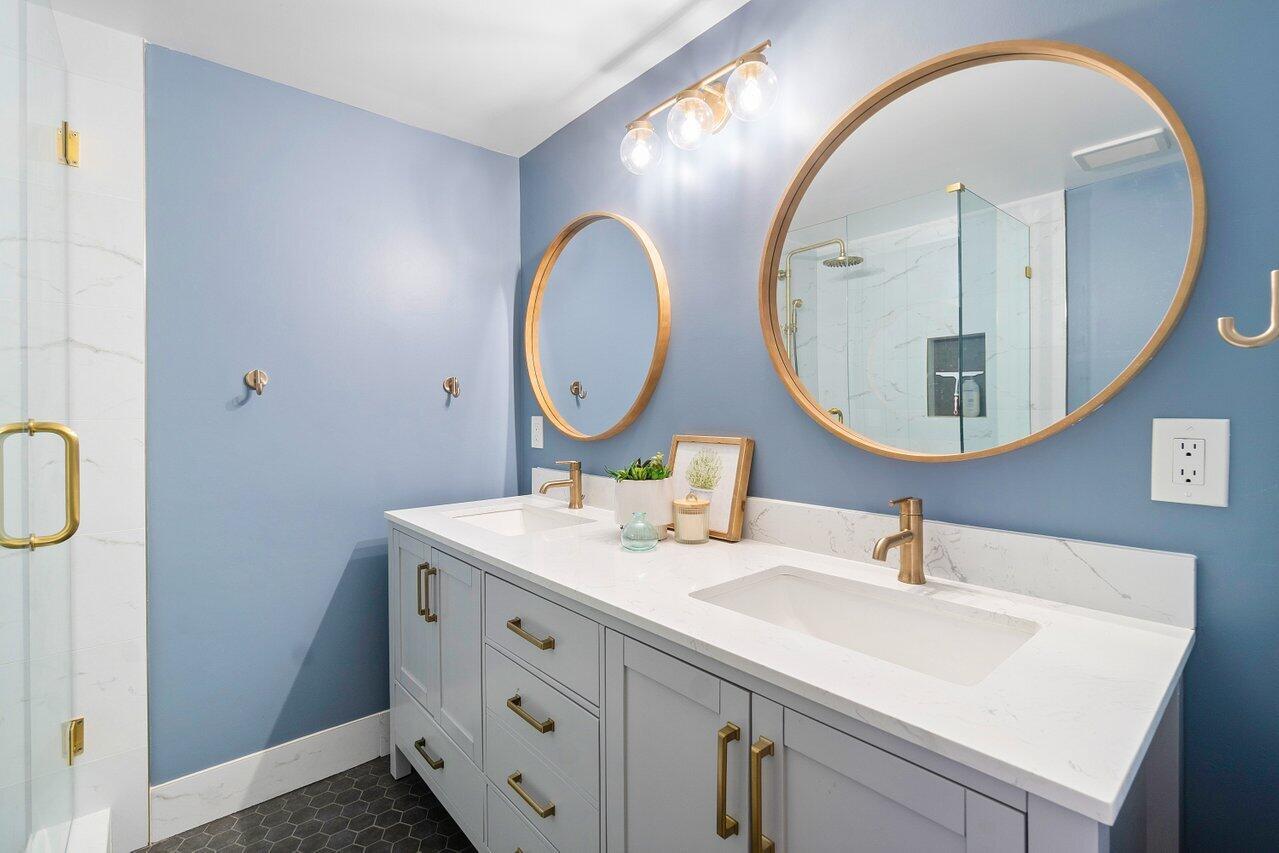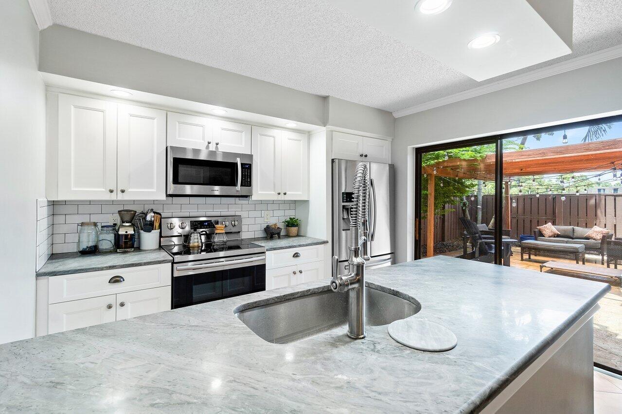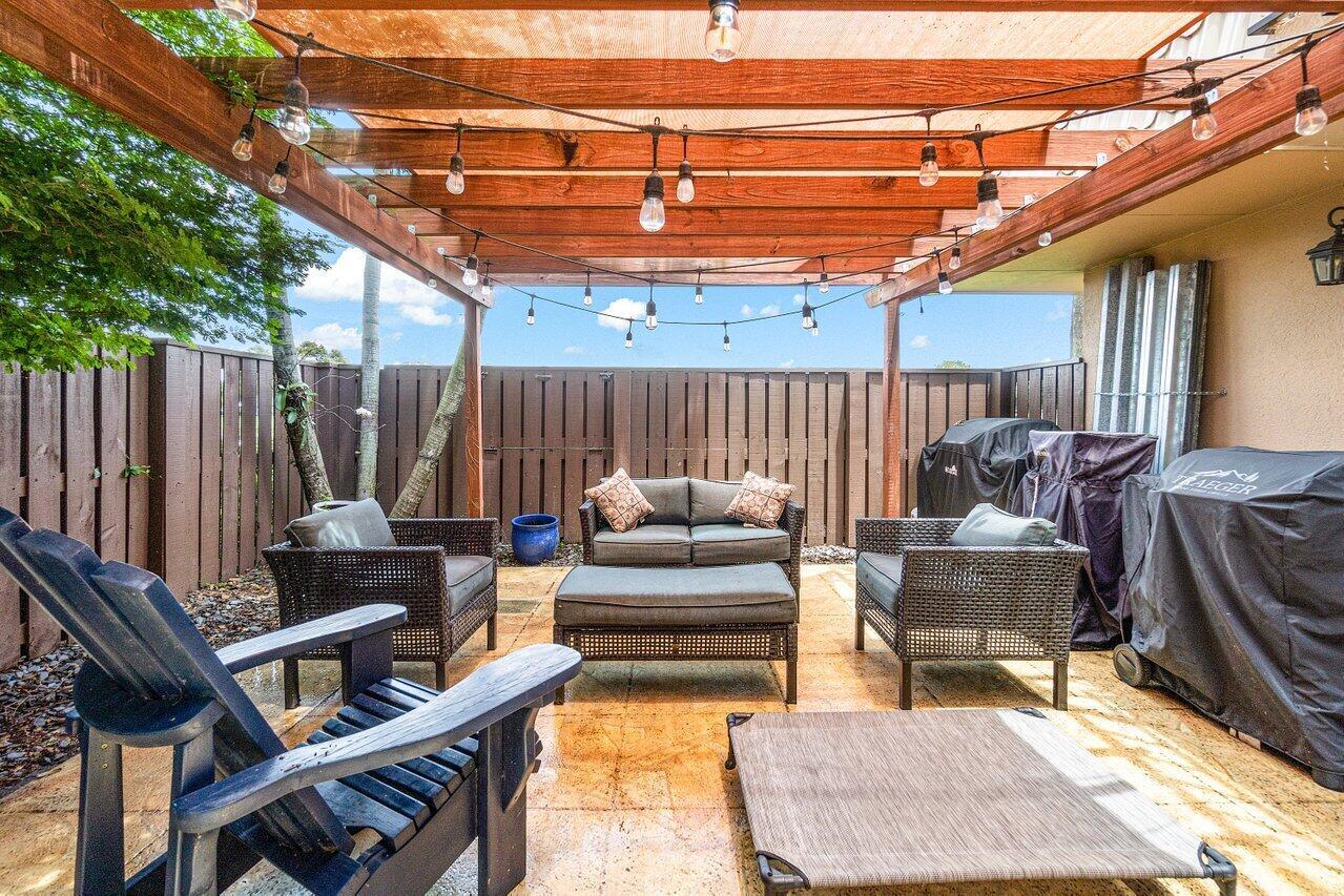 GORGEOUSLY RENOVATED 2 BEDROOM / 2.1 BATHROOM TOWNHOME WITH WATER VIEWS AND FENCED IN PATIO. This immaculate home features: a Brand New Kitchen with New Appliances, New Washer and Dryer, and A Top of the line Master Bathroom Renovation! The spacious first floor flows from the oversized living room to an Eat in Kitchen and then extends out to a large patio with custom Pergola. It is a fantastic space for your Friends and Family! Upstairs you will find 2 Master Bedrooms, each with an Ensuite Bathroom, separate Balcony and Water Views. Sandalwood Lakes South is a Friendly all age community with access to 3 community pools. This ideal location is close to shopping, restaurants, entertainment and West Palm Beach Airport.