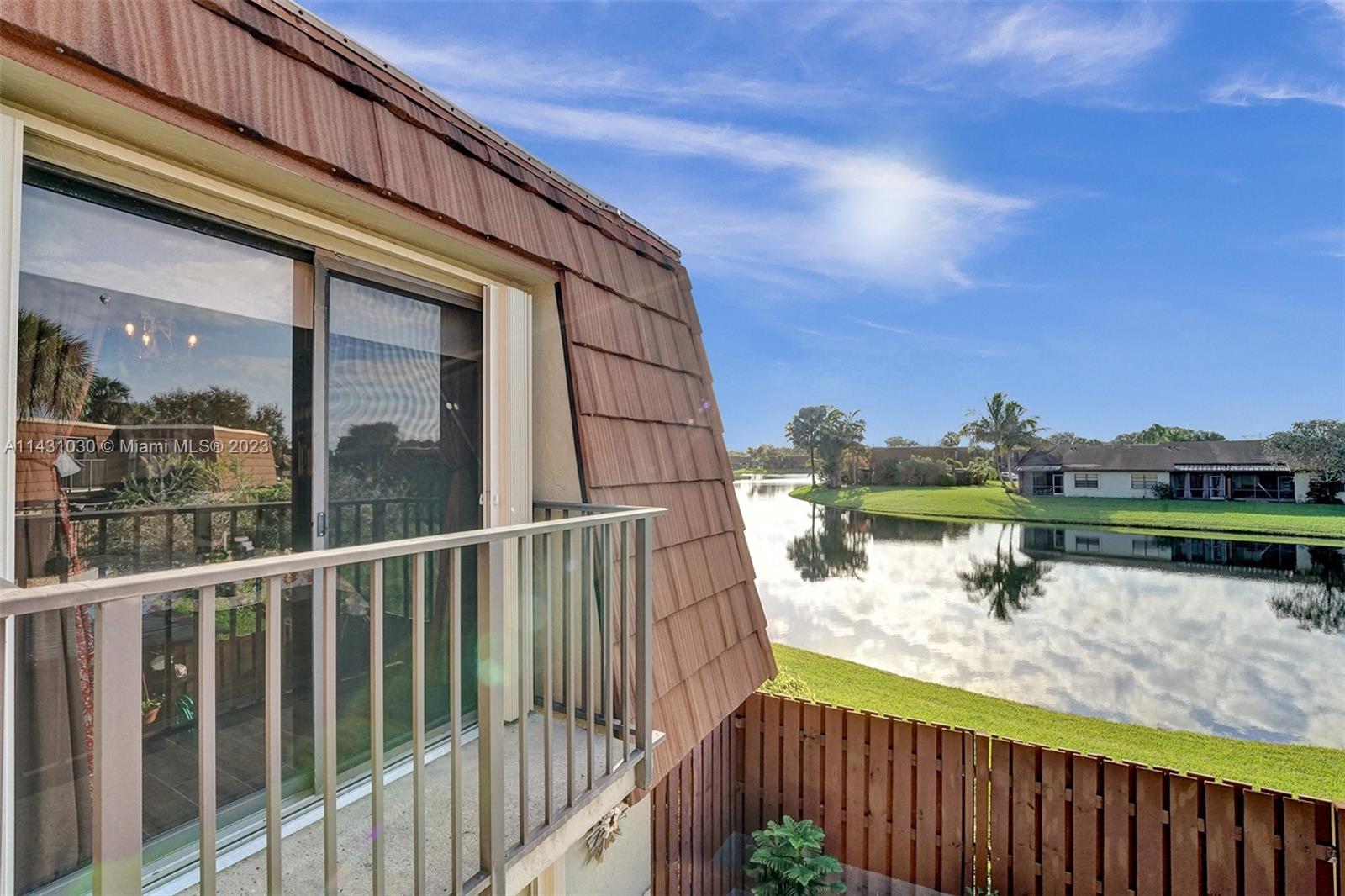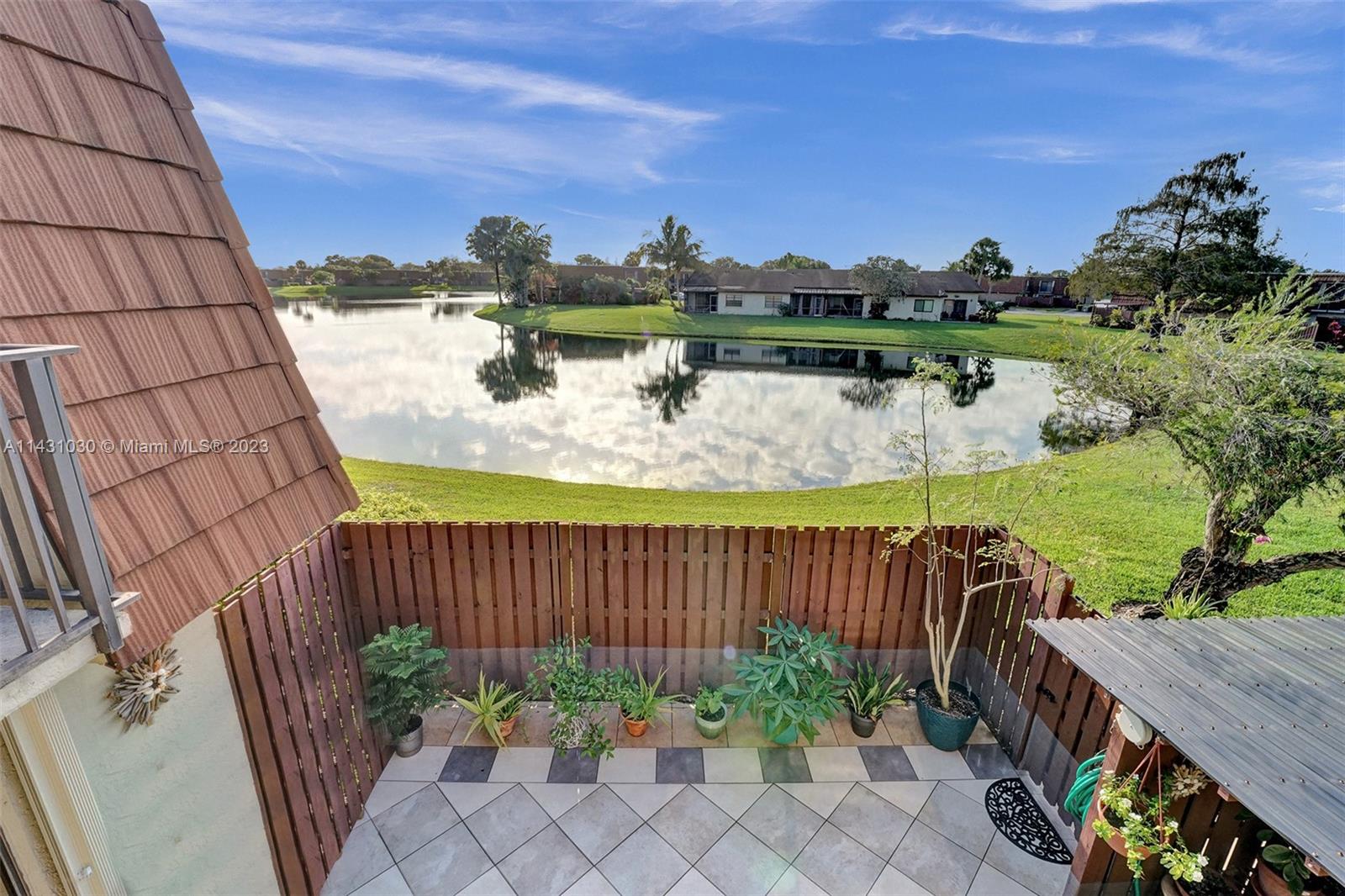 Beautiful 3 beds with 2 and 1/2 baths townhouse in a nice and quiet community. Property is located by the lake and has a gorgeous water view from balconies. Very private patio and one bedroom is on main floor. Unit has a half bathroom with a washer and dryer machine. Townhouse has new appliances, new air conditioning and accordion shutters. Lower Association fees and they cover the roof for repairs or replacement. Community has nice amenities like pool, kids playground, basketball and tennis court.