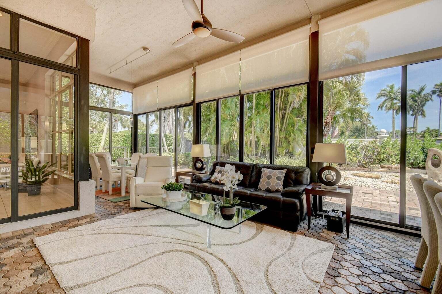 Tucked behind the gate of Broken Sound's beautiful Oak Run community, discover this lavish 3 bedroom, 2.5 bath single story home. Originally built as a model home and located on an oversized corner lot this property is one of a kind. The renovated kitchen features porcelain tile floors, stainless appliances, white cabinets and fabulous eat in area. The tremendous primary suite features a built in office, & custom walk-in closet . All bathrooms have been renovated with contemporary finishes such as frameless shower, quartz counters & porcelain floors. The massive sunroom provides additional living space surrounded by floor to ceiling windows & the ideal place to entertain. The patio offers a serene and picturesque setting with beautiful hedges and landscaping. Will not last​​‌​​​​‌​‌​​​​‌‌​‌​​​​‌‌​​‌‌​​‌‌ long!