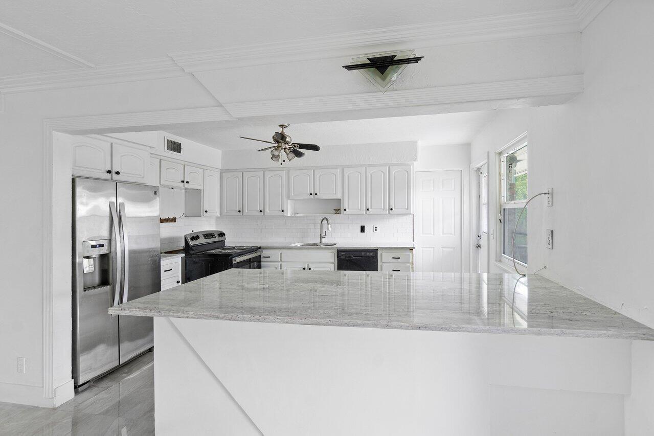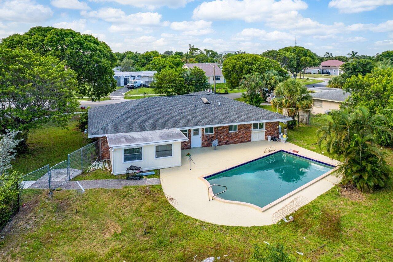 This stunning corner home has been fully renovated! It boasts a brand new roof, kitchen isles with new appliances, and beautiful new floors. Best of all, it comes with a huge backyard and a lovely swimming pool. Located conveniently close to I-95 and the West Palm Beach outlets, you'll find yourself in the middle of two great hospitals and just a few minutes away from the beach. Don't wait any longer to see this amazing property! All showings will be held starting on Saturday, August 12th.Seller still working on some details which will be done on Saturday.