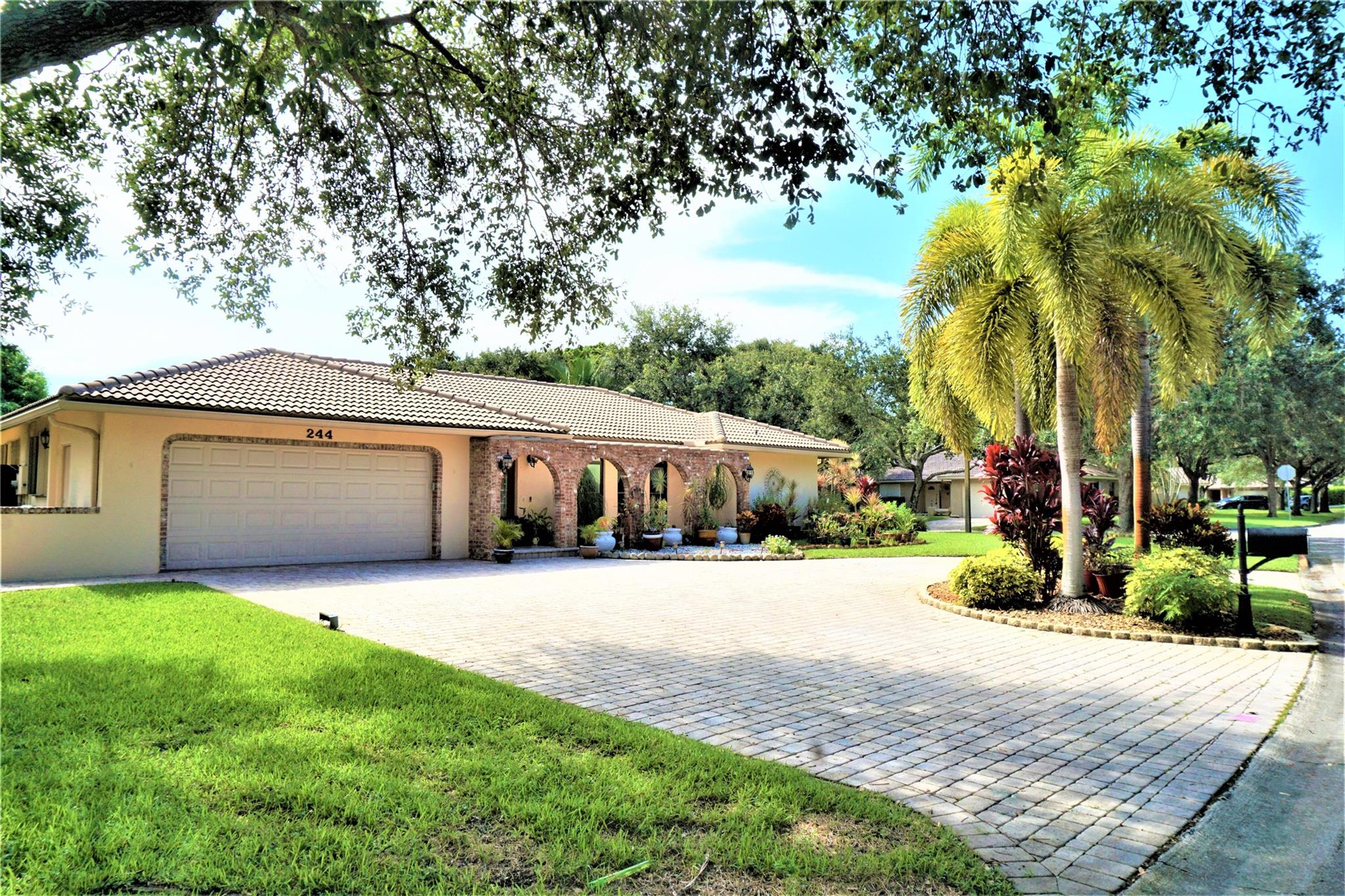 PRICED TO SELL! Welcome to your Coral Springs Dream Home! This amazing corner lot home boasts a lush & meticulously landscaped lot & circular paved driveway! The custom kitchen, granite counters & double ovens will impress any culinary enthusiast. Step outside to your private oasis with a stunning outdoor living area with a swimming pool, perfect for relaxation & entertaining. Cathedral ceilings create an open, bright living space, with a touch of grandeur! NO HOA fees! 2015 A/C, 2007 Roof, 2021 Impact-Resistant Windows/Doors/Garage Door for safety, newer Well/Sprinkler, Fruit Trees, Patio Shutters, Sun Screen & more! Diagonal Floor Tiles add an elegant touch! Furniture, Tiffany lamps negotiable with owners. Don't miss the opportunity to own this captivating home! Bring your best offers!