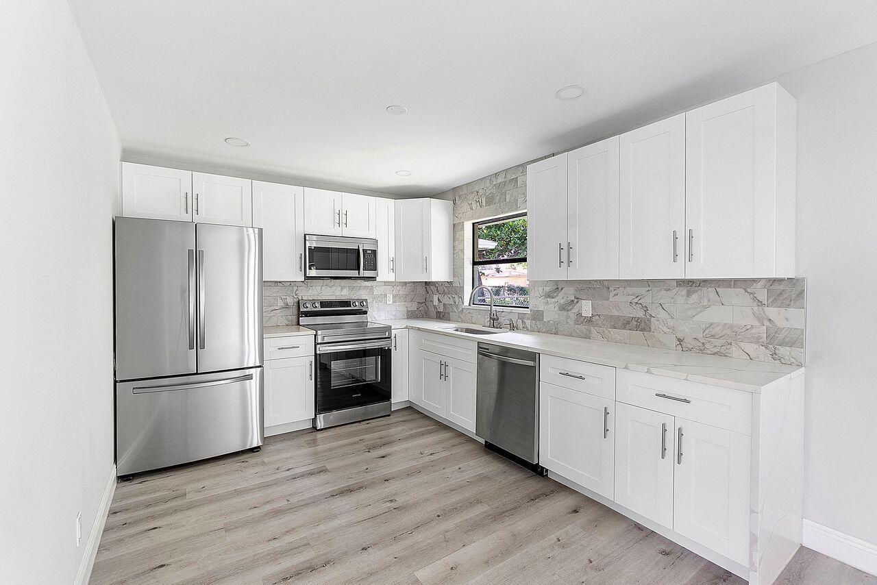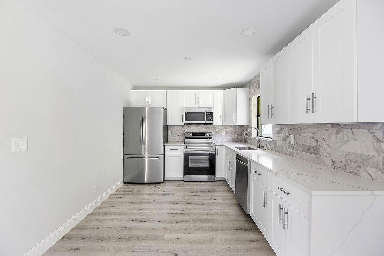 This single-family residence has undergone a complete renovation, offering a modern & inviting space.Spacious open floor plan, creates a seamless flow from room to room. There are currently no appliances in the property - elegant quartz countertops & brand-new cabinetry provide ample storage space & view of your very own private backyard.Split floor plan ensures maximum privacy & convenience. Master bedroom includes generous walk-in closet & a luxurious master bathroom.Carefree waterproof vinyl flooring, a durable & attractive option that's easy to maintain.New water heater & AC.Fenced yard offers a secure/private space & smart irrigation.Home sits on over 5,700 sqft providing plenty of room for a pool. Located within easy access to major roads, schools, shopping, dining & parks.