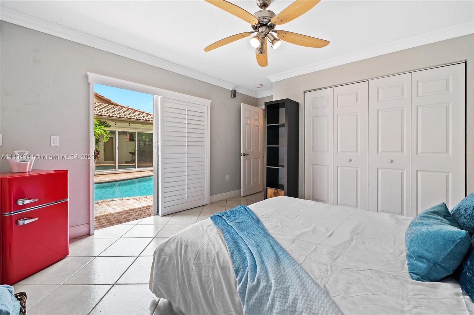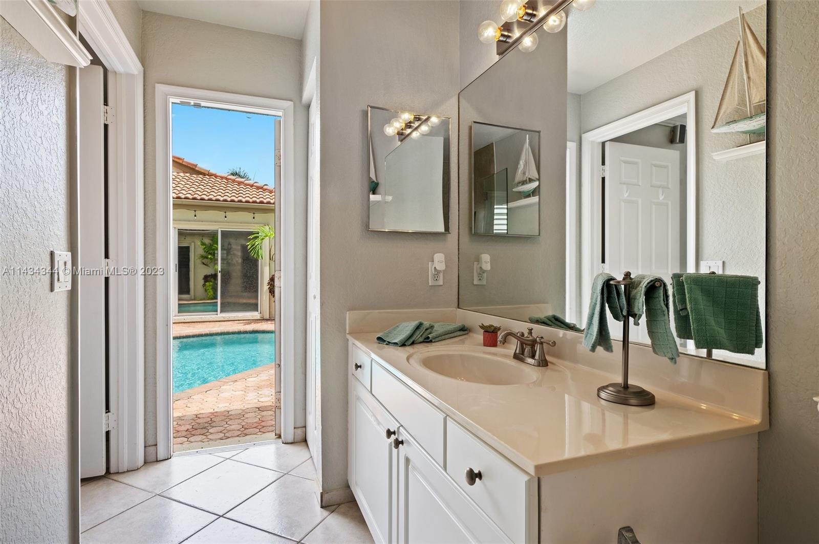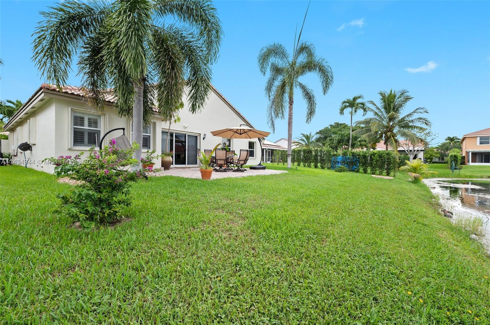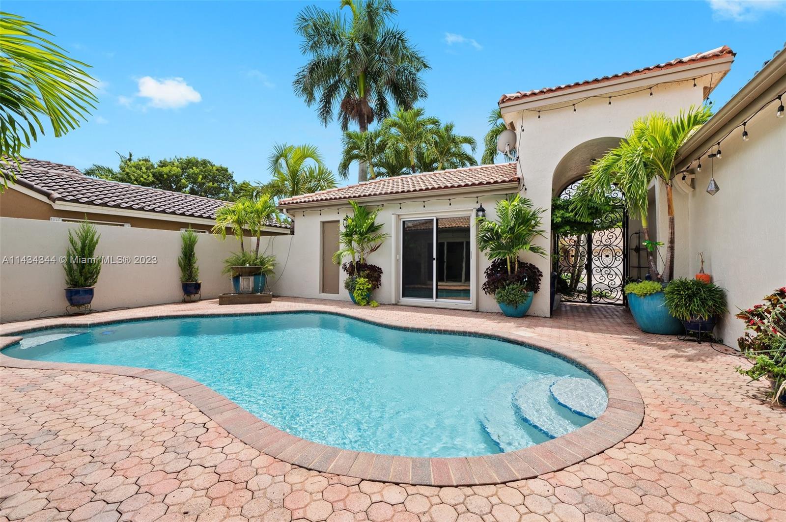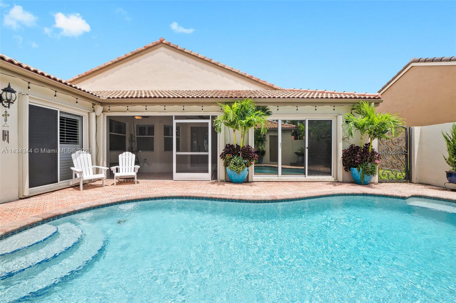 This elegant home with its timeless design works perfectly in our modern society!! As you arrive you are greeted by these beautiful, ornate metal gate that leads to the courtyard with a freeform pool. The pool has been updated with a saltwater system! The 4th bedroom/guest/in-laws quarter is located towards the front of the courtyard with a full cabana bathroom. Step inside the main house & notice the volume ceiling, custom moldings & the upgraded gorgeous plantation shutters. Enjoy the serene lake view or afternoon barbeques from the extended open patio. The main house also features newly installed California closet systems in all the bedroom closets. The home also has updated accordion shutters and a new ac unit. This much sought after courtyard style home will not last...