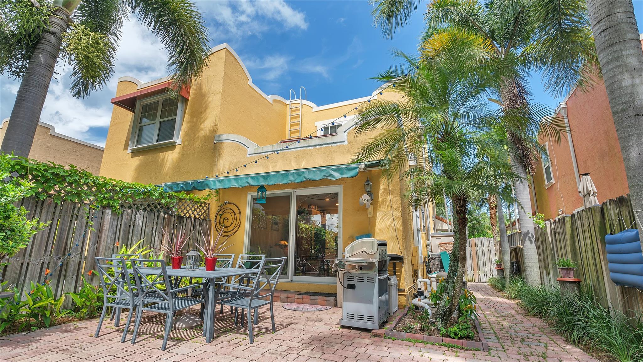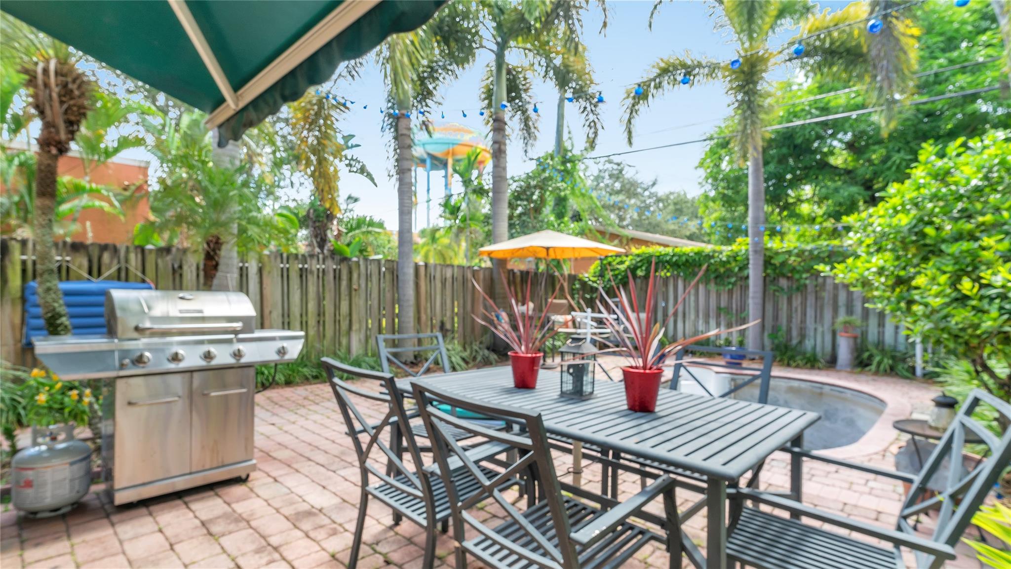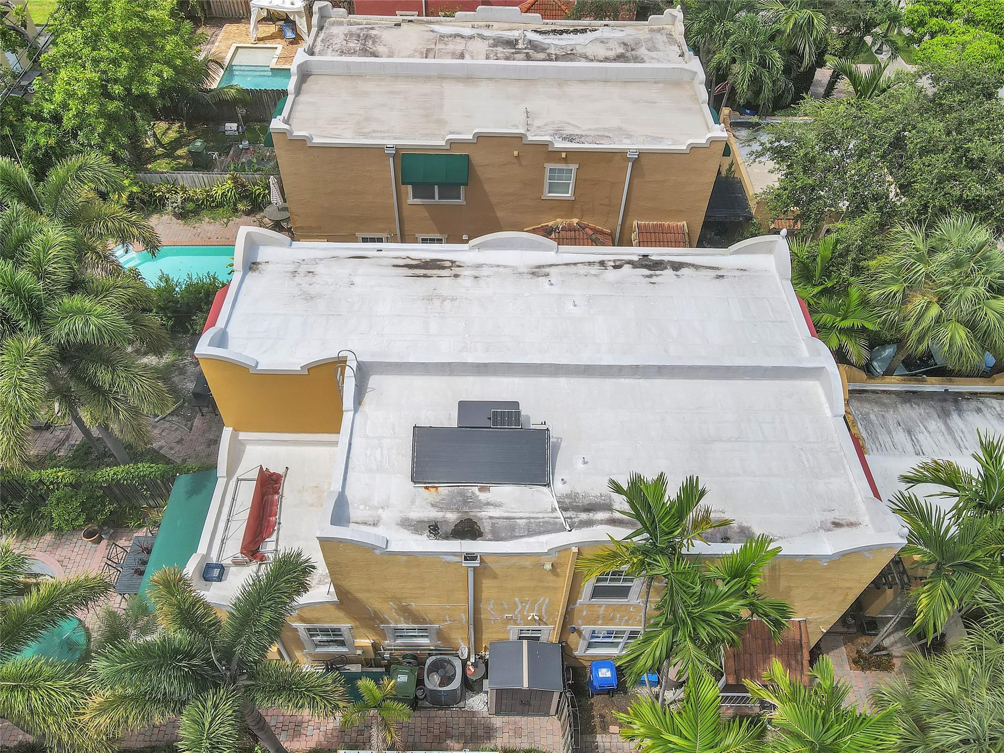Elegant Spanish-style townhome nestled in Old Progresso Village, a trendy hotspot of Ft Lauderdale. Paver driveway leads to a detached garage, complemented by a quaint courtyard. Inside, an open floor plan seamlessly connects the living, dining, family, and kitchen spaces - perfect for modern living. Step out to the back paver patio where a plunge pool and flow-over hot tub invite relaxation. The main level offers a full bath, with 2 beds and 2 baths upstairs. Embrace eco-friendly features: solar water heater, rubber-sealed and insulated roof, rain barrels w/pump, and LED landscape lighting. Impact windows/doors. Security/camera system included. Just moments to Sistrunk Marketplace, FAT Village, The Wharf, Las Olas, Brightline, beaches, lively bars, and eateries!
