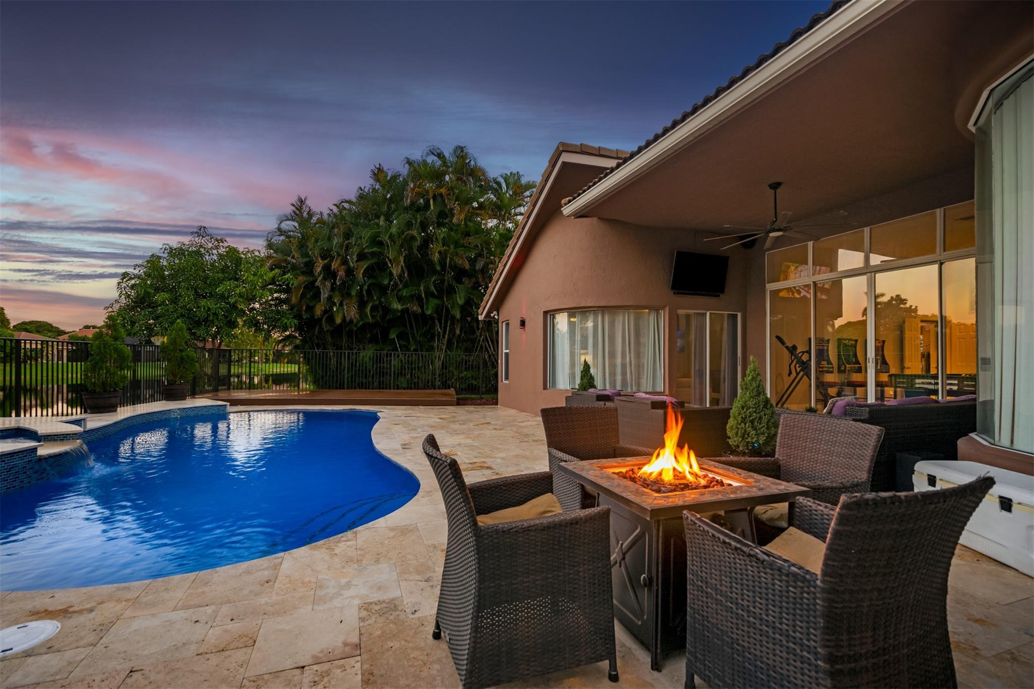 Breathtaking 5-bedroom, 3-bath single-family home located on a cul-de-sac in Brookside Grove. When you arrive at the property, you will notice the paved circular driveway, professional landscape and lighting, stone veneer siding, and a koi pond right by the entrance. This 1-story residence offers a triple split floor plan, formal dining room, living room, spacious family room, and an eating area. There is 24” marble flooring in social areas and laminate flooring in all bedrooms. The kitchen has been updated with s/s appliances, a wine fridge, granite countertops, double oven, and stunning tiled backsplash. In the last year, the proud owner of this home has installed impact doors and windows throughout, as well as a fence and deck.