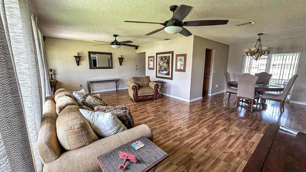 This stunning real estate gem is nestled within the prestigious A-grade school system. Boasting a series of improvements, including full-scale upgrades in the primary bedroom/bathroom and a custom walk-in closet. Modern tech enhances the home with a brand-new phone-controlled sprinkler system and Kwikset SmartCode Keypad Electronic Door Lock & Ring doorbell. Storm-impact windows, sliders (2021), and storm-proof 2 car garage doors ensure security. Set on a 0.23-acre corner lot, it's a canvas for a pool or gardens. Fresh paint revitalizes indoors. Stylish pavers adorn the backyard. Enjoy the outdoors on the screened porch. The house features elegant, low-maintenance flooring sans carpets. This property seamlessly blends upgrades, tech, and space, offering a comfy, stylish living experience.