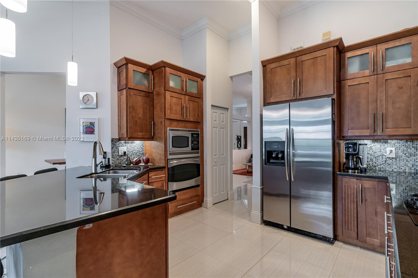 BACK TO THE MARKET WITH A NEW ROOF. Beautiful corner lot one-story home in Weston Hills Country Club Community; 4 bedrooms, 3.5 Bathrooms with a library/office. High ceiling bright house. Kitchen with custom double cabinets, SS appliances, and granite countertop. Huge Master Bedroom. Modern master bath with jacuzzi. All baths are renovated with modern concepts. All the bedrooms and offices with dark wood floors and living areas and baths with Italian porcelain tile. Cousy screed patio with a pool to feel the retread and tranquility in your own paradise. Accordion shutters and impact doors