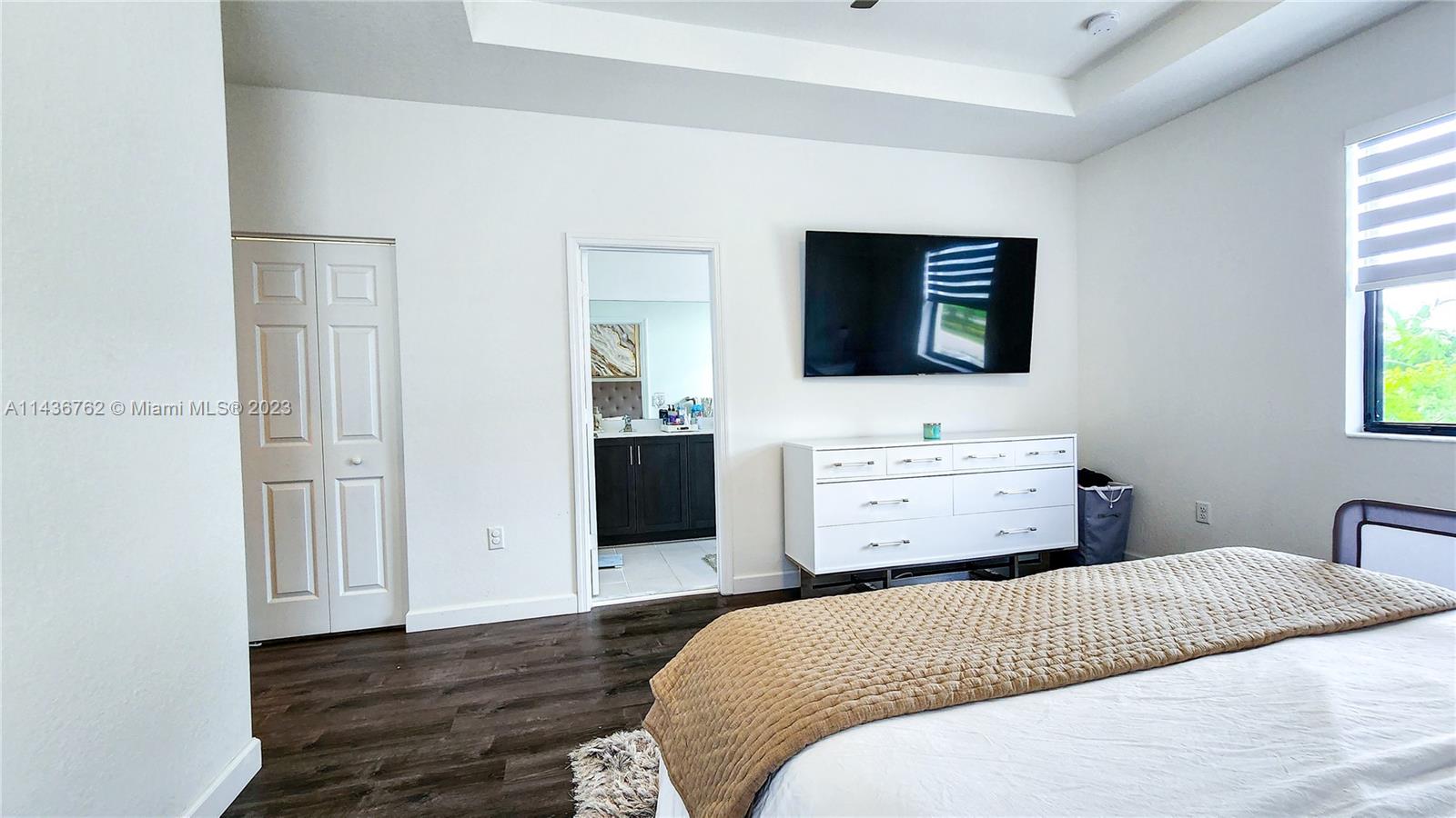 Gorgeous 4 Bdr/2.5 bath home in recently built AQUABELLA gated community. This property has an open layout, stainless steel appliances, fenced and turfed backyard, garage, keyless entry, laundry room with Washer & Dryer upstairs for convenience, and more. No back Neighbors. AQUABELLA is a sought-after private gated community with 2 clubhouses, pools, fitness centers, water park for kids, visitor parking, and easy access to major highways. The property is at the border between Miami-Dade and Broward county making it convenient to reach both.