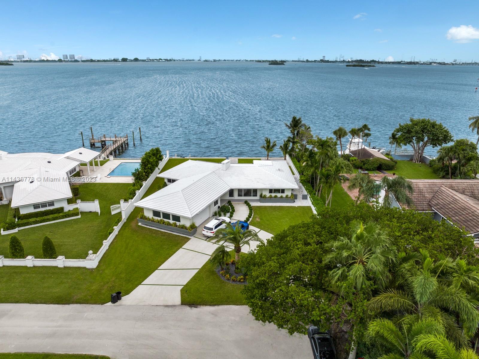 The best and Only and Best Wide Open Bay Property in Miami Shores! Welcome to an exquisite waterfront retreat in the heart of Miami Shores. This 4-bedroom, 3-bath home seamlessly blends modern design with timeless charm. Enjoy open living spaces, a gourmet kitchen, and stunning views. Step into the master suite for waterfront panoramas. With 94 feet of waterfront and 14,000 sq ft of land. This property's prime location along the open bay waterfront makes it a must-have for boat enthusiasts. With easy access to the ocean through Haulover, it offers a unique opportunity at an affordable price compared to similar Miami properties. Wide Open Bay properties are rare, so don't miss your chance. 4th bedroom and 3rd bathrooms are inside the Garage and are used like an office.