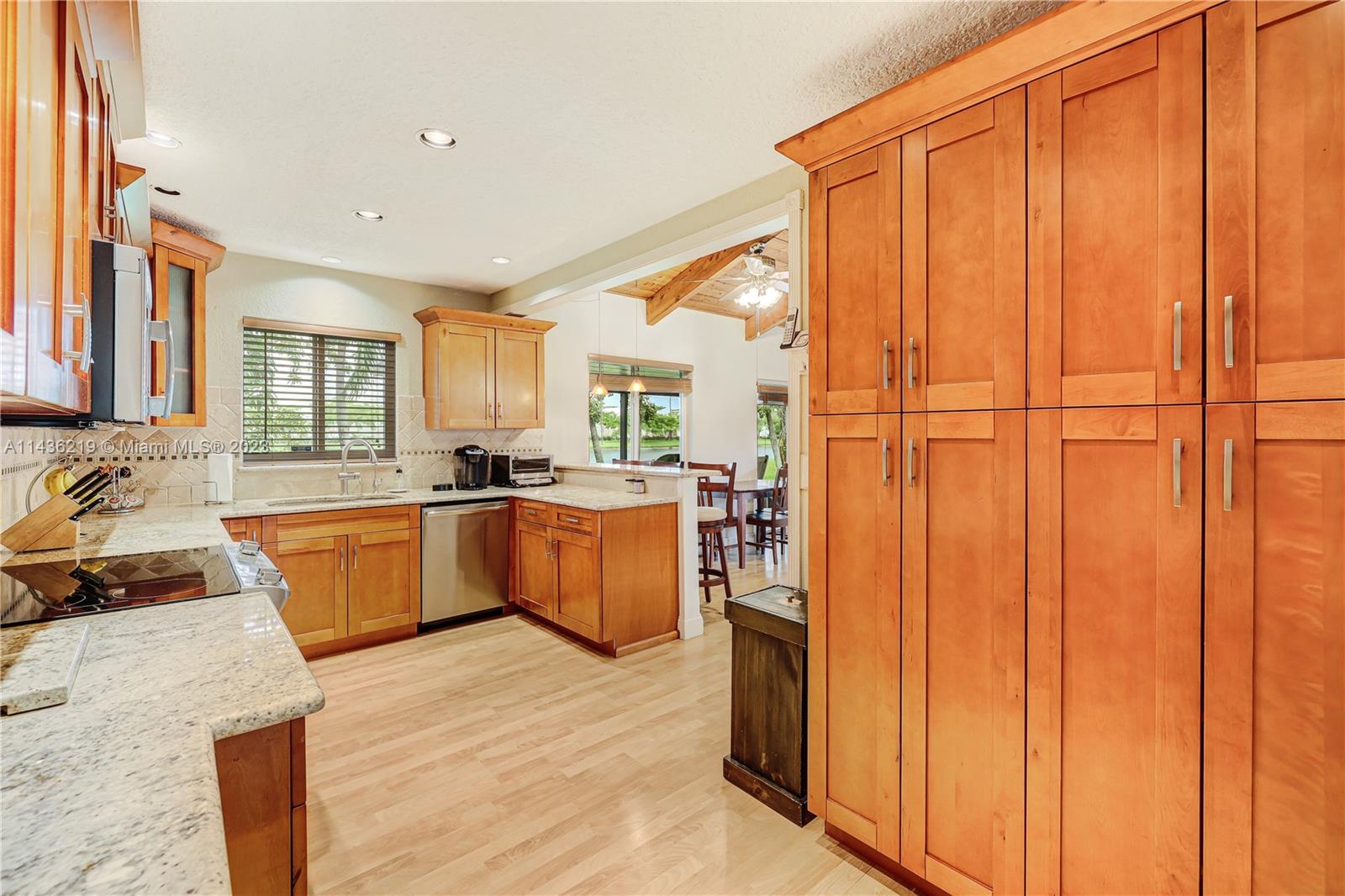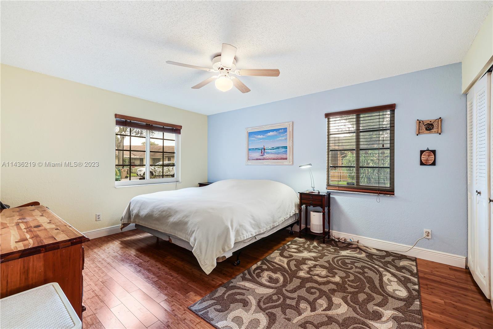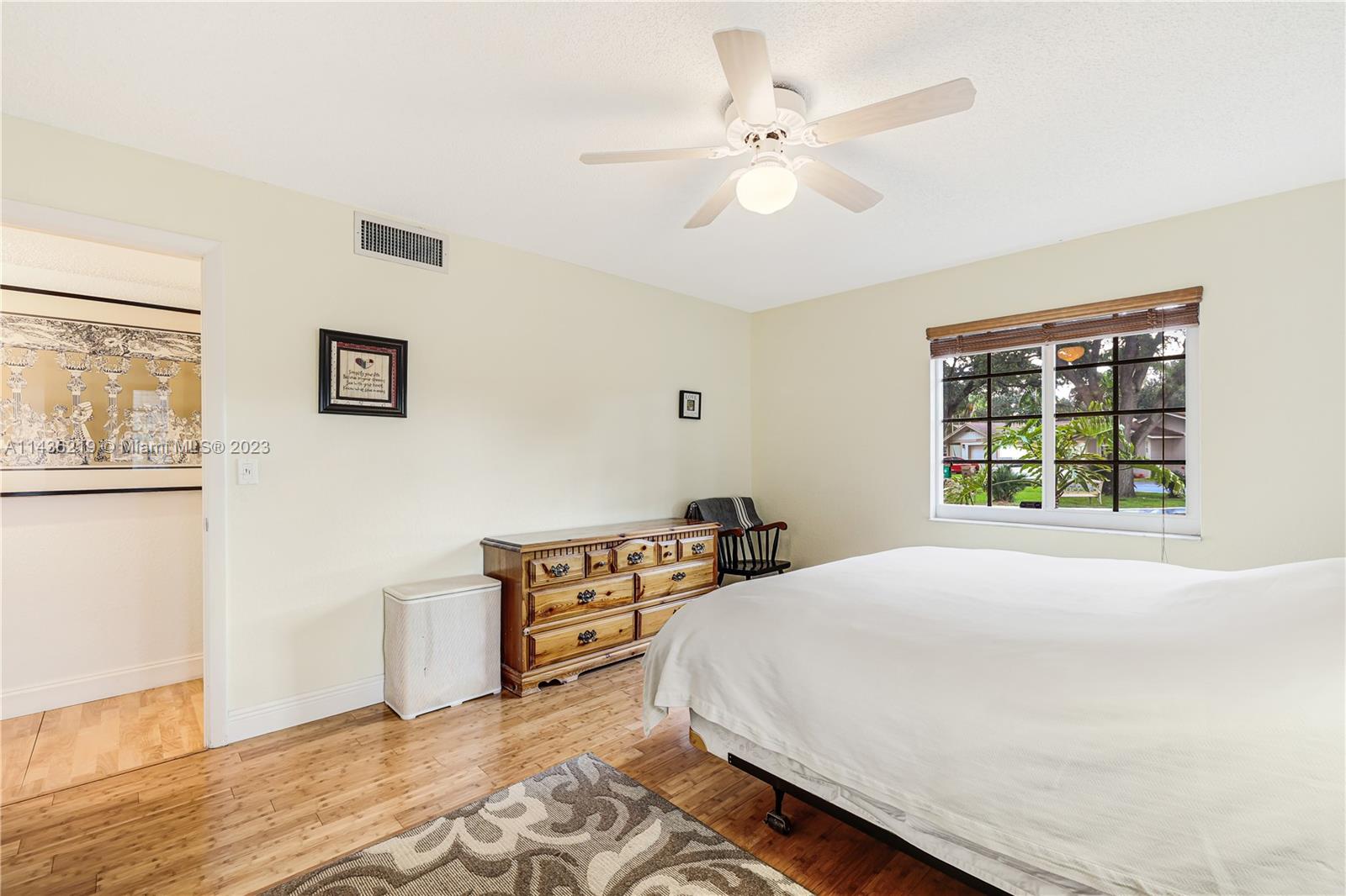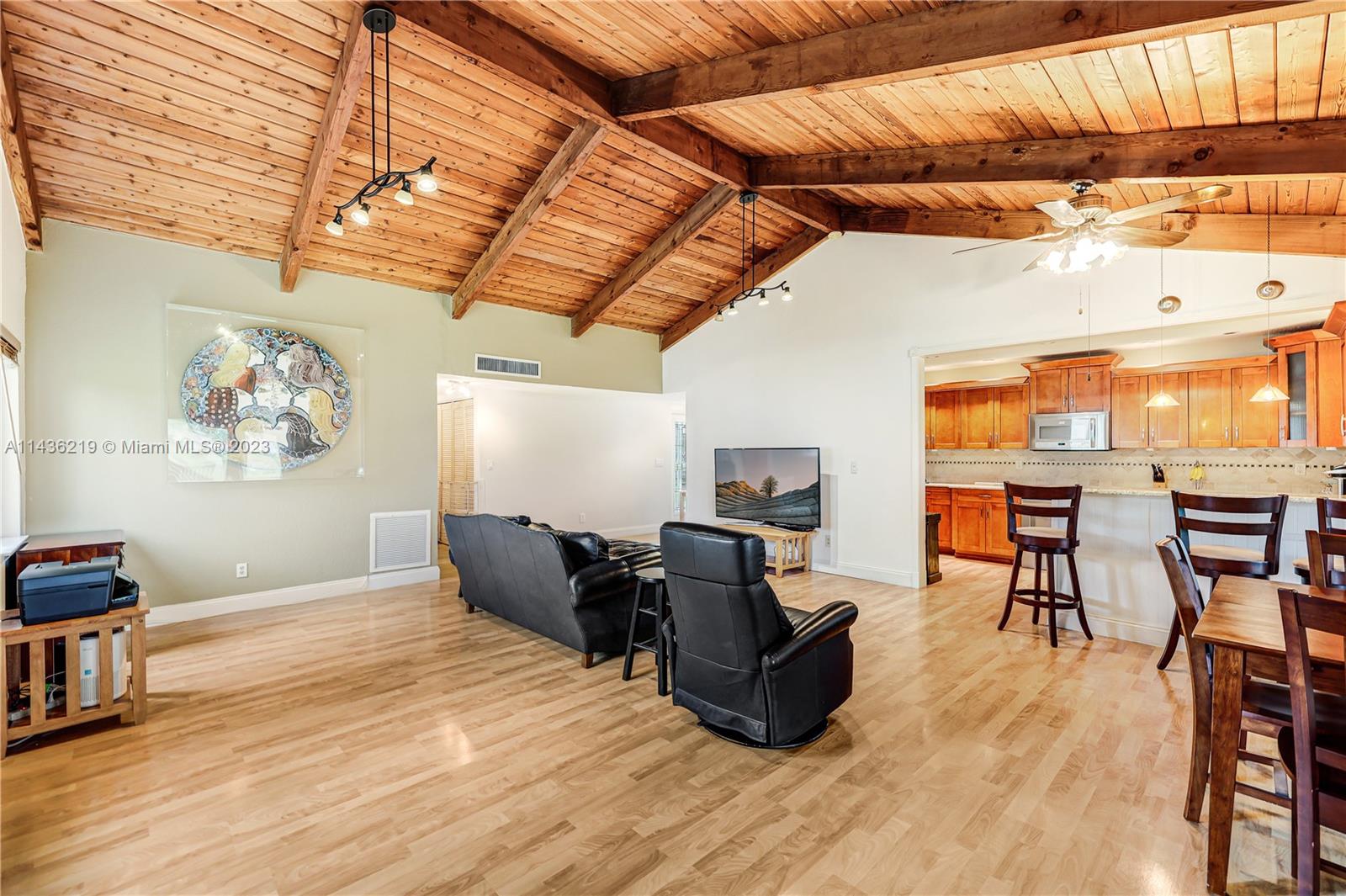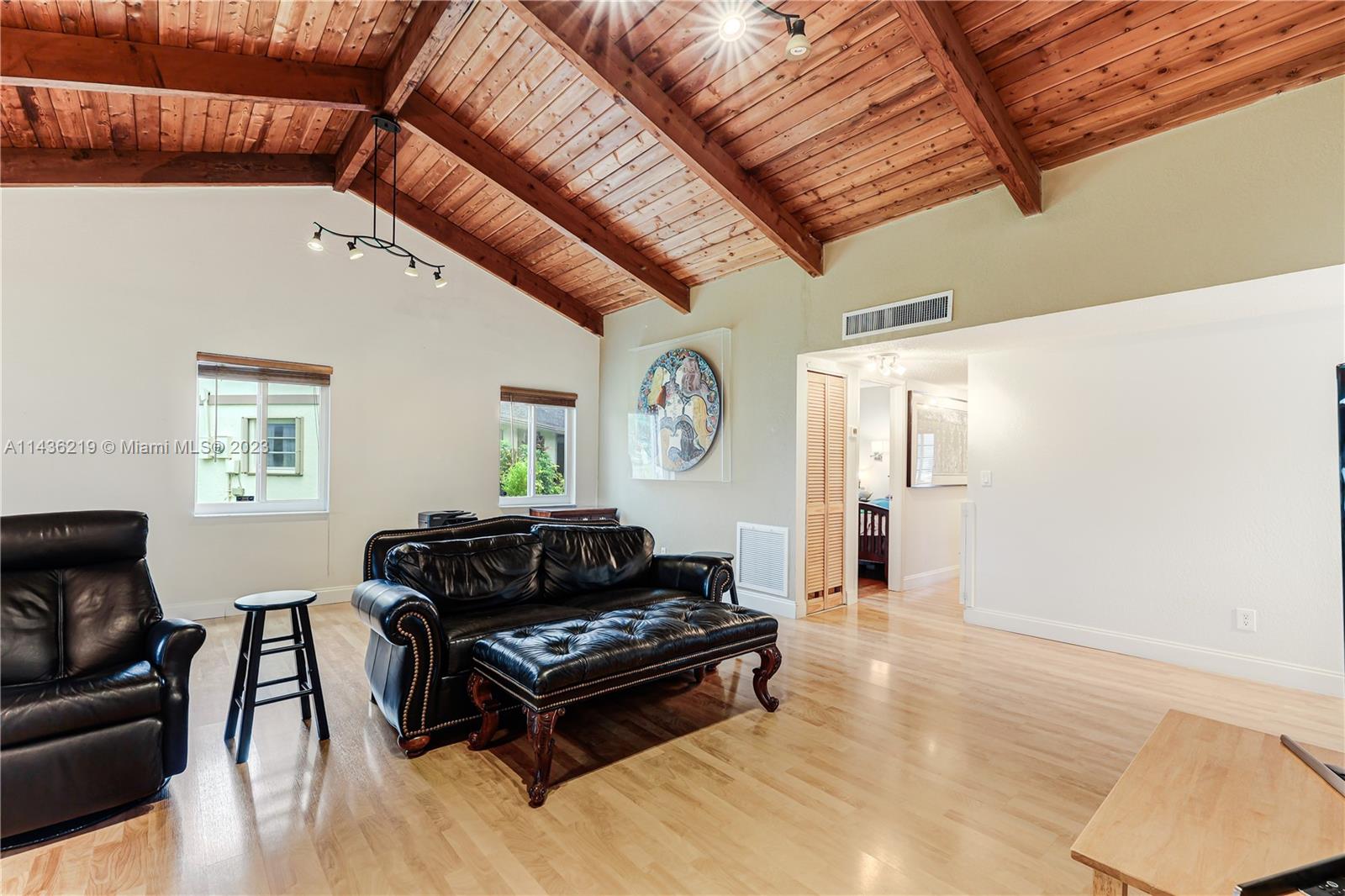 Welcome to your spacious 3/2 home in Davie, near restaurants, shopping & the university complex (Nova University, Broward College, etc.) Social area features beautiful wood vaulted ceilings & wood flooring. Bamboo floor in bedrooms. Kitchen remodeled +/- 10 yrs ago with lots of cabinet space & granite counters. A/C still under warranty (1 more yr). It features blue-tube UV to fight mold & contaminants. Screened patio features a relaxing view of the palm & mango trees & the water beyond. 2 closets in main bedroom, double sized linen closet in hall. All impact windows & doors. Garage has a secure bar for hurricane protection. Association fee covers lawn maintenance, community pool, kids playground, tennis & ½ basketball court. This lot enjoys the most private space away from neighbors.