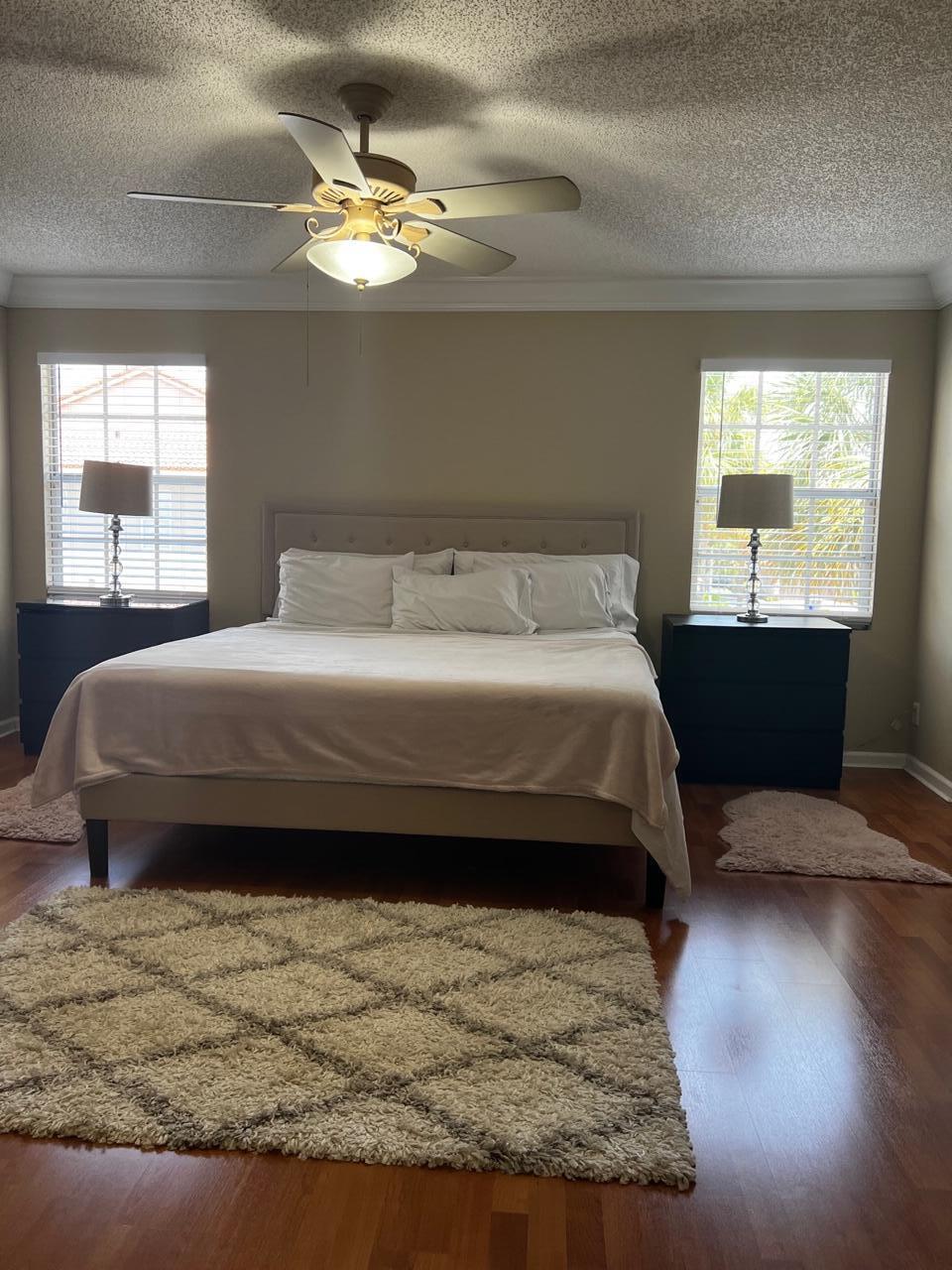 Day light bright corner townhouse with 3 bedrooms, 2-1/2 bathrooms, with a high ceiling living room,2 car garage & covered patio on private lot. kitchen with granite countertops and brand-new stainless fridge. Tile downstairs and wood laminate on stairs and upstairs. Large master bedroom has 2 closets (1 walk-in). Residents have access to the Mission Bay Club with resort style amenities that include luxurious clubhouse, heated saltwater pool, hot tub, sauna, steam room, locker rooms, fitness center, game room, tennis programs, basketball & playground. Close to shopping, restaurants & major highways. A+ Schools.