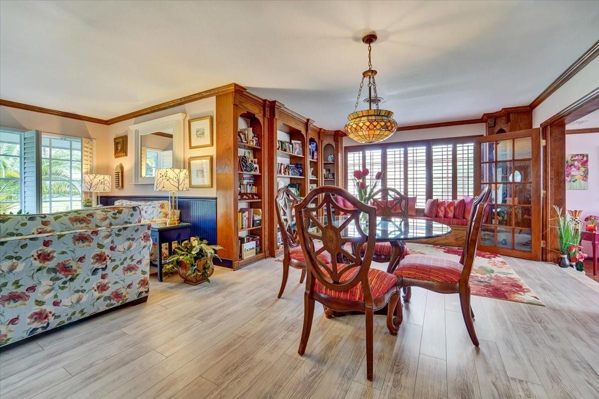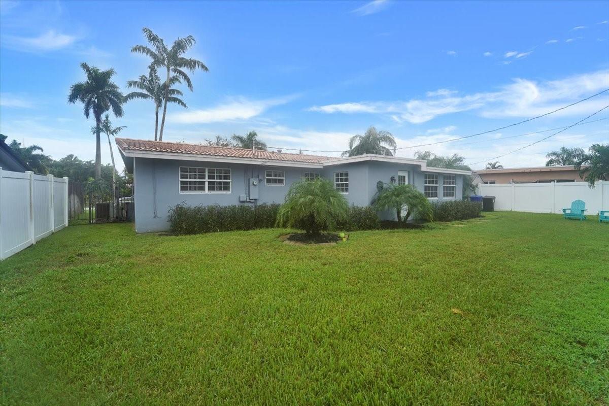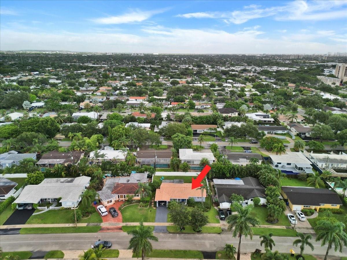 Privacy, style, and location blend seamlessly in this meticulously maintained 2-bedroom 2-bath residence nestled in the outstanding & highly sought-after Imperial Point neighborhood within the heart of Fort Lauderdale. The interior boasts impact windows in front, beautiful wood built-in library, plantation shutters throughout, high tech Vivant alarm system, along with a flexible bonus den suitable for an office, playroom, or additional living area. Featuring updated bathrooms, 2022 flooring, landscaping and newer appliances. Location is perfect for health care workers (around corner from Holy Cross Hospital, Broward Health, clinics, etc). Enjoy the fenced-in-yard in a prime location & just an 8 minute drive (2.5 miles) to the beach, downtown, upscale dining, shopping, schools, and parks.
