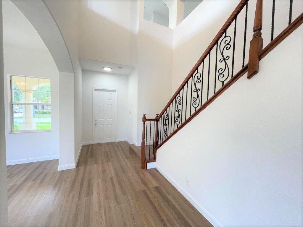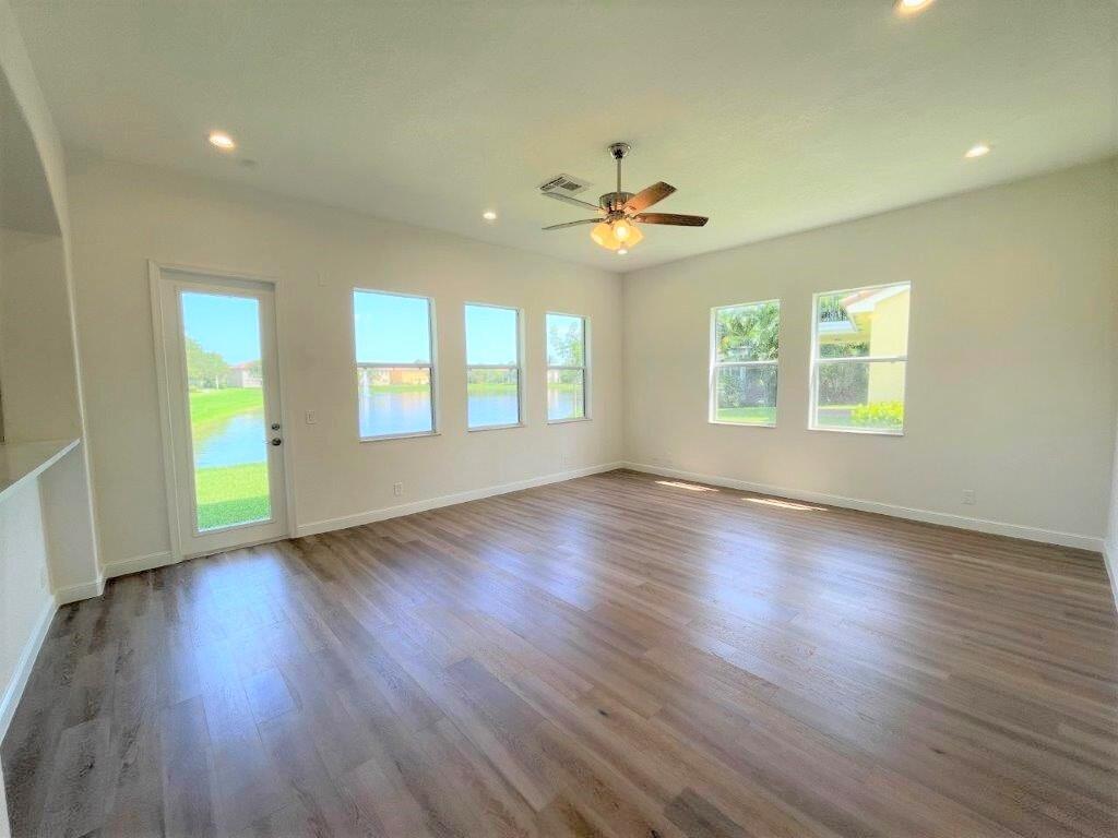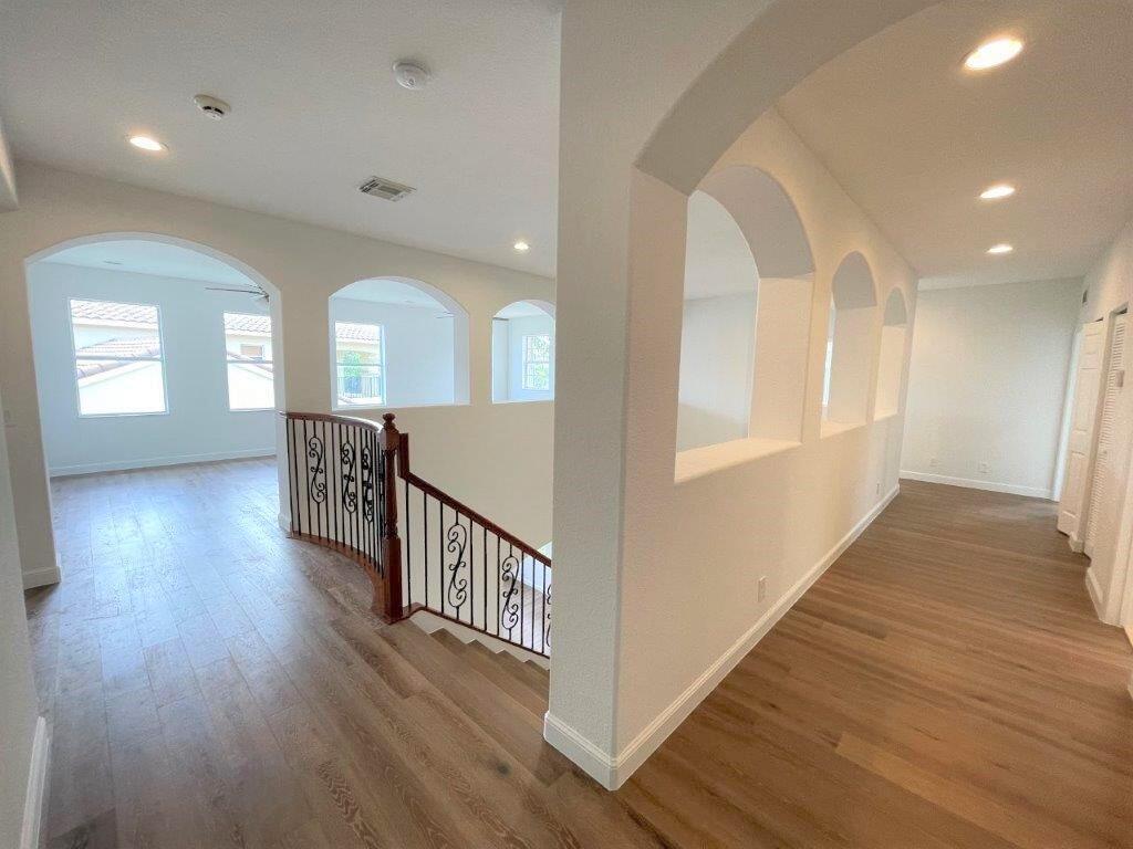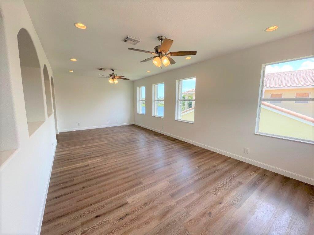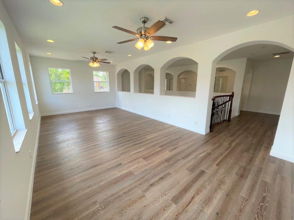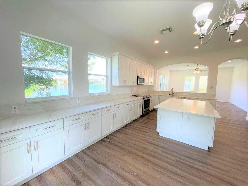 LARGEST MODEL, COMPLETELY RENOVATED. Stunning 5 Bedroom, 4.5 Baths, 3 Car Garage single family home nestled on a corner lot offering serene lake view. Located in the gated community of Terracina, this majestic home features new hardwood floors throughout all living areas, upstairs main bedroom, and great room. New carpet in downstairs ensuite bedroom and all upstairs secondary bedrooms. The kitchen boasts new 42'' white shaker cabinets, gorgeous quartz countertops and SS range, microwave, and dishwasher. New sink, faucet. Center island, and Butler's pantry. New fixtures throughout. All baths have new white shaker cabinetry, quartz countertops, sinks and faucets. The floor plan includes a formal living room, formal dining room and large great room upstairs.