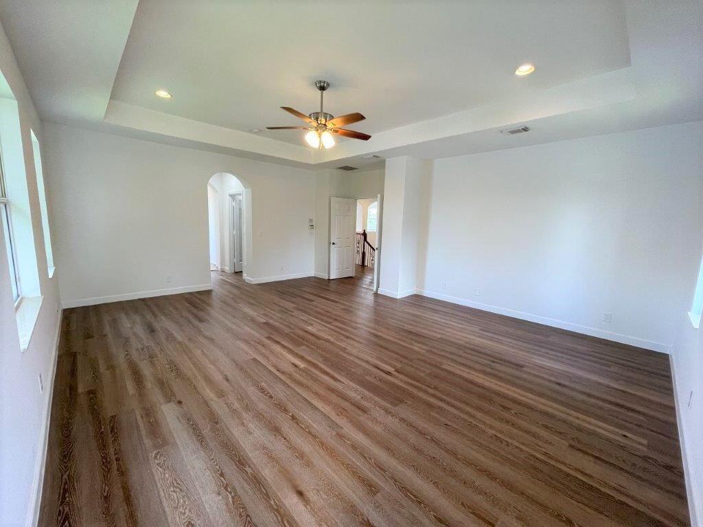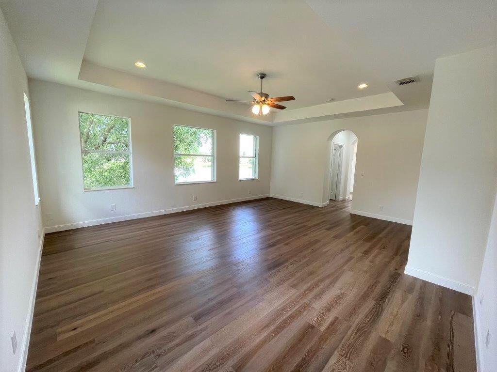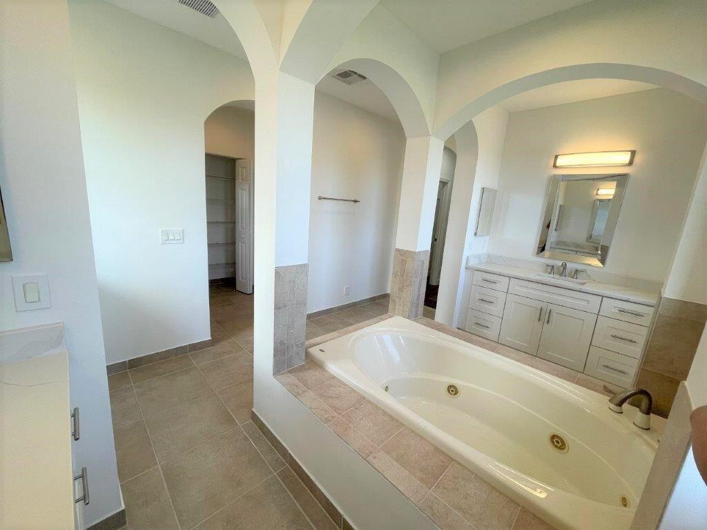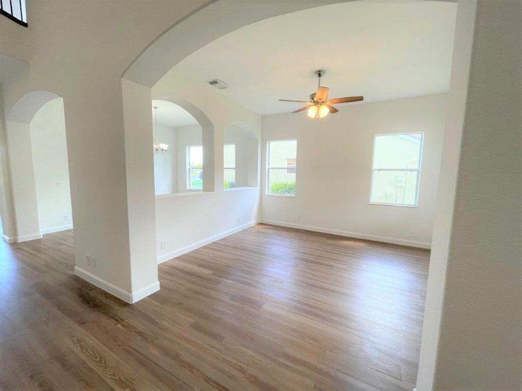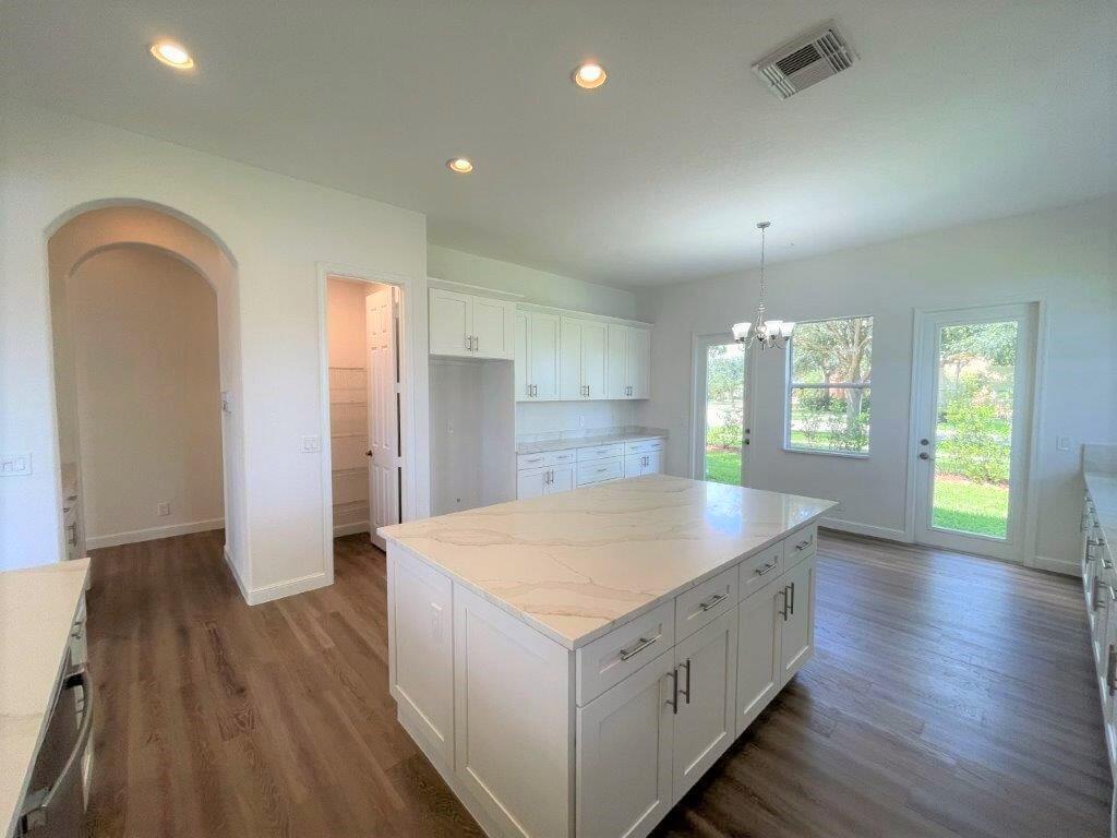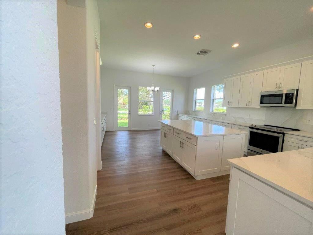 LARGEST MODEL, COMPLETELY RENOVATED. Stunning 5 Bedroom, 4.5 Baths, 3 Car Garage single family home nestled on a corner lot offering serene lake view. Located in the gated community of Terracina, this majestic home features new hardwood floors throughout all living areas, upstairs main bedroom, and great room. New carpet in downstairs ensuite bedroom and all upstairs secondary bedrooms. The kitchen boasts new 42'' white shaker cabinets, gorgeous quartz countertops and SS range, microwave, and dishwasher. New sink, faucet. Center island, and Butler's pantry. New fixtures throughout. All baths have new white shaker cabinetry, quartz countertops, sinks and faucets. The floor plan includes a formal living room, formal dining room and large great room upstairs.