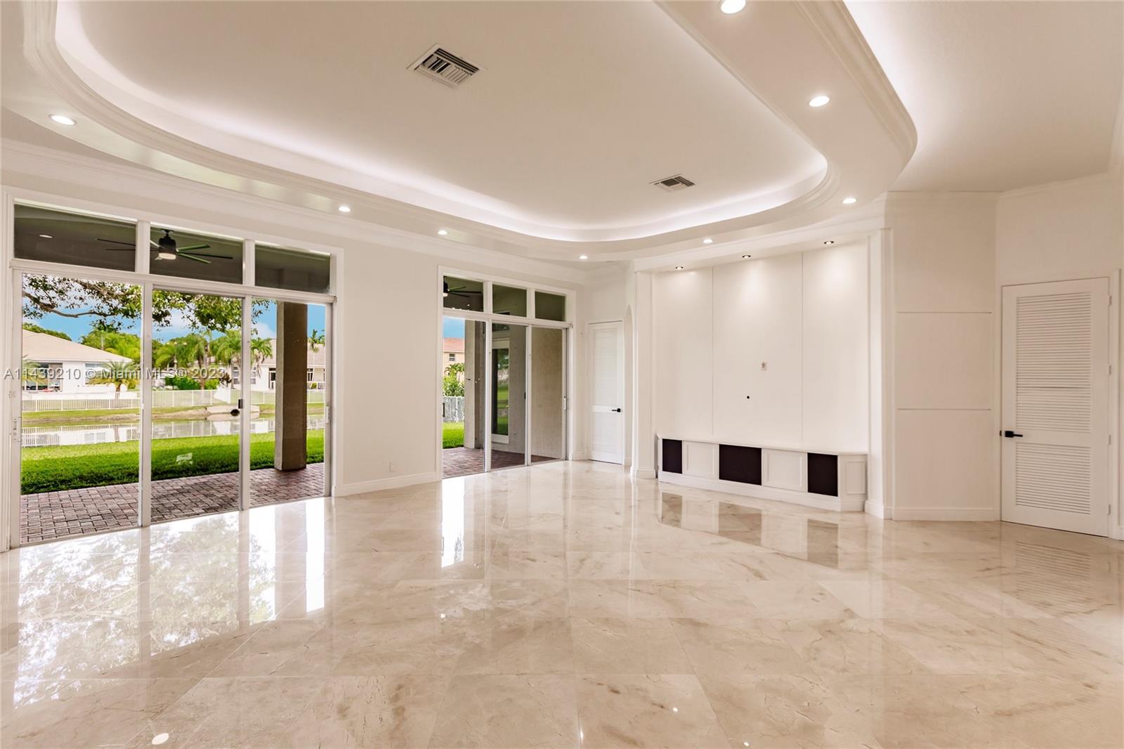 Gorgeous waterfront home on half acre lot on a picturesque Cul de sac street in gated community of Hibbs Grove. Stunning home is a true 5 bedroom plus office & 3.5 bath with a triple split floor plan. Hundreds of thousands in custom upgrades. Gourmet chef's kitchen with new luxury high-end built-in appliances, custom drop ceilings with led lighting, modern switches and outlets, custom built out cabinetry in every room, master with electric blinds, beautifully polished crema marfil marble floors, freshly painted head to toe inside & out. Additional New items include commercial water heater, two 4-ton ac units, sprinkler motor and timer, and garage motor. Pavers recently cleaned and sealed. Garage partially built into home theatre. Build your dream pool. HOA covers lawn, Front Gate & Alarm.