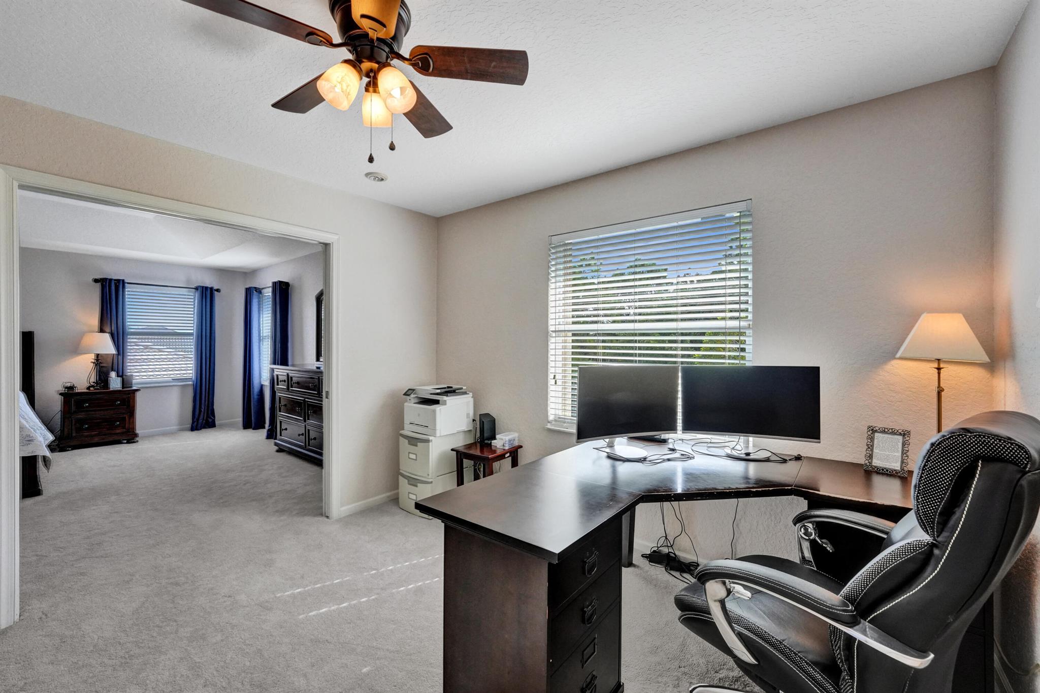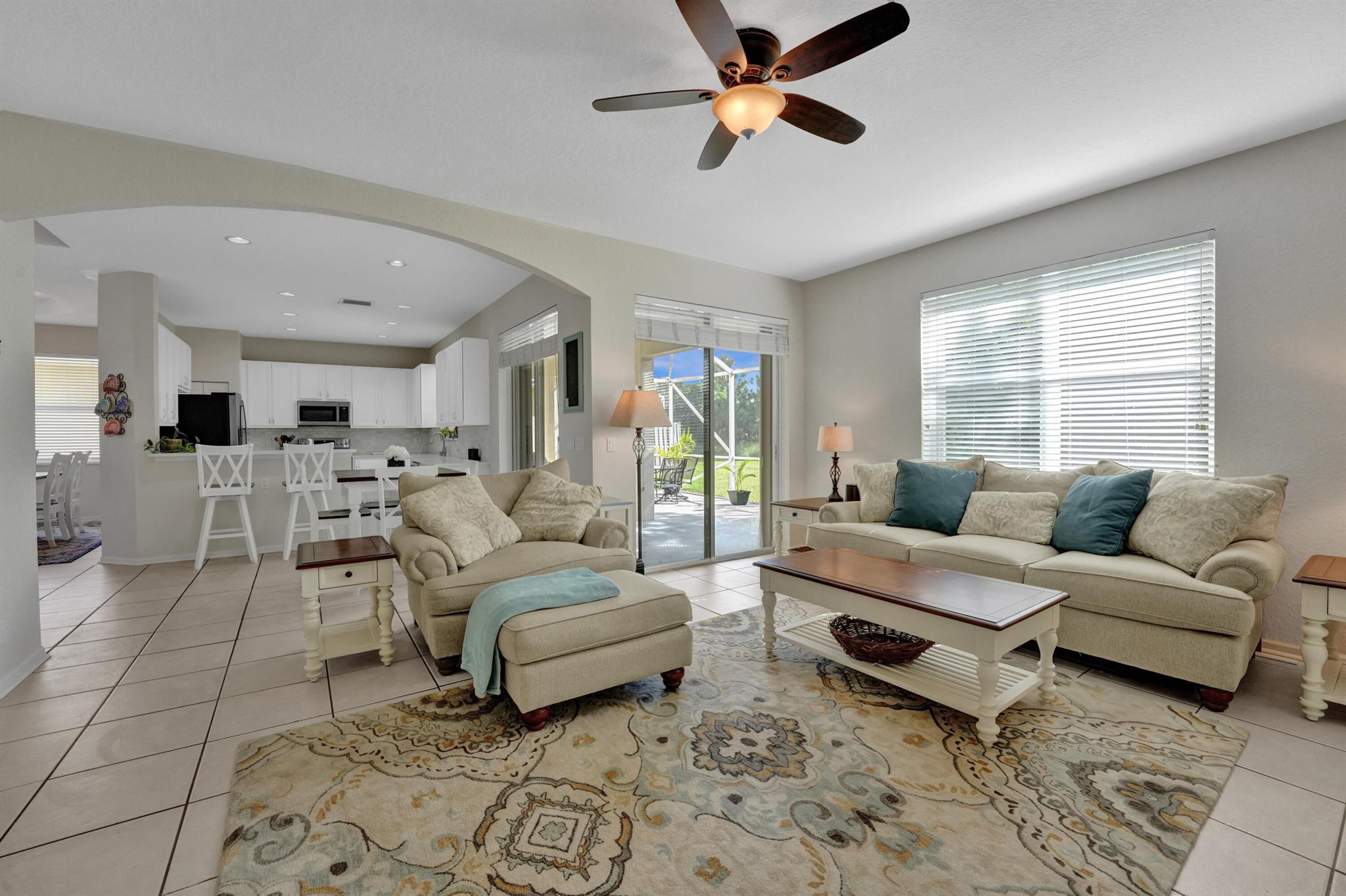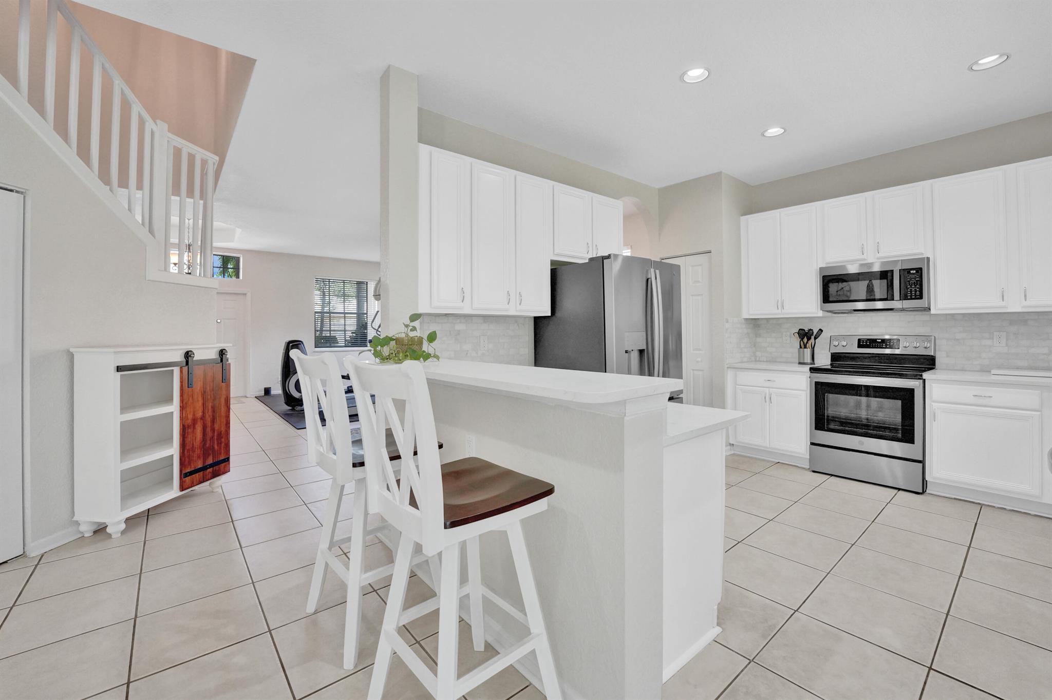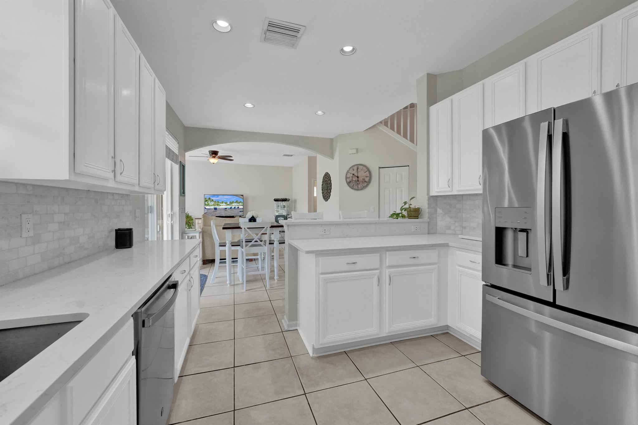 Spacious 4 bedroom (plus office/den), 3.5 bathroom home with an expansive backyard view. Enjoy the upgraded & upscale eat-in kitchen featuring newer stainless-steel appliances, striking white cabinets & quartz countertops. Great floor plan that easily flows from room to room for entertaining and easy living. Large undercover & screened-in patio overlooks an expansive & private backyard. Upstairs, you'll find a split bedroom floor plan with an amazing master bedroom suite that features a comfortable en-suite bathroom as well as an adjacent den/office/nursery room that could be used as a 5th bedroom. Other features include an ensuite guest bedroom, paver driveway, room for a pool & accordion shutters. At price, this move-in-ready home comes with a 1-year American Home Shield home warranty..