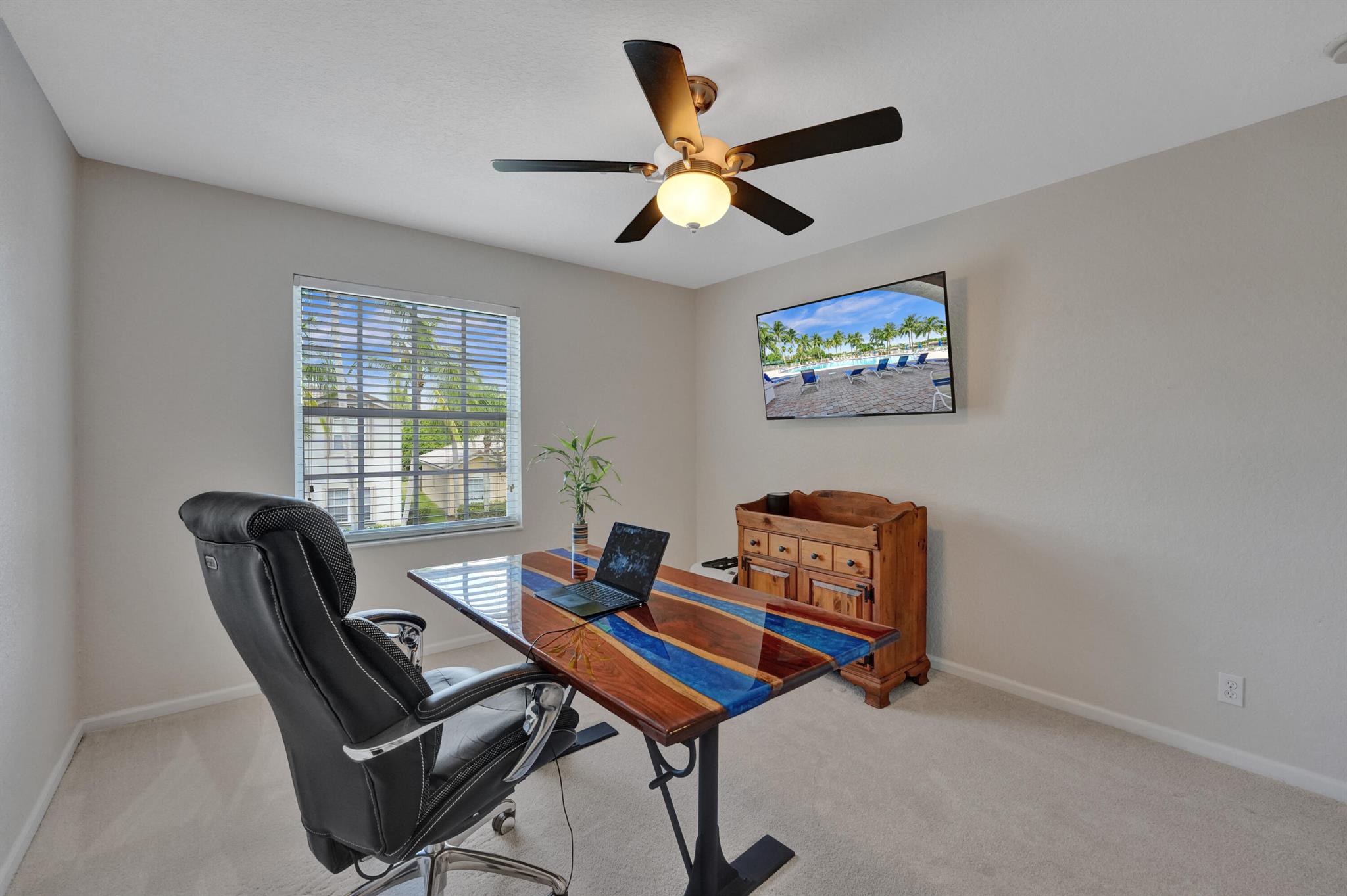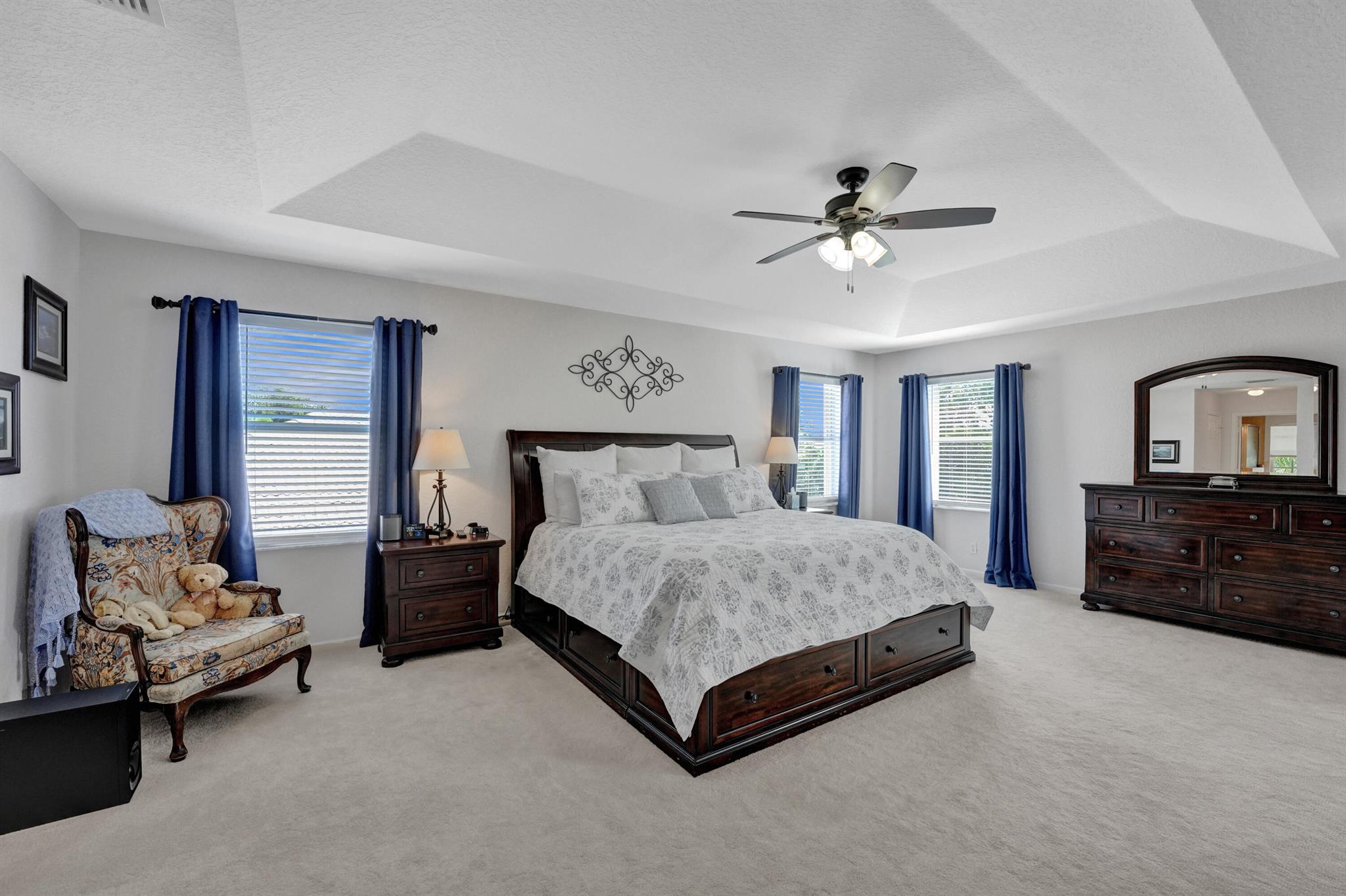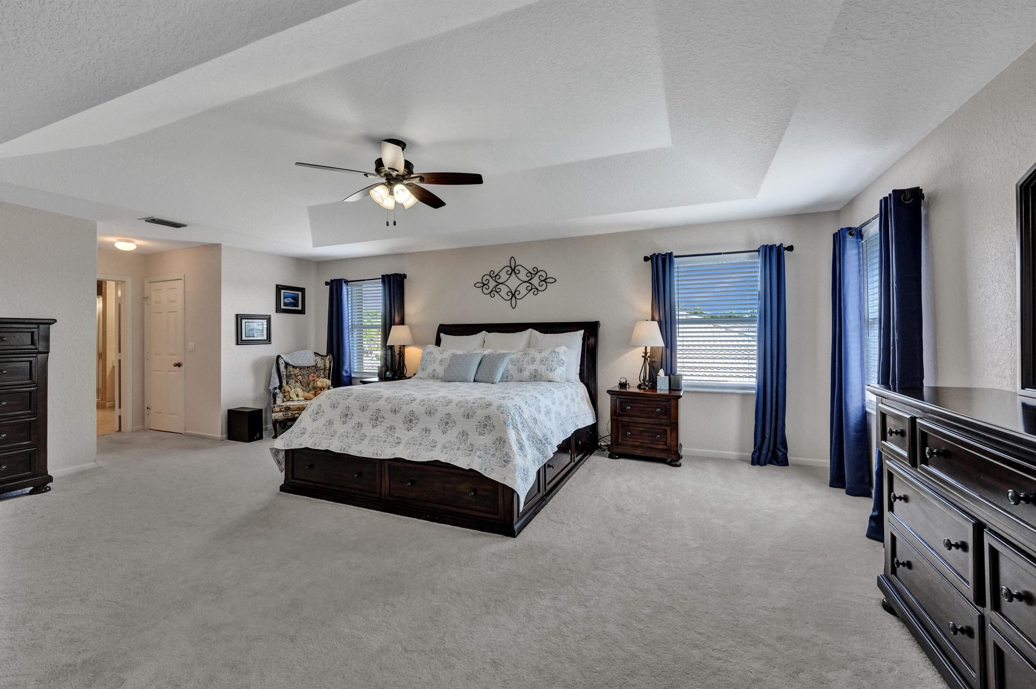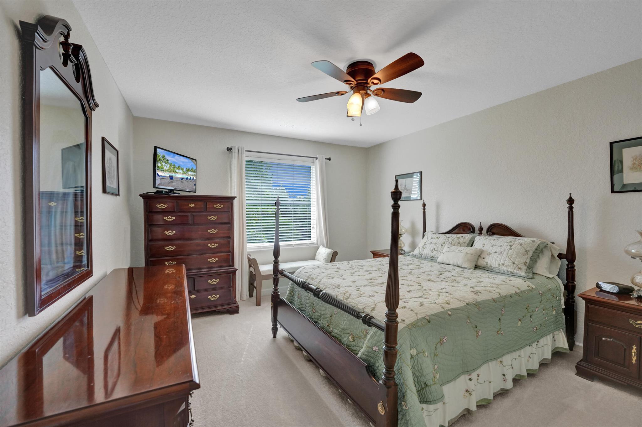 Spacious 4 bedroom (plus office/den), 3.5 bathroom home with an expansive backyard view. Enjoy the upgraded & upscale eat-in kitchen featuring newer stainless-steel appliances, striking white cabinets & quartz countertops. Great floor plan that easily flows from room to room for entertaining and easy living. Large undercover & screened-in patio overlooks an expansive & private backyard. Upstairs, you'll find a split bedroom floor plan with an amazing master bedroom suite that features a comfortable en-suite bathroom as well as an adjacent den/office/nursery room that could be used as a 5th bedroom. Other features include an ensuite guest bedroom, paver driveway, room for a pool & accordion shutters. At price, this move-in-ready home comes with a 1-year American Home Shield home warranty..