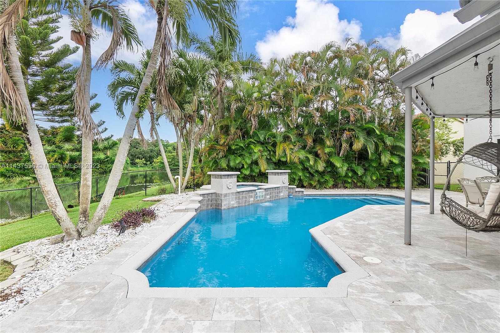 A One Of A Kind 4 Bed/3 Bath W/3 Car Garage. This Home Backs Up To A Natural Preserve And Expansive Views Of Fully Stocked Lake. No Backyard Neighbor Ever! Large Family & Living Room W/ High Vaulted Ceilings & Impact French Doors Leading To Updated Tumbled Marble Pool Area With Lake Views. Remodeled Kitchen W/ SS Appliances, Double Oven, Farmhouse Sink, Beveled Edge Granite Countertops W/ Under Cabinet Lighting. Double Frosted Glass Pantry. Oversized Primary Suite W/ 14 Ft High Tray Ceiling And Totally New Remodeled En-Suite Bath W/ Quartz Countertops, Dual Vanities, Double Frameless Glass Shower & Double Deep Step In Tub. It Also Has A Room W/ Remodeled Full Cabana Bath. Roof 2020. AC 2016, Irrigation 2022, Pool Resurfaced & Pump 2021. Samsung W/D 2021. Pavers Driveway. A-Rated Schools!