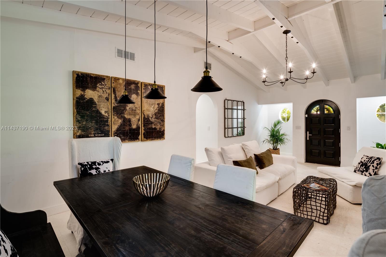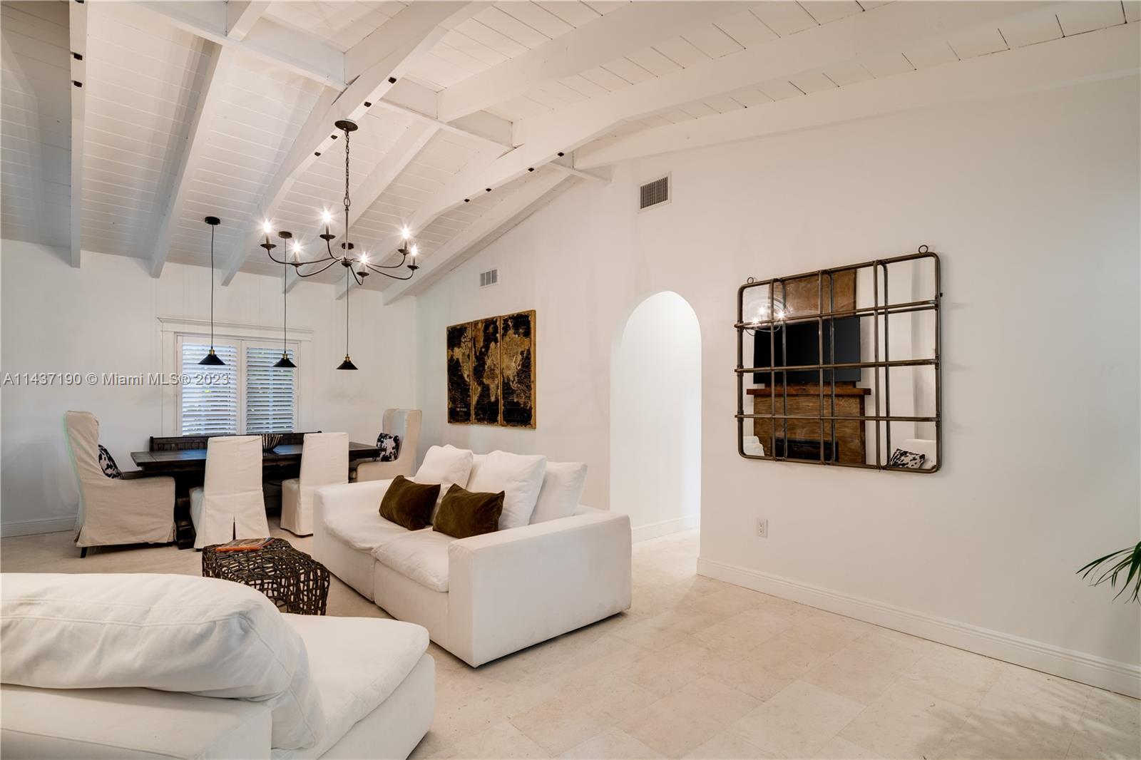 An enchanting fairytale home awaits its new chapter with a new homeowner. The allure of the corner courtyard entrance, moves you to peek inside & enjoy all the charm. From the limestone floors below, to the eye-catching exposed wood ceiling above, to the arched details, you are captivated. Fully remodeled, with PVC plumbing, impact doors & windows, updated electrical, beautiful kitchen, and spa-like bathrooms—all waiting for you to move right in! There are 2 spacious bedrooms plus a home office, and a garage. Built in BBQ area in patio for gatherings. There is even room for a small pool in the private yard! Blocks from the Granada Golf course. Sq footage larger than tax roll per seller. A true, Very Special Home.