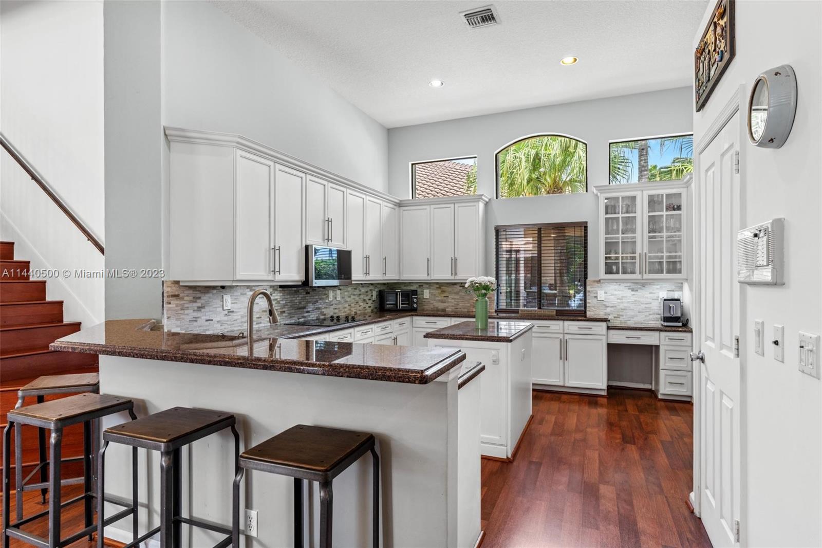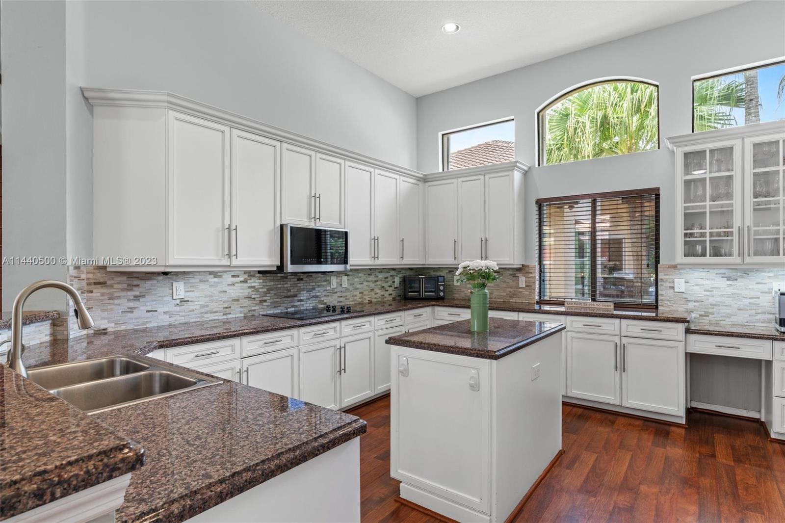 Welcome to a truly MAGNIFICENT courtyard estate in the highly desired Sunset Lakes! The most sought-after model in the subdivision for its unique design! As you walk through the main doors you are greeted by an open courtyard, which features a newly resurfaced pool & covered patio! An ideal + impressive setting for outdoor entertaining & S Fl living! Fantastic floor plan w 6 BR/4 BA including a separate guest quarters! BRAND NEW ROOF + PARTIAL IMPACT WINDOWS being installed! 2 NEW A/C units! Triple split floor plan where every room organically flows into the other. Gourmet kitchen w white wood cabinets, beautiful tile backsplash, stainless steel appliances & granite countertop. Accordion shutters throughout the house. Resort style community w/ many amenities and amazing fitness center!