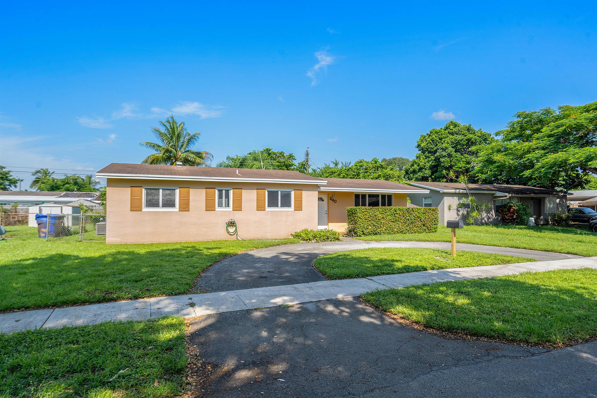 Embrace South Florida's sunshine lifestyle with this 3-bed, 1.5 bath single family home in Hollywood. Enter into a light and airy living space conveniently connected to a sunroom, spacious family kitchen with gas range and separate laundry room. Kitchen is adorned with custom cabinets providing more than ample storage.Property has a circular driveway and is surrounded by an abundance of lawn space and a large back yard with plenty of room for a swimming pool. Garden shed also included for additional exterior storage. Hurricane impact windows installed throughout ensuring you're always prepared for the unexpected. Great location, less than 9 miles from Hollywood's beautiful sandy beaches, famous 2.2 mile Boardwalk, recently named one of America's Best Beach Boardwalks.