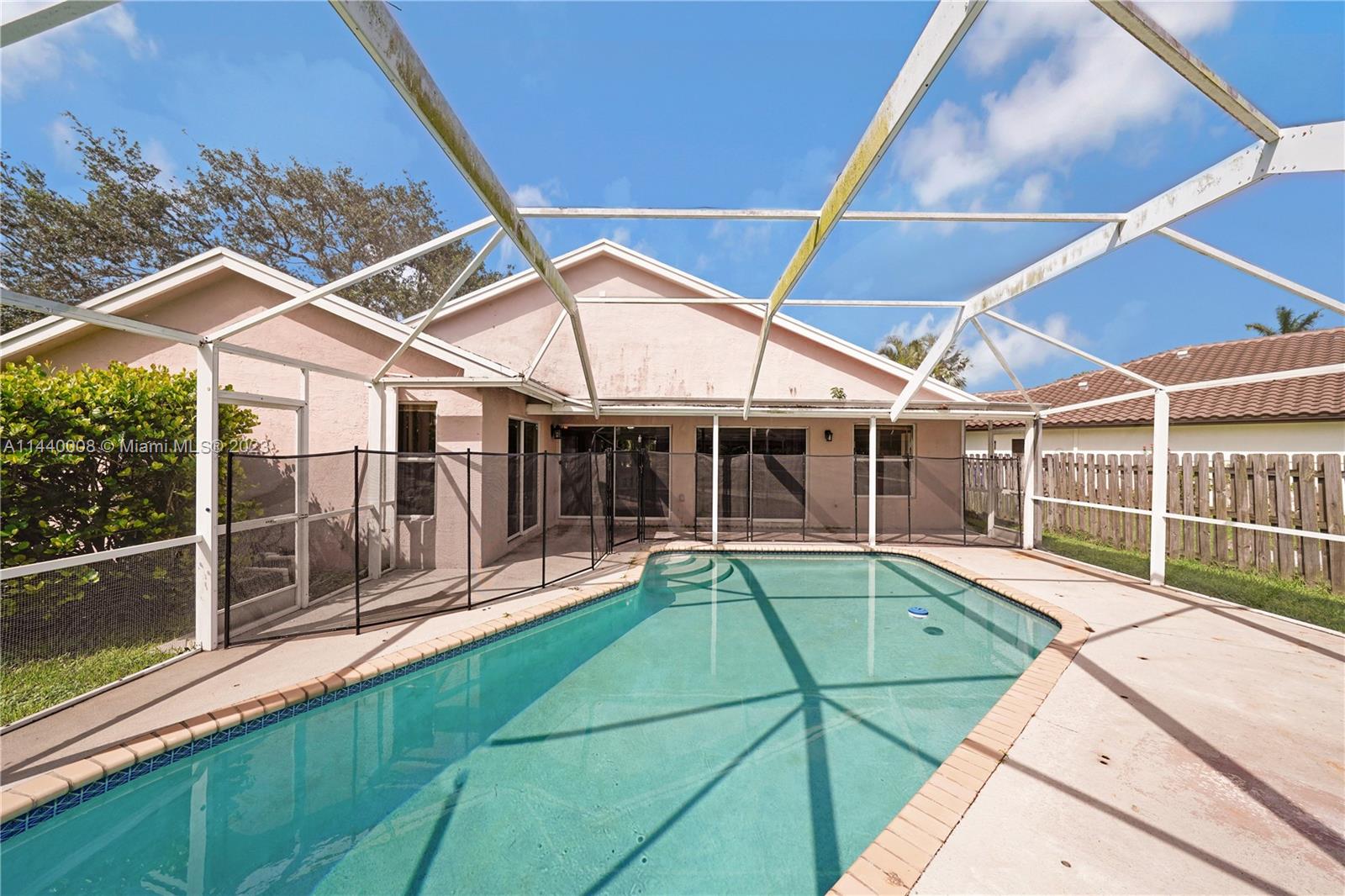 3 bedroom, 2 bath 2 single family home in Coral Springs. Home has a lovely pool and rear covered patio. Driveway can hold up to 4 vehicles and also 2 car garage. This home has a laundry room, and much more! Come and see for yourself! WILL NOT LAST!