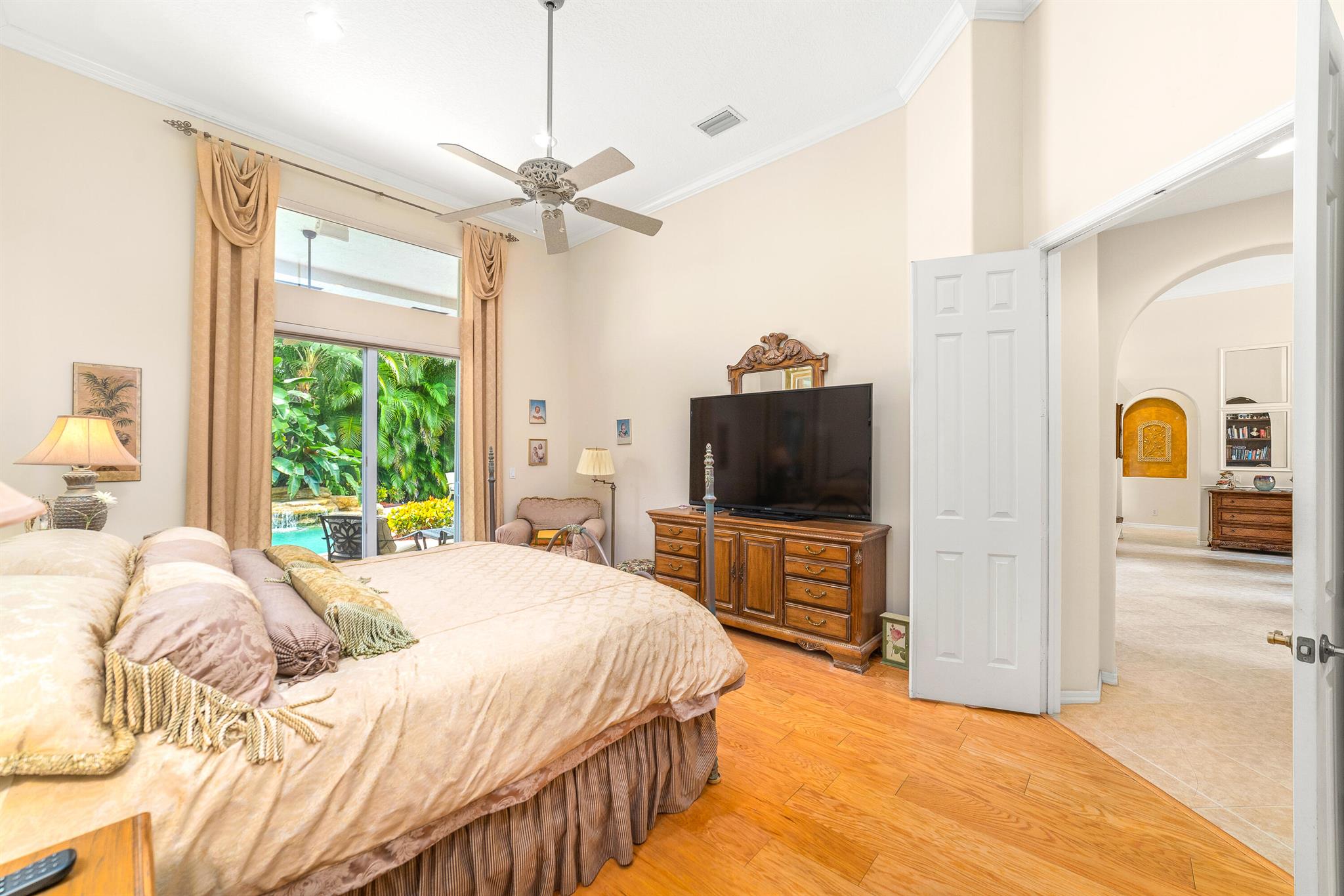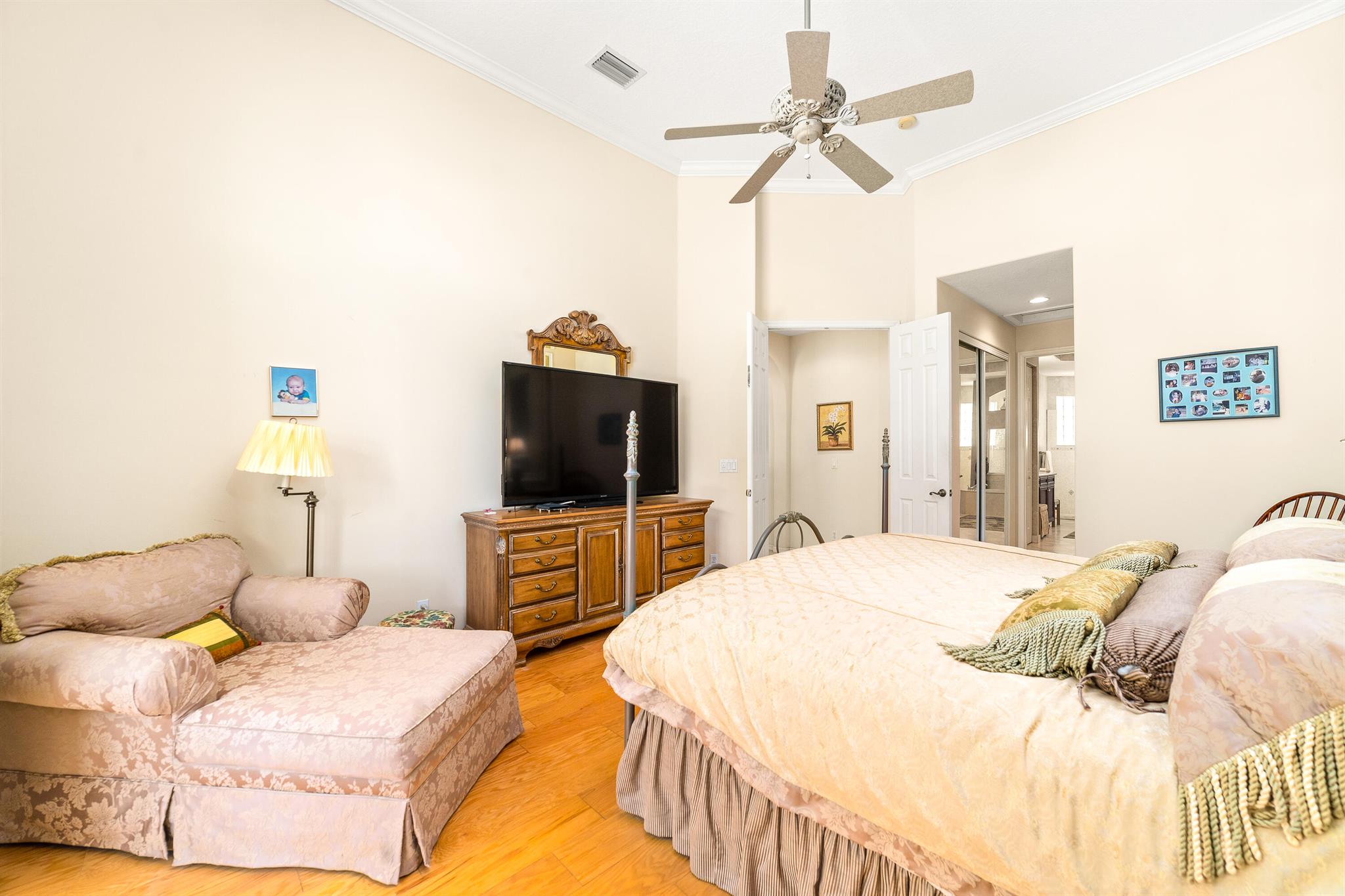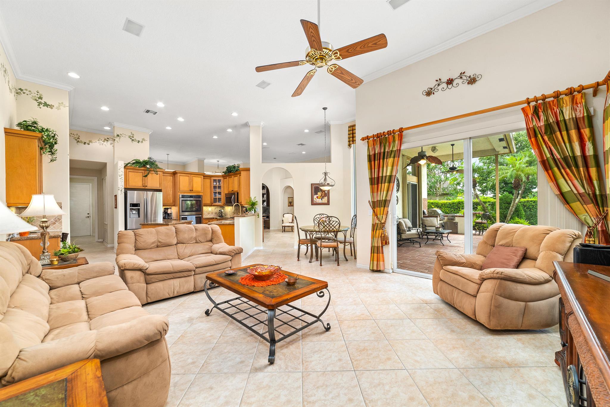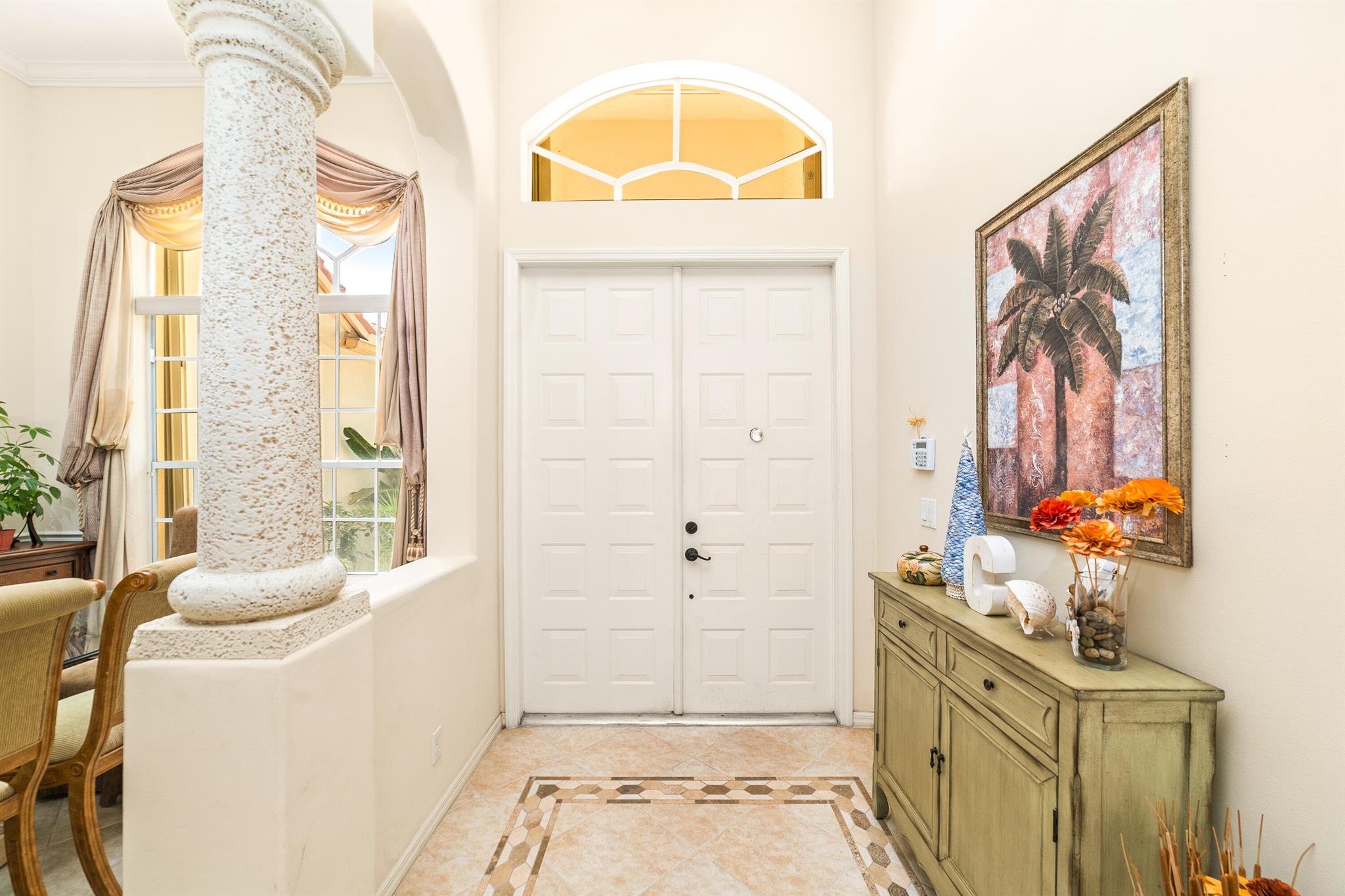 Welcome to this gorgeous 4-bedroom, 3 bathroom former Model Home located in the highly sought after Grand Reserve community of Coral Springs. As soon as you enter, you immediately notice the soaring high ceilings, custom crown molding and abundant natural light. All windows have accordion shutters, impact garage doors, full impact sliding doors and just recently installed ten impact windows. The home features a convenient triple split bedroom floor plan providing terrific privacy to both primary owner and guests. The property has tile-flooring throughout the living areas with engineered wooden flooring in the bedrooms. The Primary suite is enormous with a sizeable walk-in closet, offering custom built shelving and a beautiful view of the pool. The primary bathroom