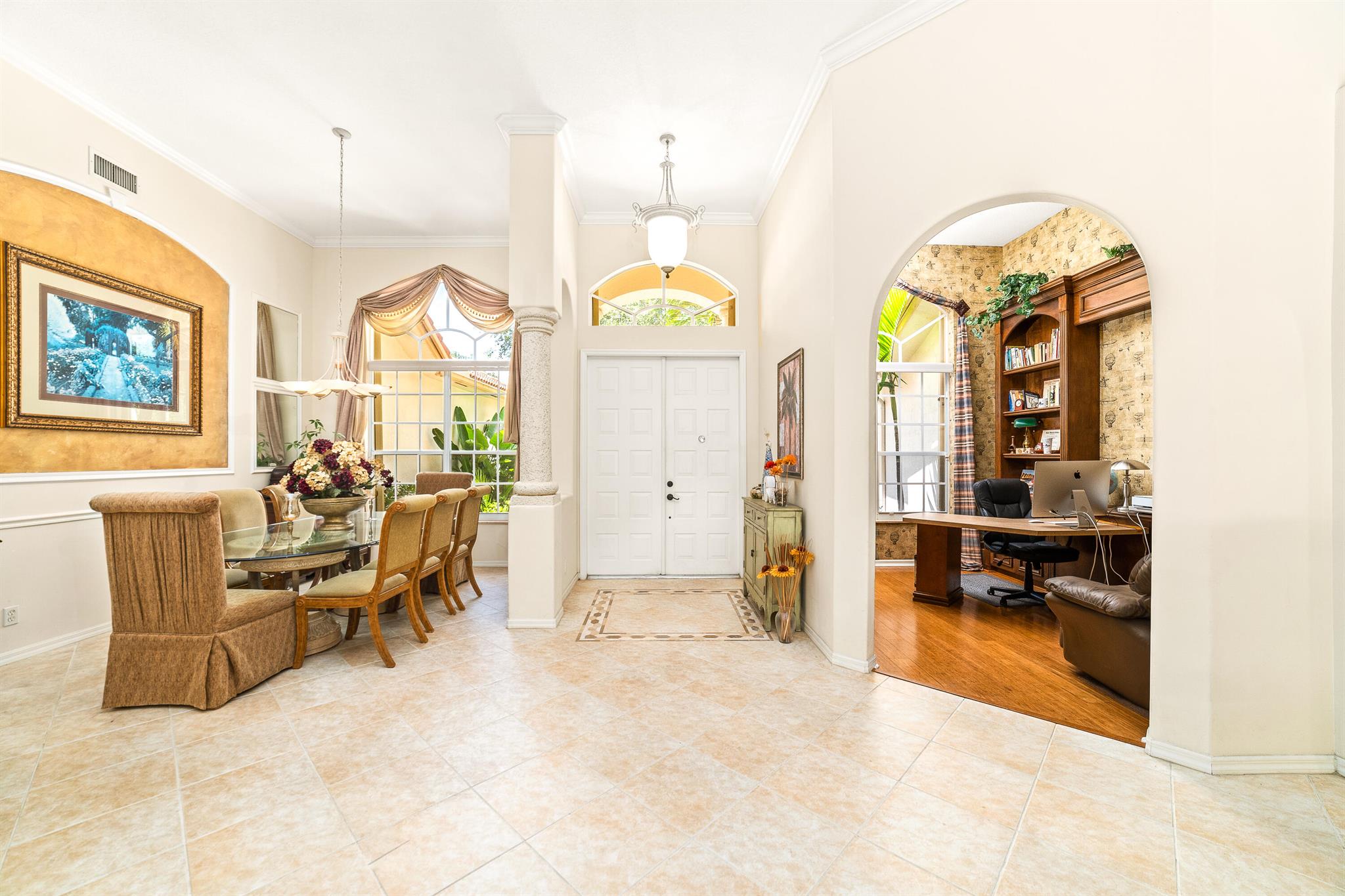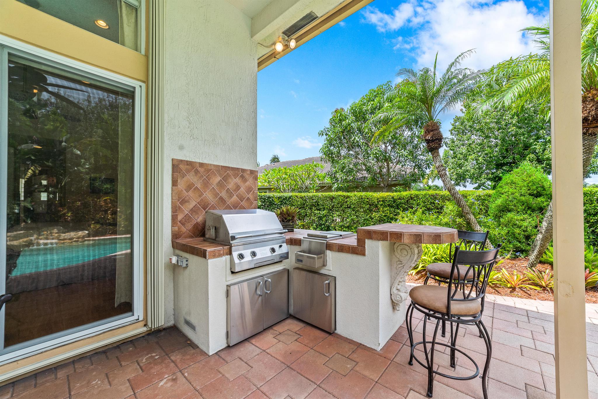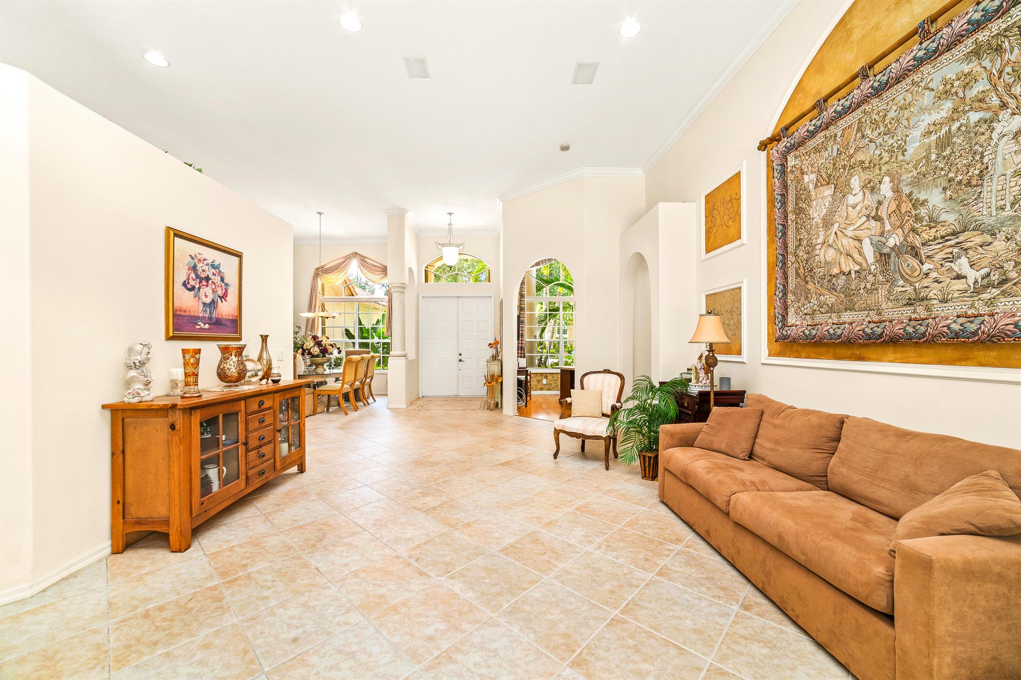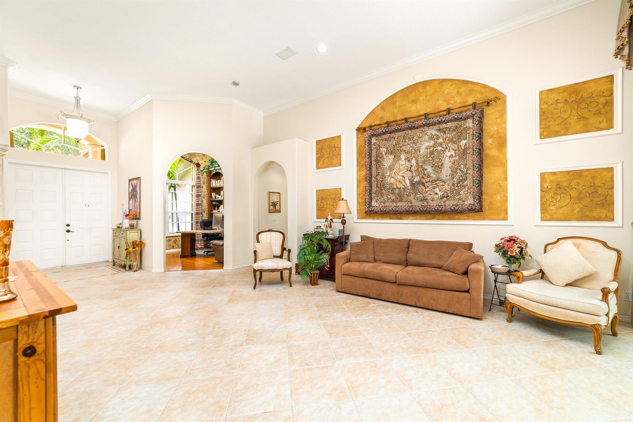 Welcome to this gorgeous 4-bedroom, 3 bathroom former Model Home located in the highly sought after Grand Reserve community of Coral Springs. As soon as you enter, you immediately notice the soaring high ceilings, custom crown molding and abundant natural light. All windows have accordion shutters, impact garage doors, full impact sliding doors and just recently installed ten impact windows. The home features a convenient triple split bedroom floor plan providing terrific privacy to both primary owner and guests. The property has tile-flooring throughout the living areas with engineered wooden flooring in the bedrooms. The Primary suite is enormous with a sizeable walk-in closet, offering custom built shelving and a beautiful view of the pool. The primary bathroom