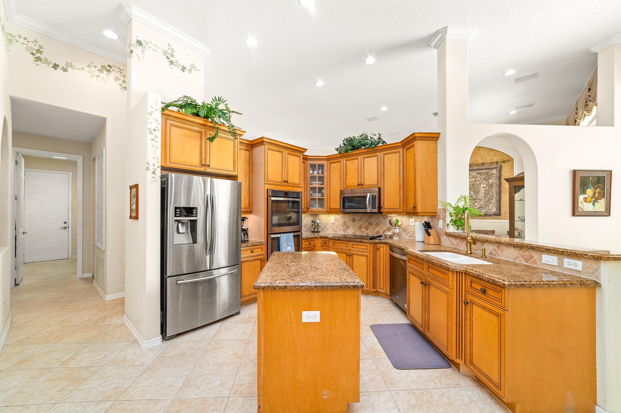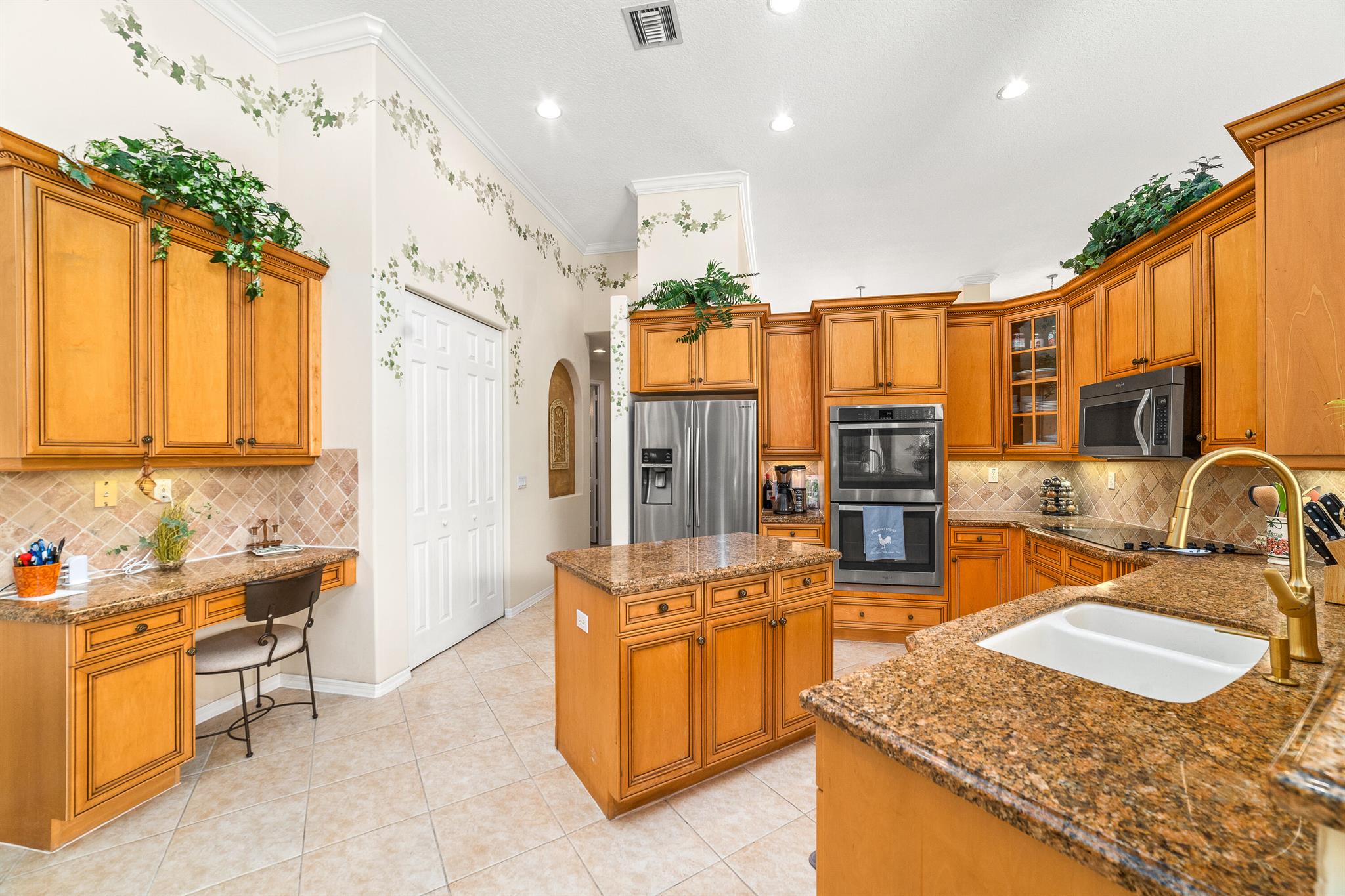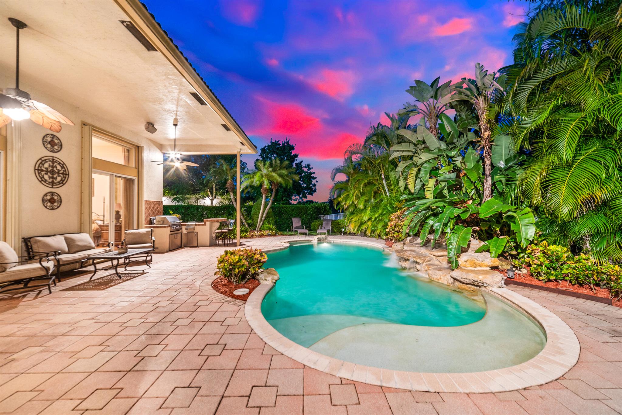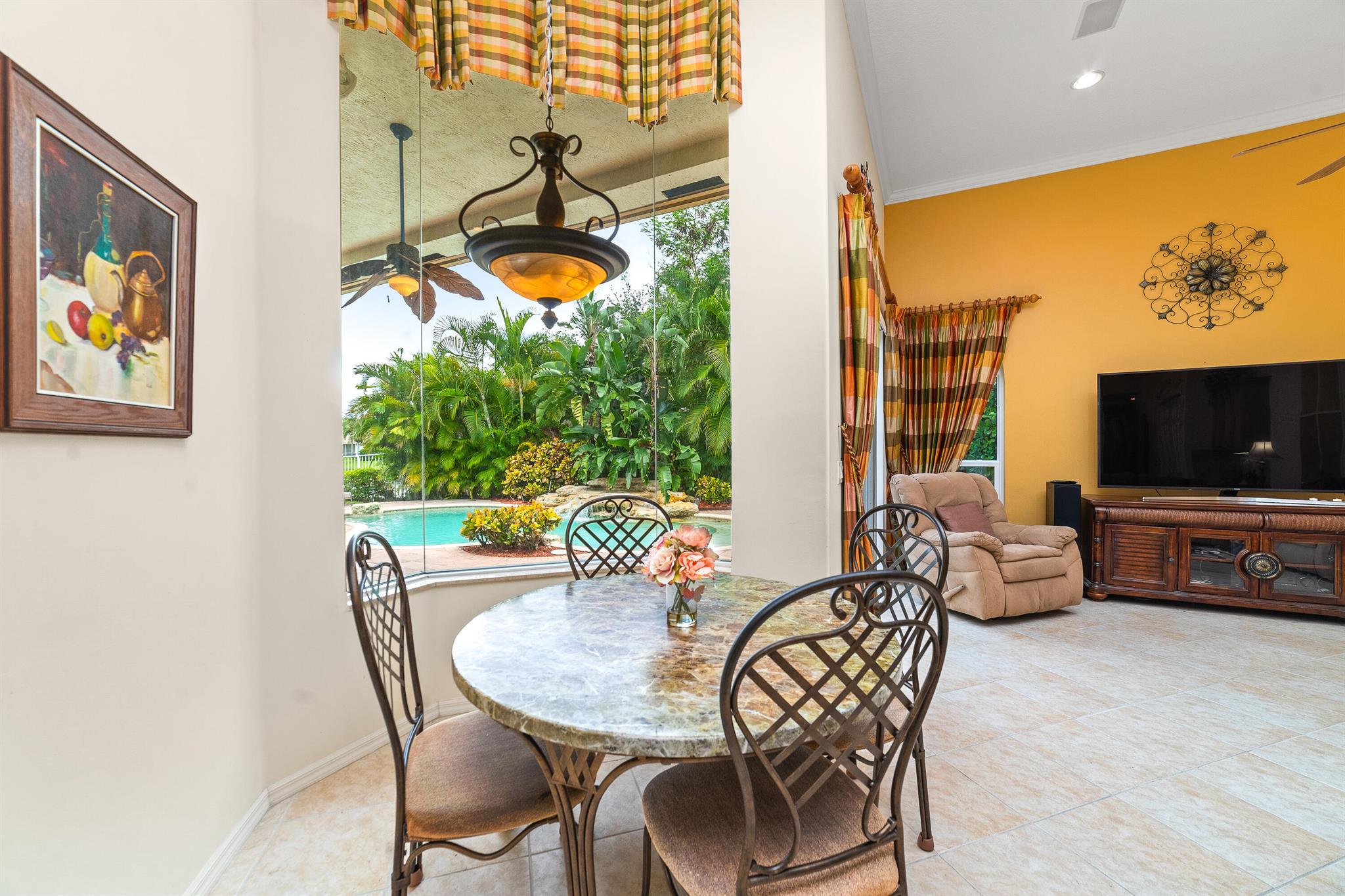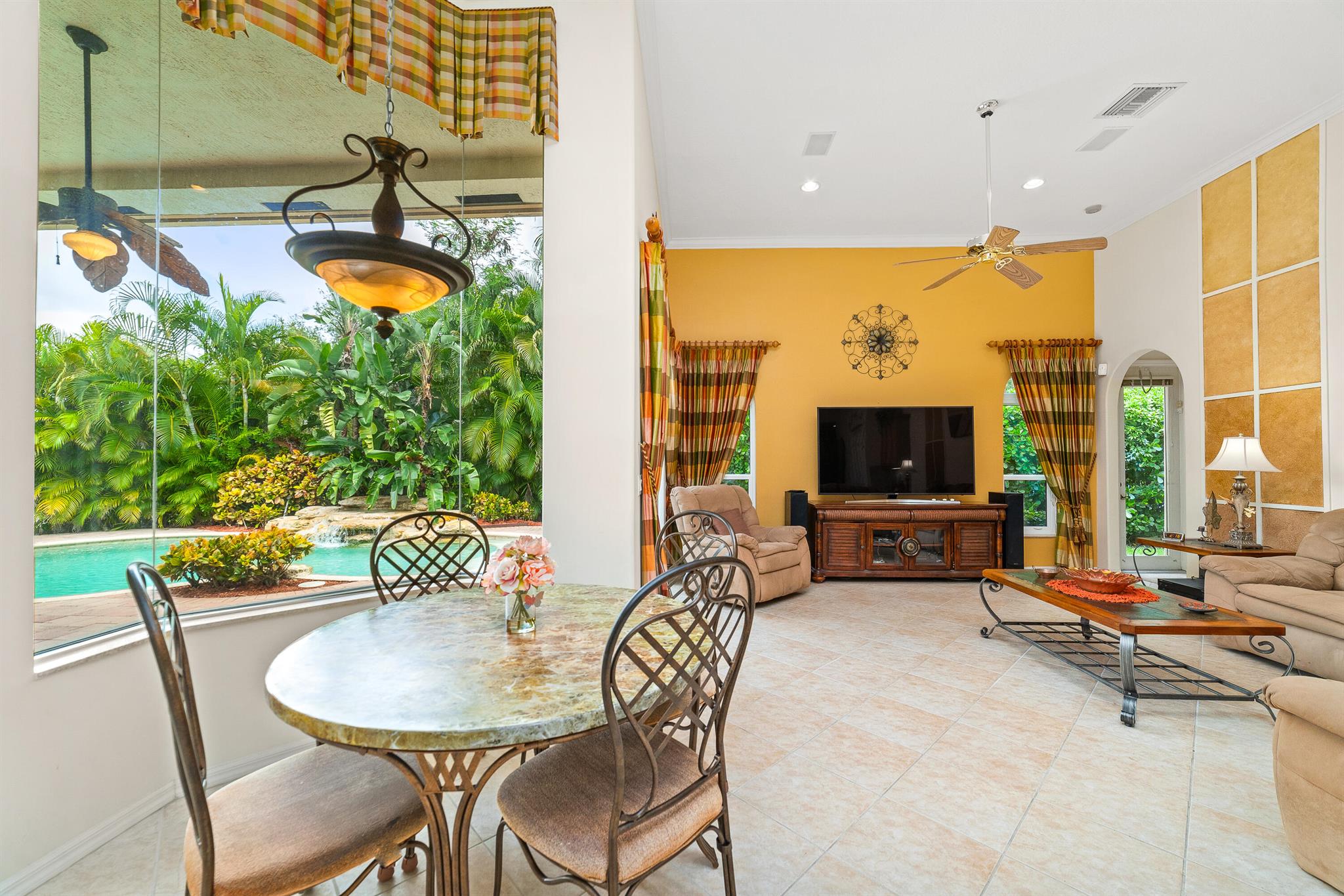 Welcome to this gorgeous 4-bedroom, 3 bathroom former Model Home located in the highly sought after Grand Reserve community of Coral Springs. As soon as you enter, you immediately notice the soaring high ceilings, custom crown molding and abundant natural light. All windows have accordion shutters, impact garage doors, full impact sliding doors and just recently installed ten impact windows. The home features a convenient triple split bedroom floor plan providing terrific privacy to both primary owner and guests. The property has tile-flooring throughout the living areas with engineered wooden flooring in the bedrooms. The Primary suite is enormous with a sizeable walk-in closet, offering custom built shelving and a beautiful view of the pool. The primary bathroom