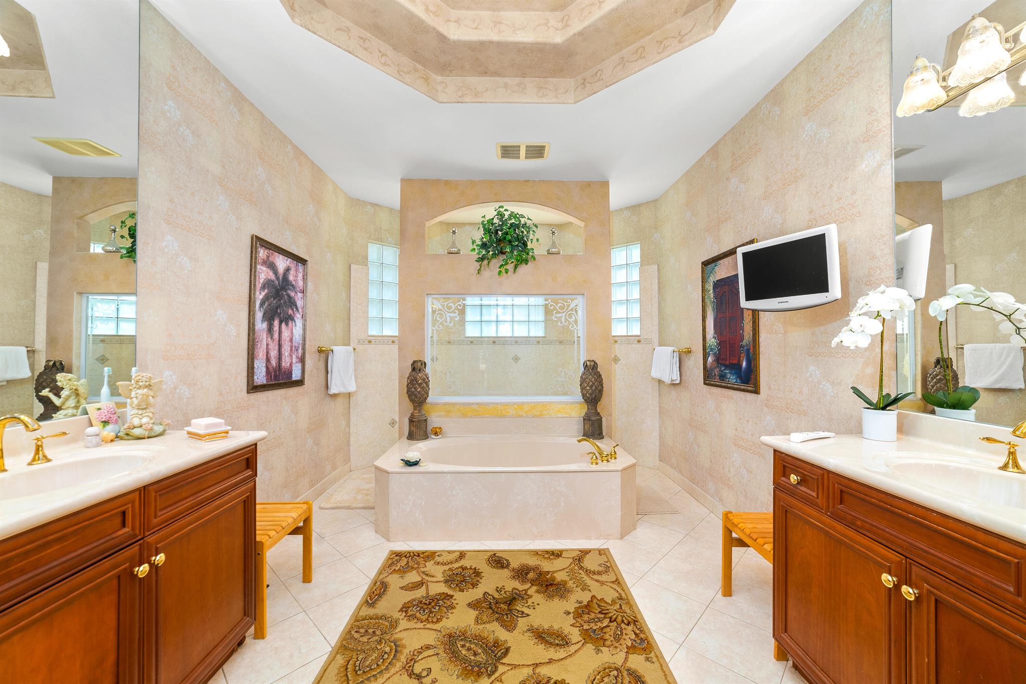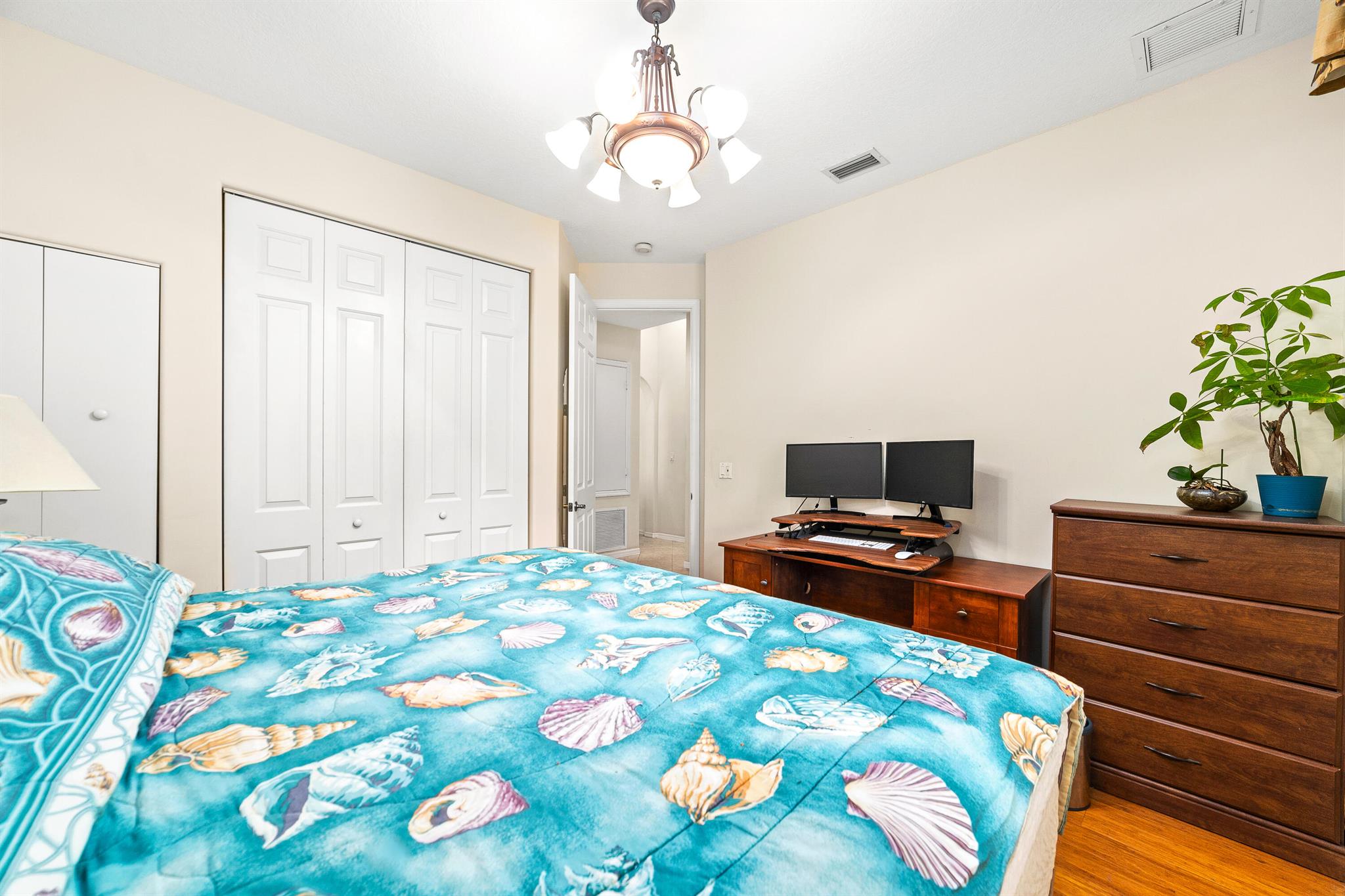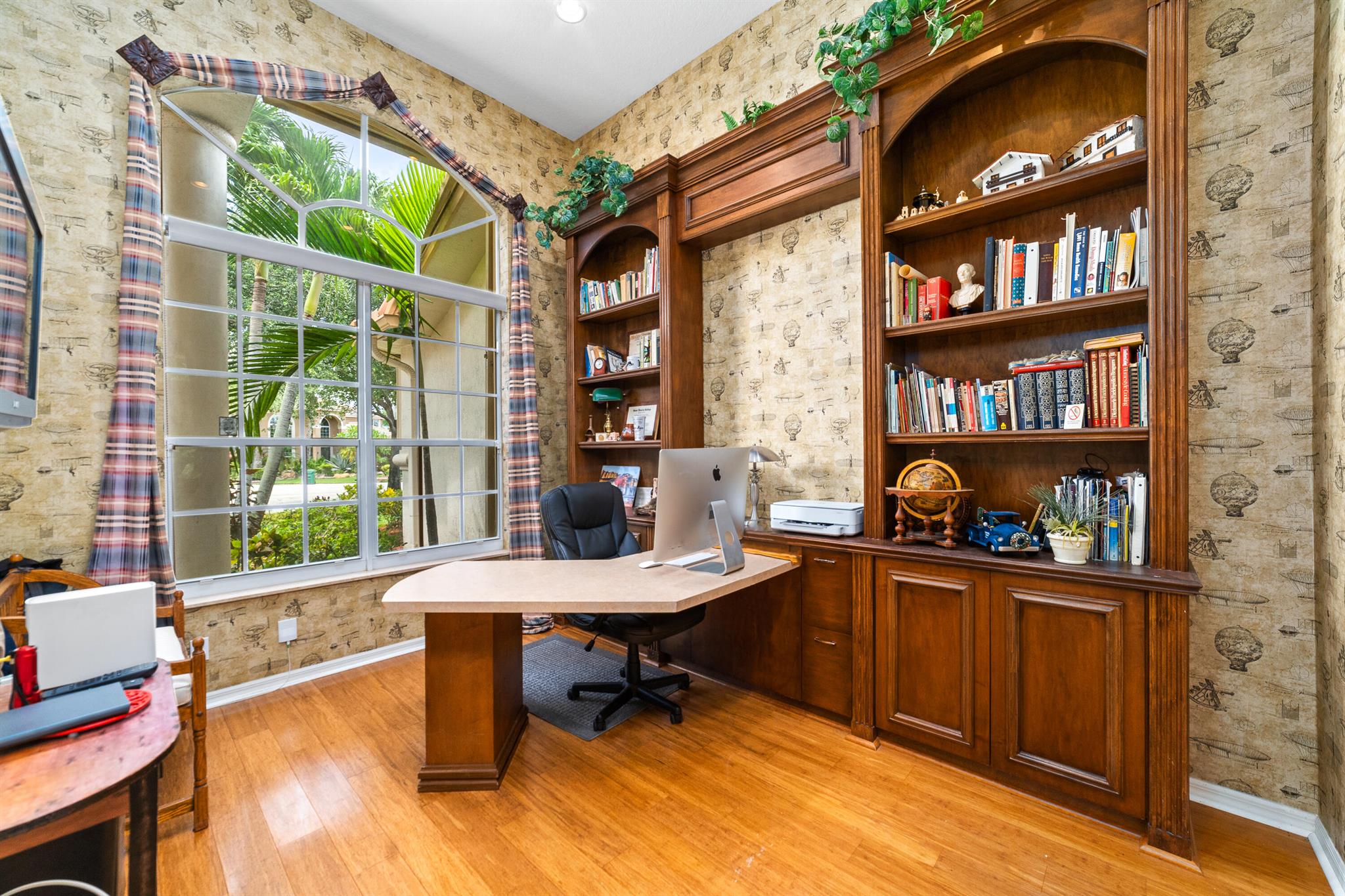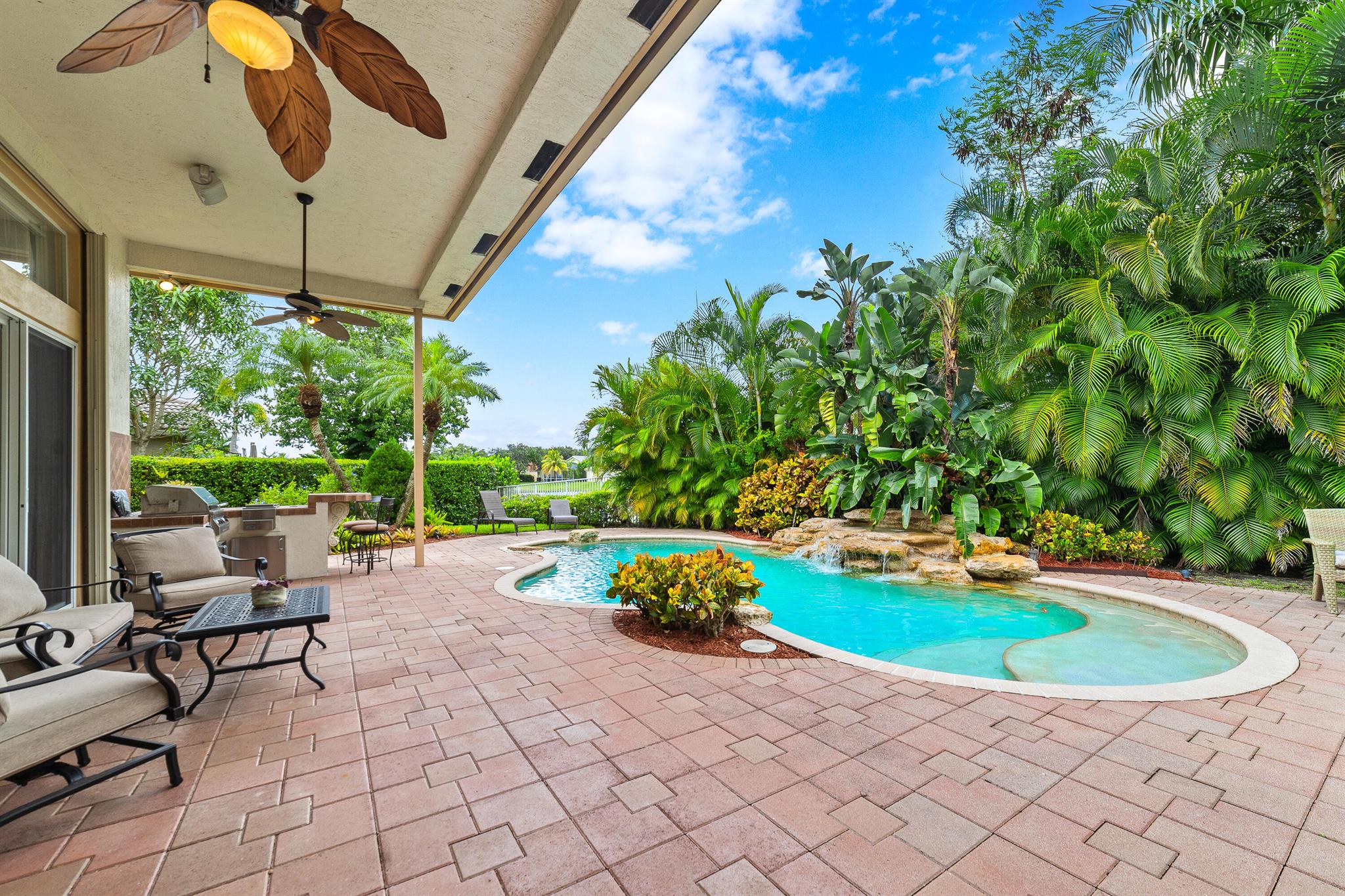 Welcome to this gorgeous 4-bedroom, 3 bathroom former Model Home located in the highly sought after Grand Reserve community of Coral Springs. As soon as you enter, you immediately notice the soaring high ceilings, custom crown molding and abundant natural light. All windows have accordion shutters, impact garage doors, full impact sliding doors and just recently installed ten impact windows. The home features a convenient triple split bedroom floor plan providing terrific privacy to both primary owner and guests. The property has tile-flooring throughout the living areas with engineered wooden flooring in the bedrooms. The Primary suite is enormous with a sizeable walk-in closet, offering custom built shelving and a beautiful view of the pool. The primary bathroom