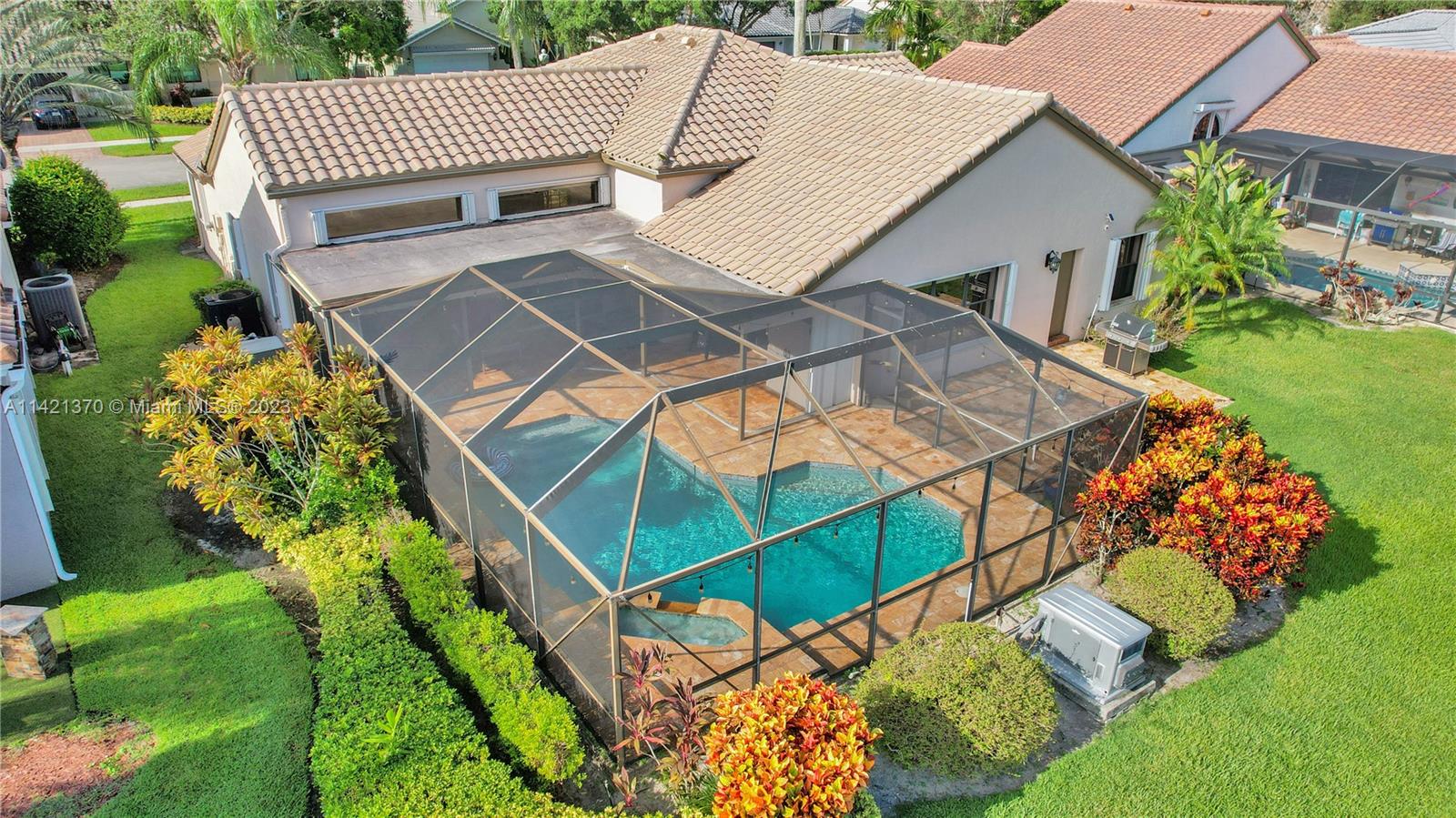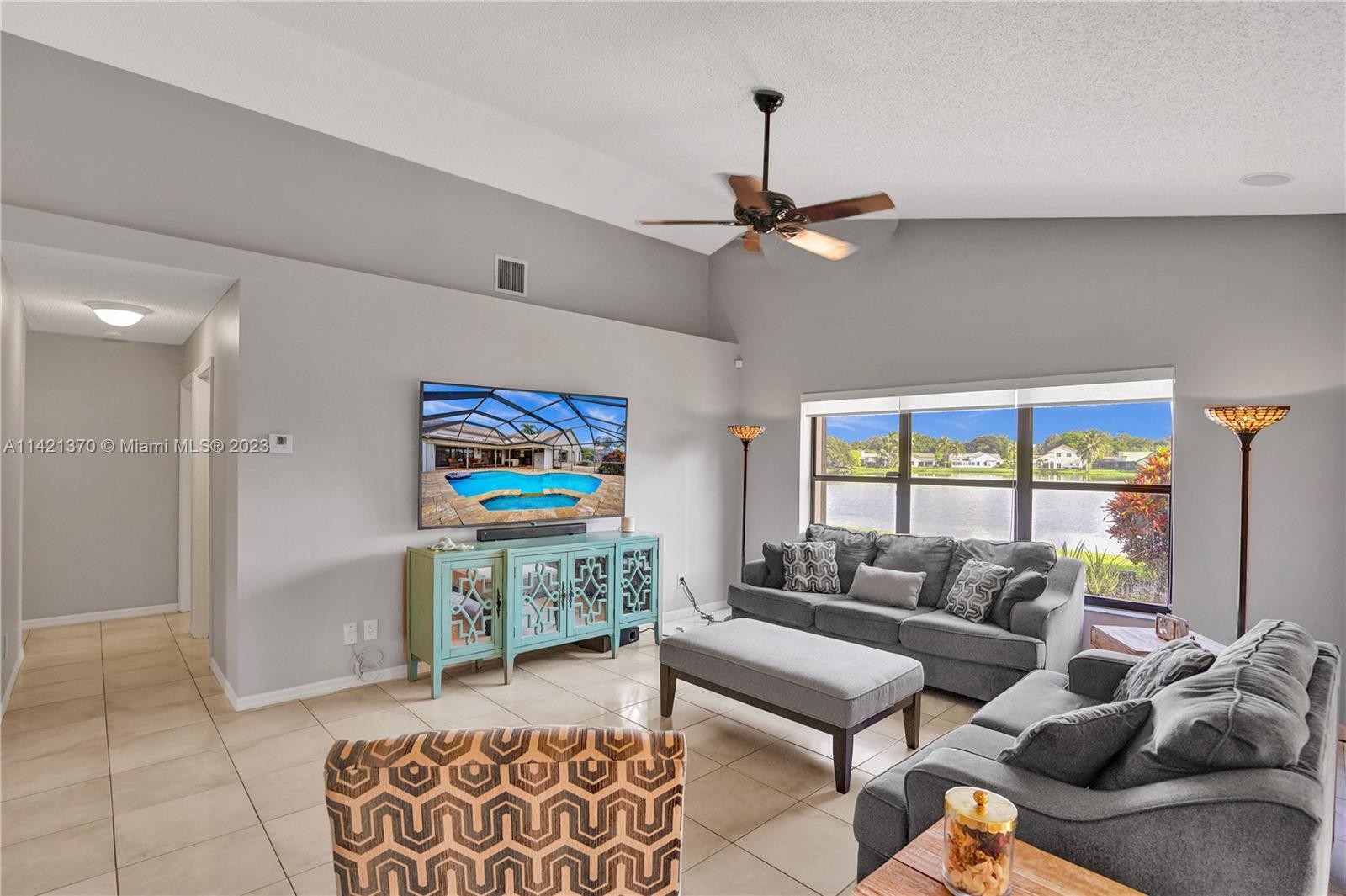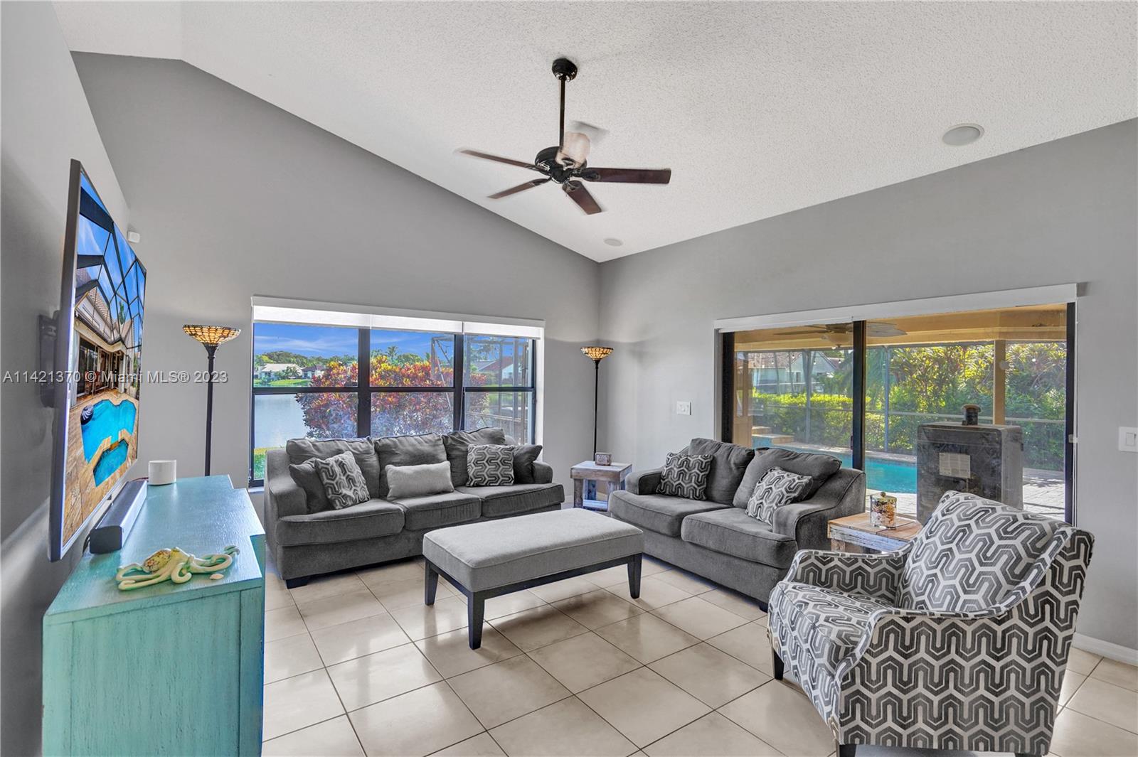 Come relax in your private oasis. Home features a screened in pool and patio with lake views. Perfect for nature lovers. 3 bedrooms and 2 baths including a bonus room in converted garage converted air conditioned garage with space for storage. The conversion is not included in the square footage. Kitchen is renovated with quartz counters and extended cabinets. Kitchen is open to Large family room perfect for entertaining. Split floor plan. Primary bedroom has en-suite with marble floors and granite countertops. Whole house generator. Walking distance to Tree Tops Park, Pine Island Park and Recreation Center, and Silver Ridge Elementary school. Near highways, schools, dining & shops