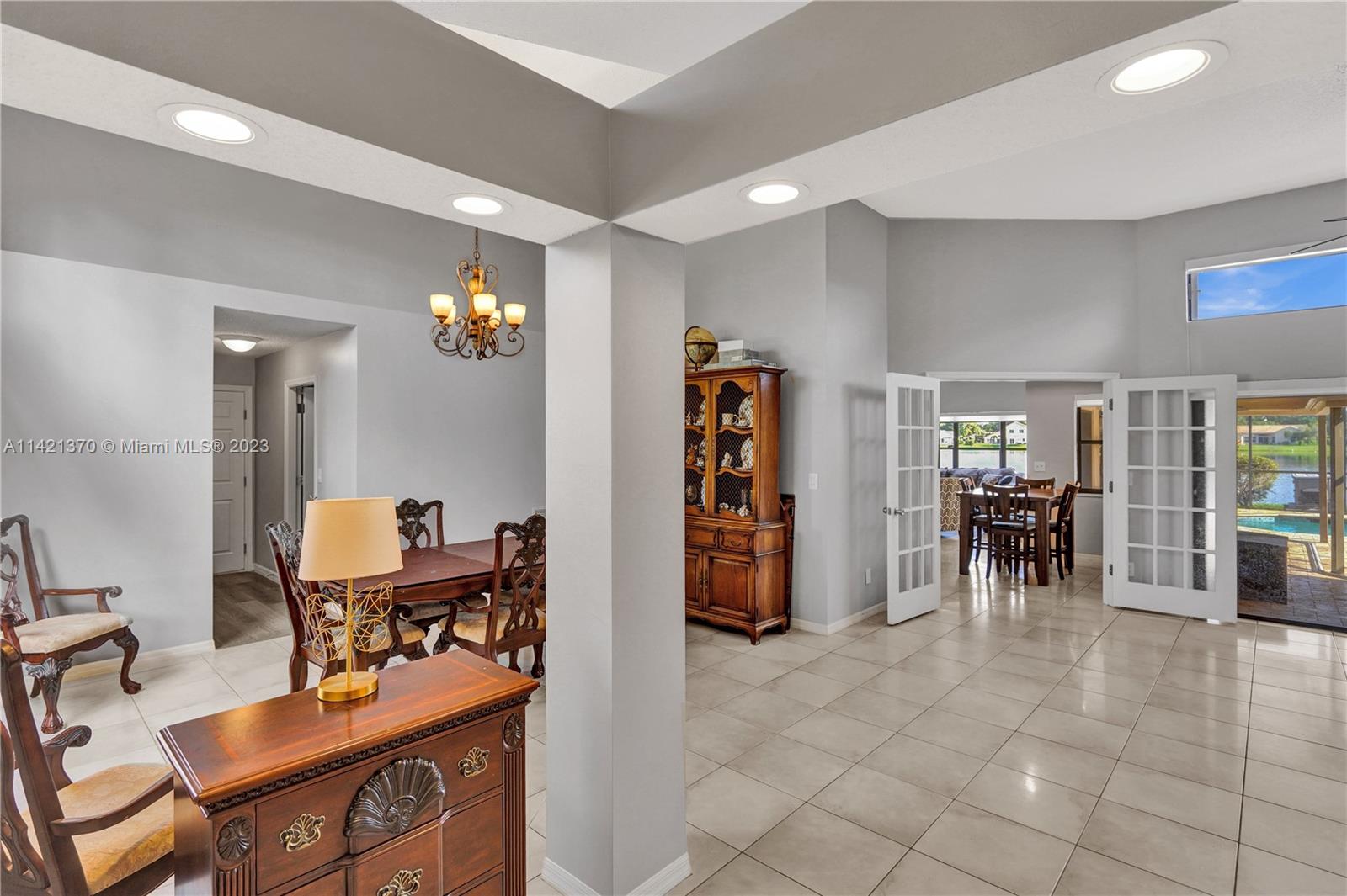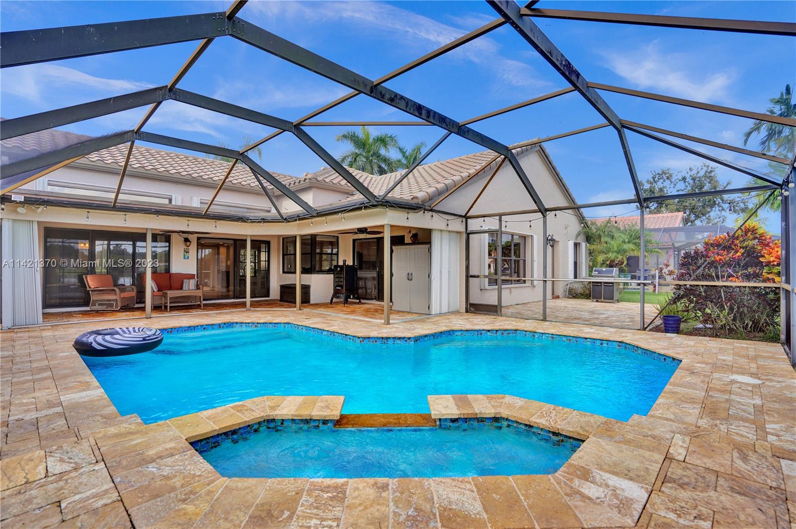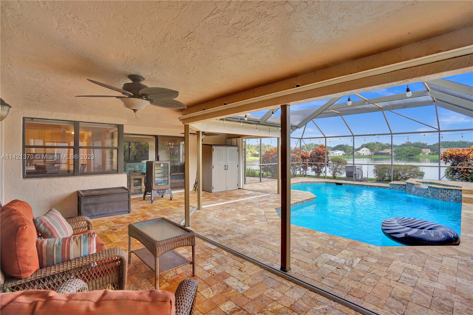 Come relax in your private oasis. Home features a screened in pool and patio with lake views. Perfect for nature lovers. 3 bedrooms and 2 baths including a bonus room in converted garage converted air conditioned garage with space for storage. The conversion is not included in the square footage. Kitchen is renovated with quartz counters and extended cabinets. Kitchen is open to Large family room perfect for entertaining. Split floor plan. Primary bedroom has en-suite with marble floors and granite countertops. Whole house generator. Walking distance to Tree Tops Park, Pine Island Park and Recreation Center, and Silver Ridge Elementary school. Near highways, schools, dining & shops