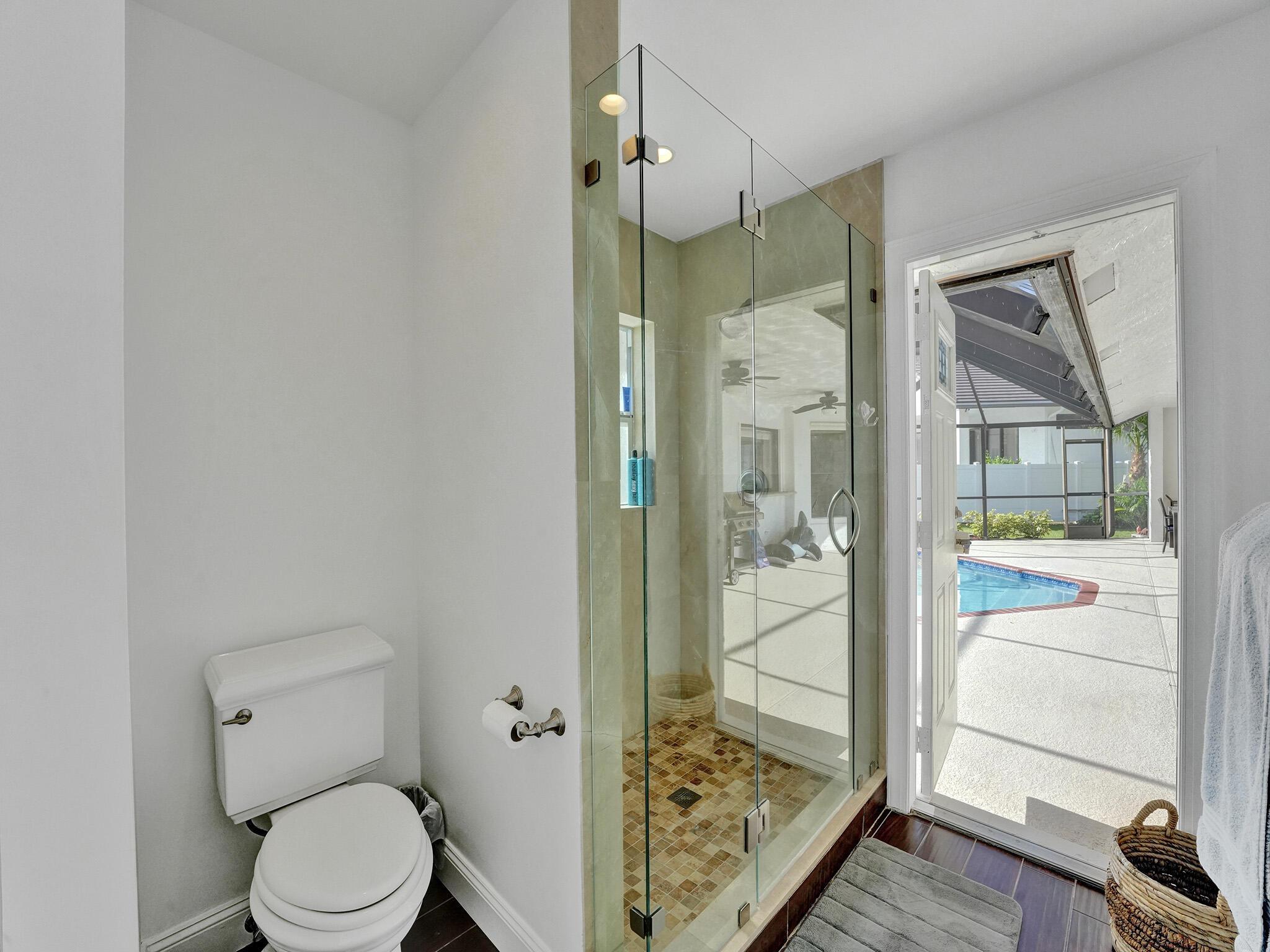 Rarely avail & highly sought-after Lakefront single-family home, corner lot, 1/3 Acre in the city limits of Boca Raton. Ranch style home w/ 4 bedrooms, 2.5 baths, 2 car garage, screened enclosure w/ saltwater pool & amazing sunrises, cabana bath, covered patio (47'x10' area) w/ direct lake views. Meticulously maintained home w/ spacious open floorplan, solid hardwood flrs in main living areas & bedrooms, newer kitchen w/ center island, granite & SS appliances, Huge Mstr w/ 2 walk-in closets, updated mstr bath, dual sinks, separate tub, & seamless glass shower. Fresh paint inside & out, high hat lights, ceiling fans, 2-A/C's, 2-skylights, 3-glass sliders to pool, covered front entrance (14'x8'), BRAND NEW ROOF w/ 10 year warranty, accordion hurricane shutters, hot water heater 1.5 yrs old.
