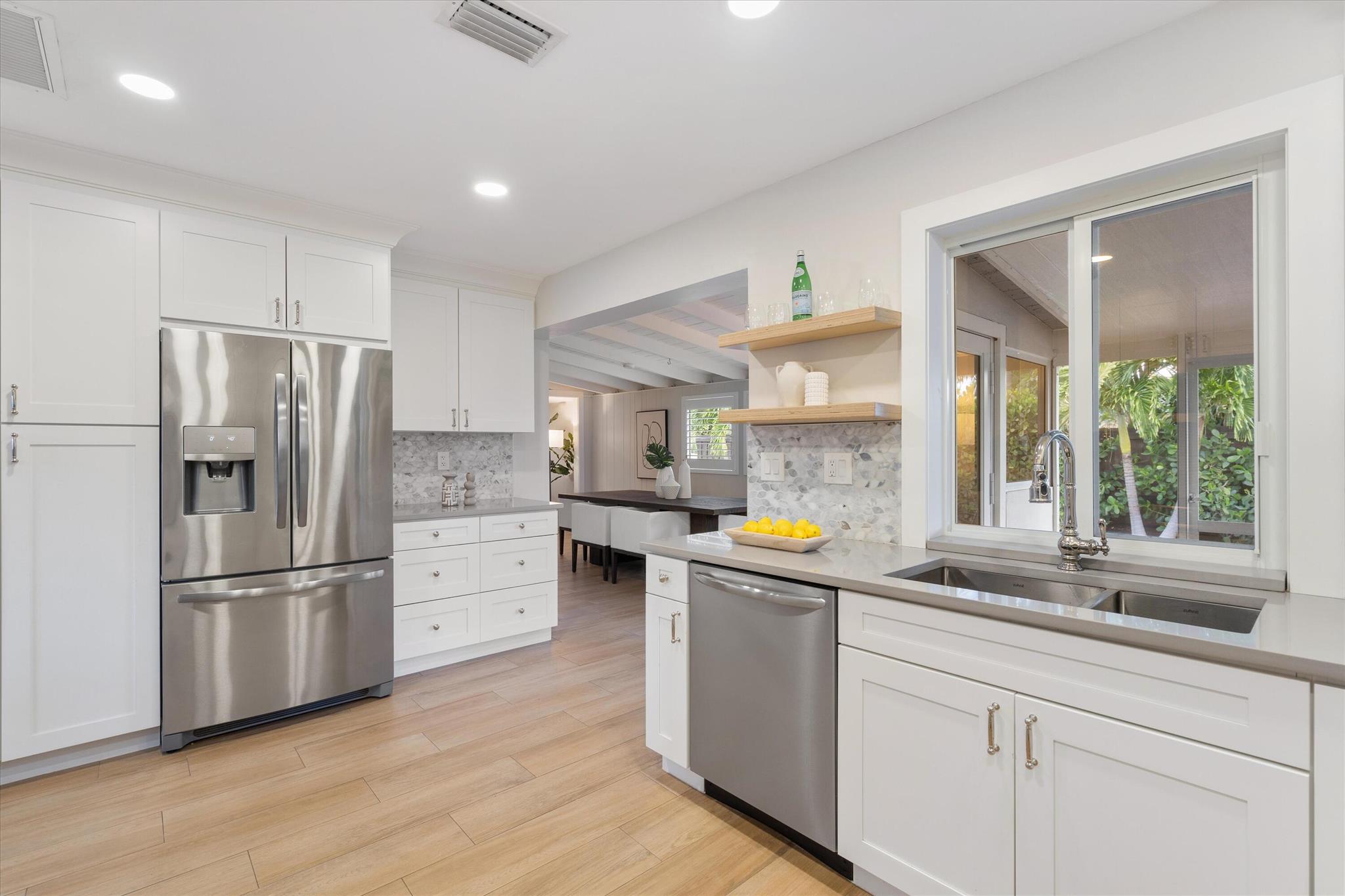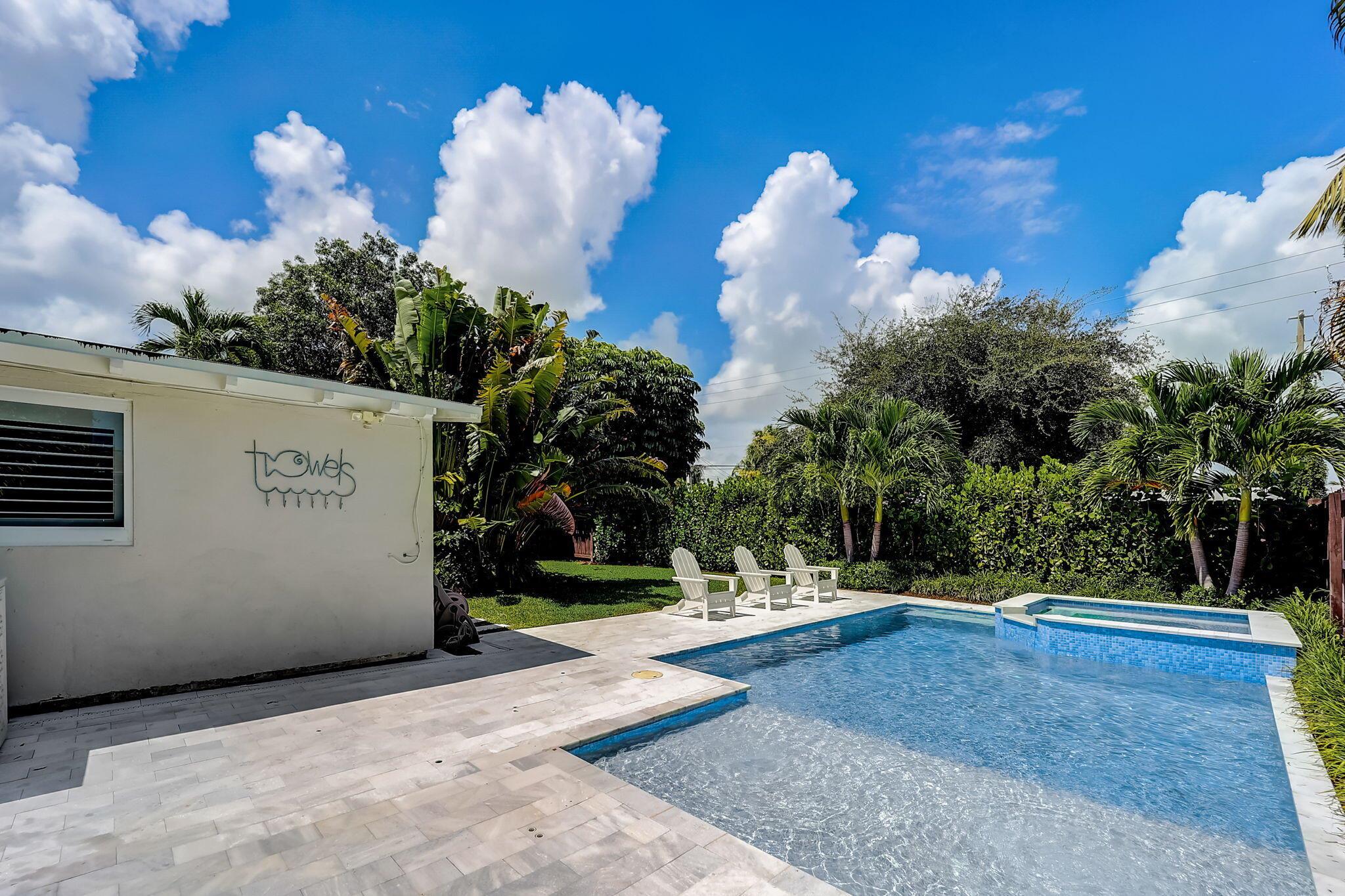 This charming single-level ranch in the Soso area of West Palm Beach comes with a prime location. Only a few blocks to South Olive Park and South Olive Elementary, and only a short drive from all that WPB downtown offers. The home sits on a huge corner lot, in a popular neighborhood where the low-traffic streets are lined with trees and sidewalks. The large, attractively landscaped yard is fully fenced for privacy. There is a screened in patio to enjoy along with a recently updated pool and hot tub. Natural lighting gives the home an open feel. Your design vision will find a blank slate in the neutral coloring of the interior. Stylish, spacious, and newly updated, the kitchen is configured in a U-shape, which is ideal for roominess and for accommodating multiple cooks