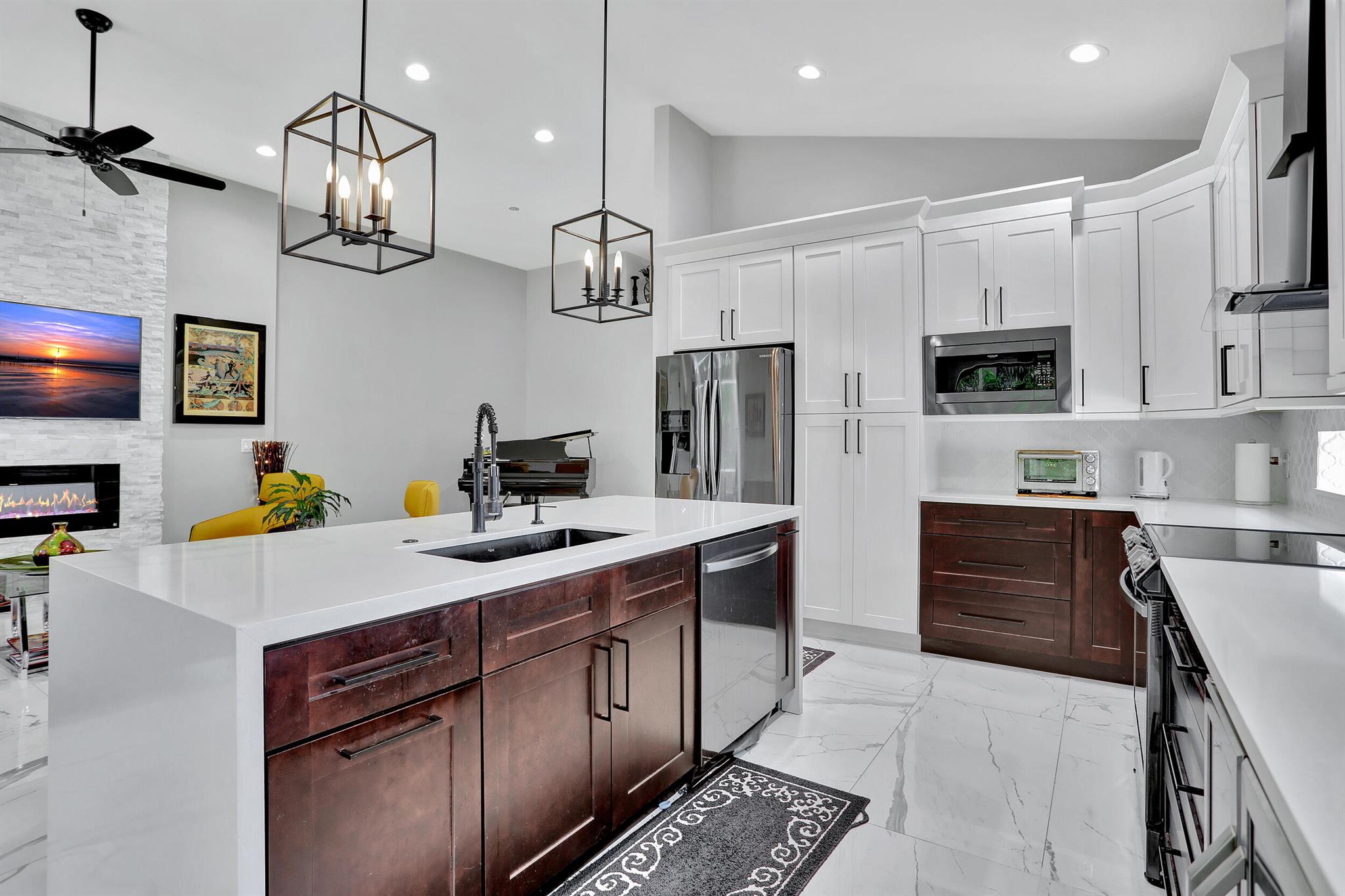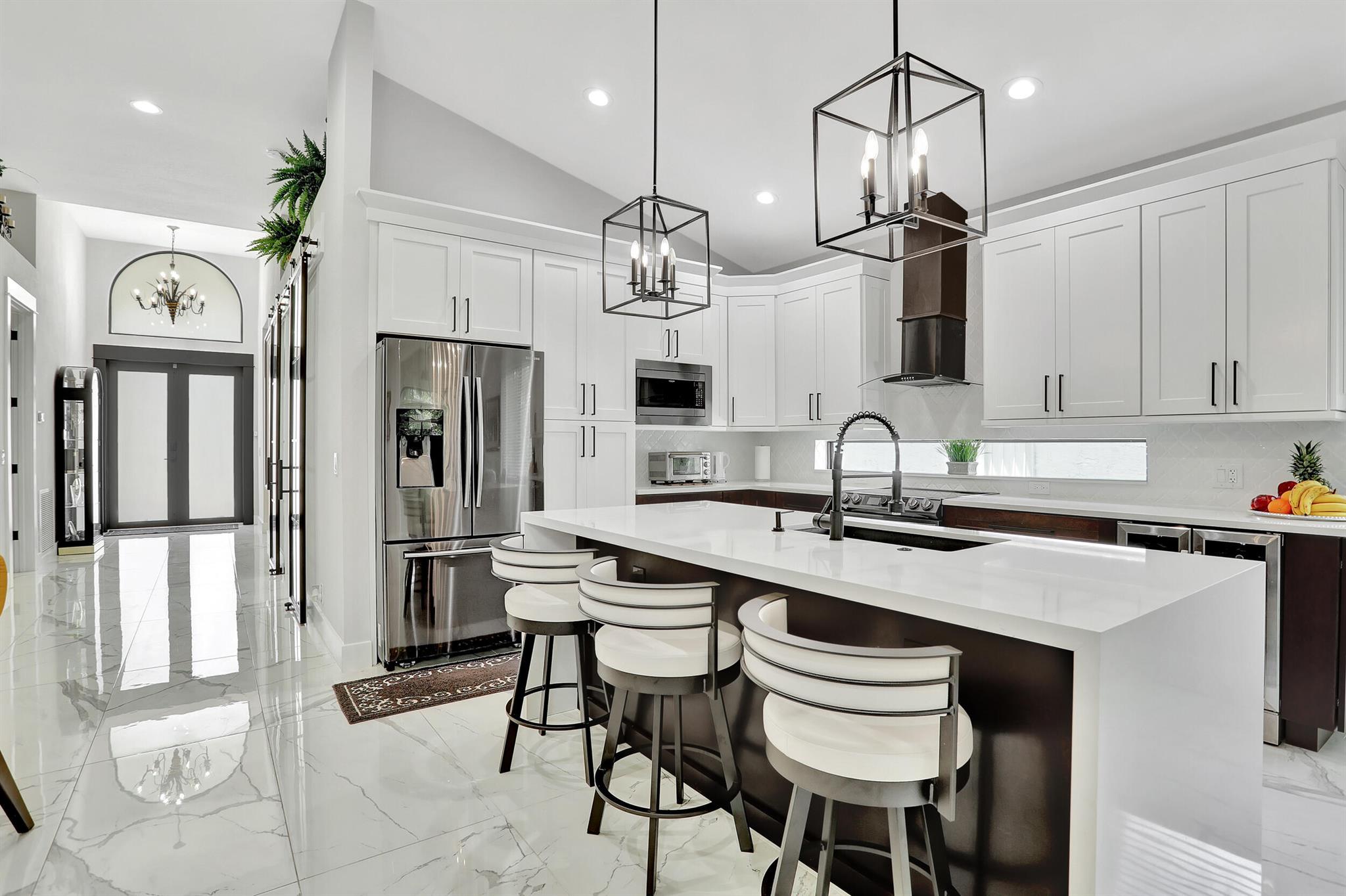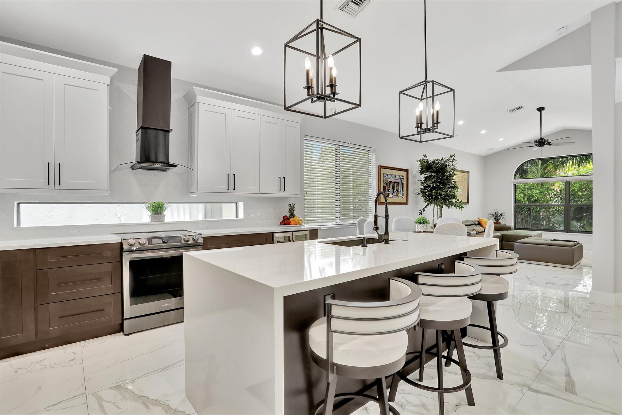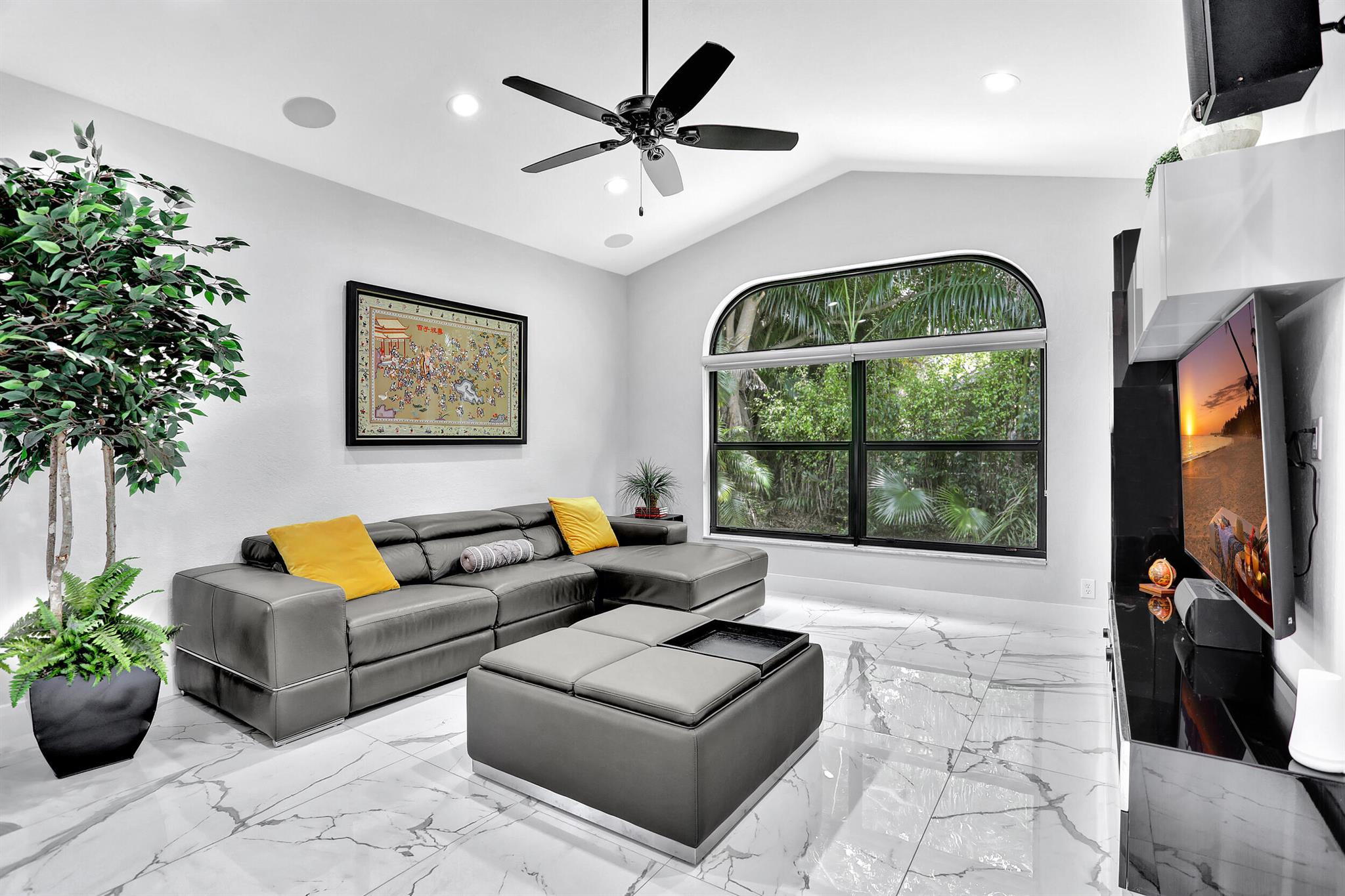 Situated behind the guarded gates of Eagle Trace you will find this exquisitely appointed home that has been remodeled with elegance and sophistication! Tucked in to a culdesac you will approach your new home thru updated impact double glass doors! Once opened the pristine marble floors catch your eye and lead you thru the foyer to the main living and entertaining area, featuring custom wall and electric fireplace! Enjoy cooking dinners in your updated kitchen area complete with an oversized island! Your CONVERTIBLE den/3rd bedroom has custom glass barn doors and a brand new vanity/valet drawers built in! This home is complete with all solid surface and tile flooring, IMPACT WINDOWS, solid core interior doors, central vac and motion and camera surveillance. Come tour this gem today!