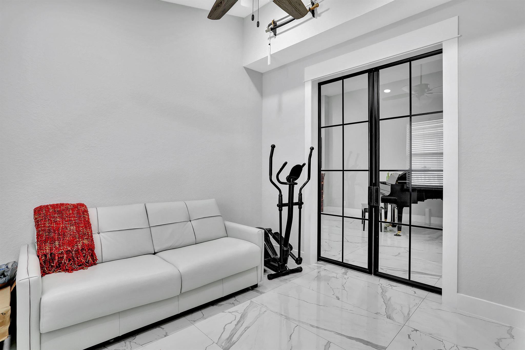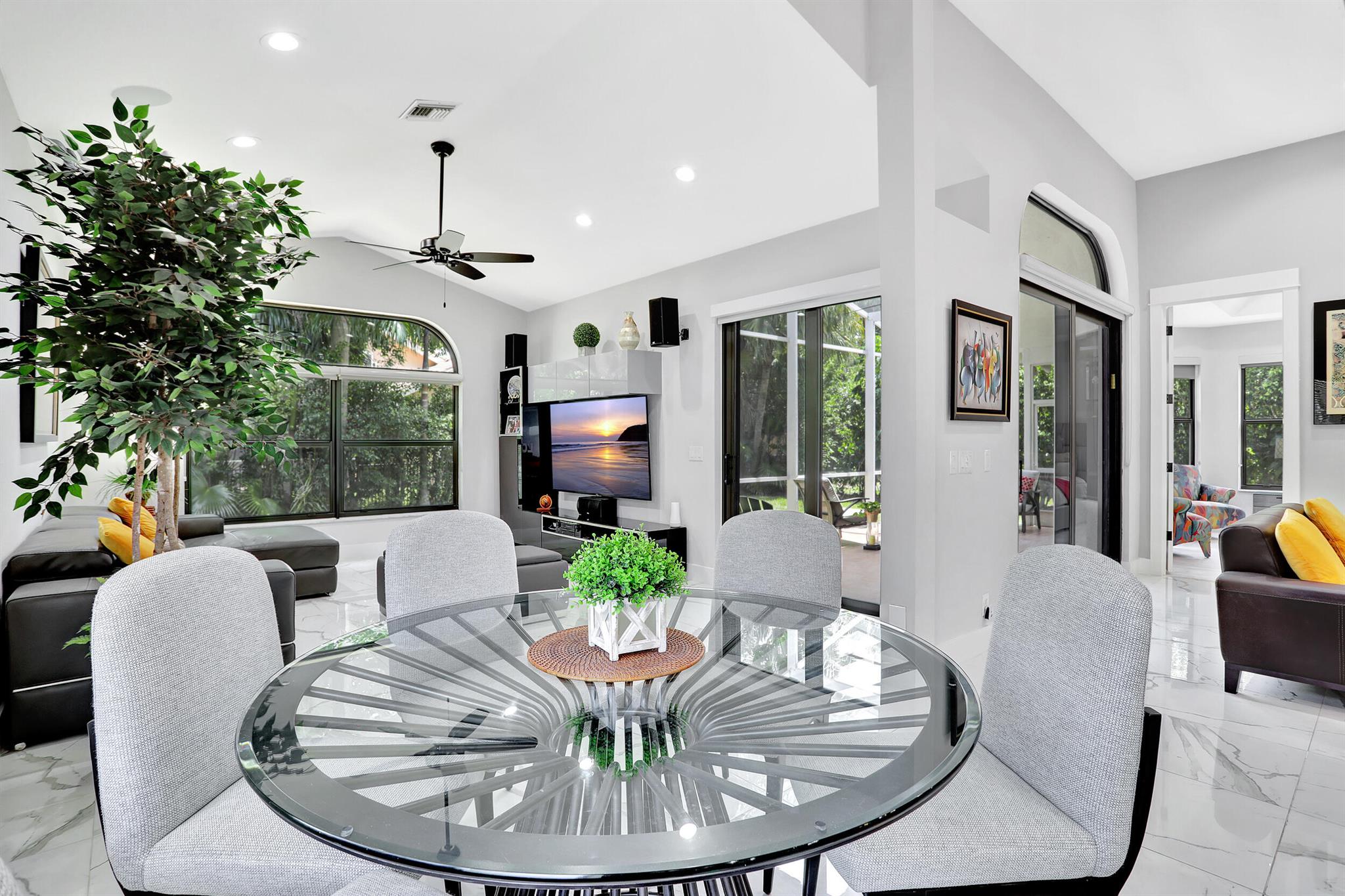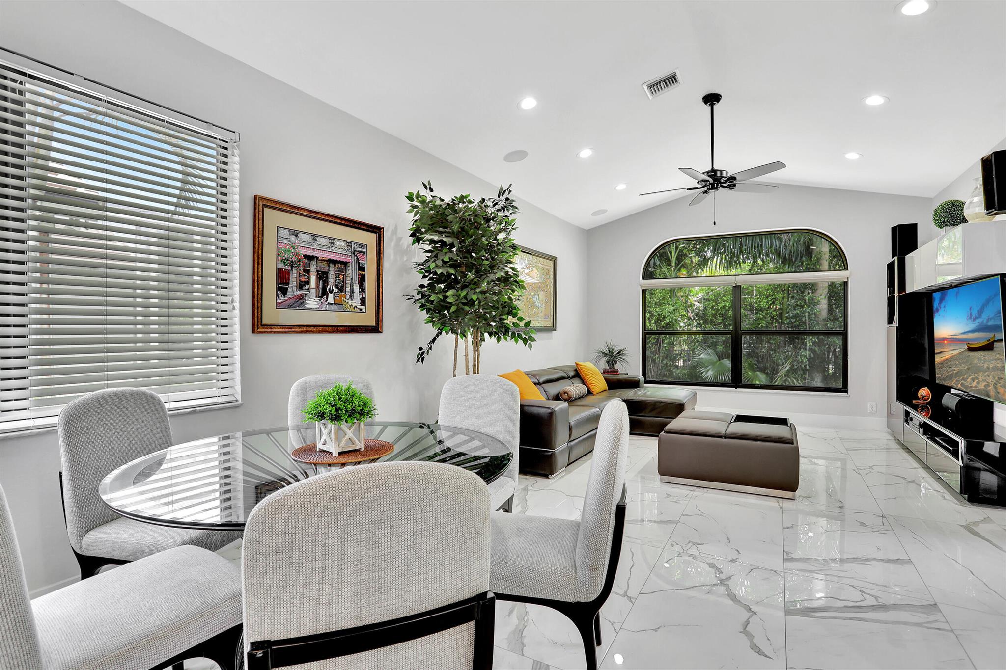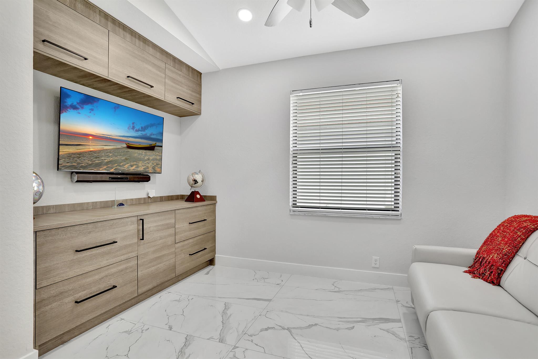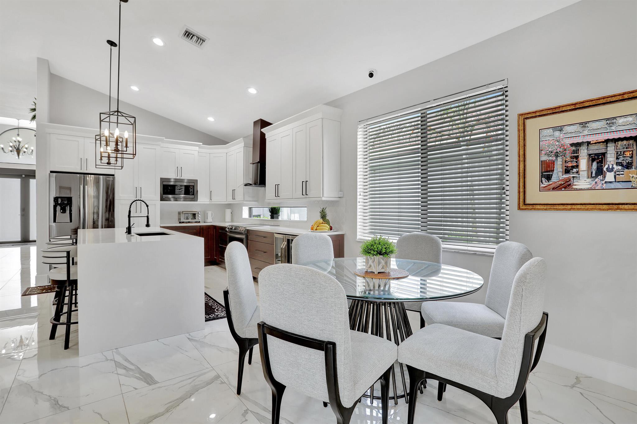 Situated behind the guarded gates of Eagle Trace you will find this exquisitely appointed home that has been remodeled with elegance and sophistication! Tucked in to a culdesac you will approach your new home thru updated impact double glass doors! Once opened the pristine marble floors catch your eye and lead you thru the foyer to the main living and entertaining area, featuring custom wall and electric fireplace! Enjoy cooking dinners in your updated kitchen area complete with an oversized island! Your CONVERTIBLE den/3rd bedroom has custom glass barn doors and a brand new vanity/valet drawers built in! This home is complete with all solid surface and tile flooring, IMPACT WINDOWS, solid core interior doors, central vac and motion and camera surveillance. Come tour this gem today!