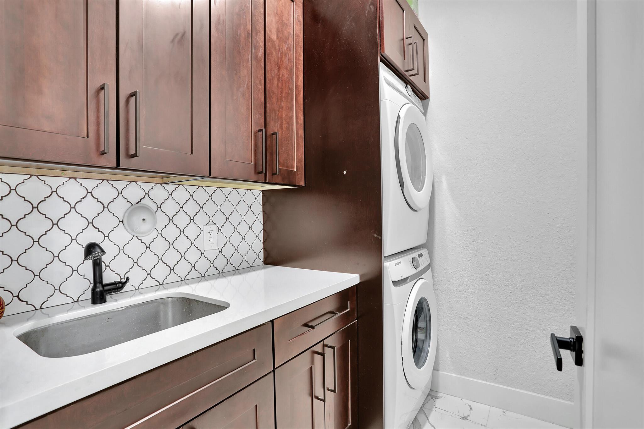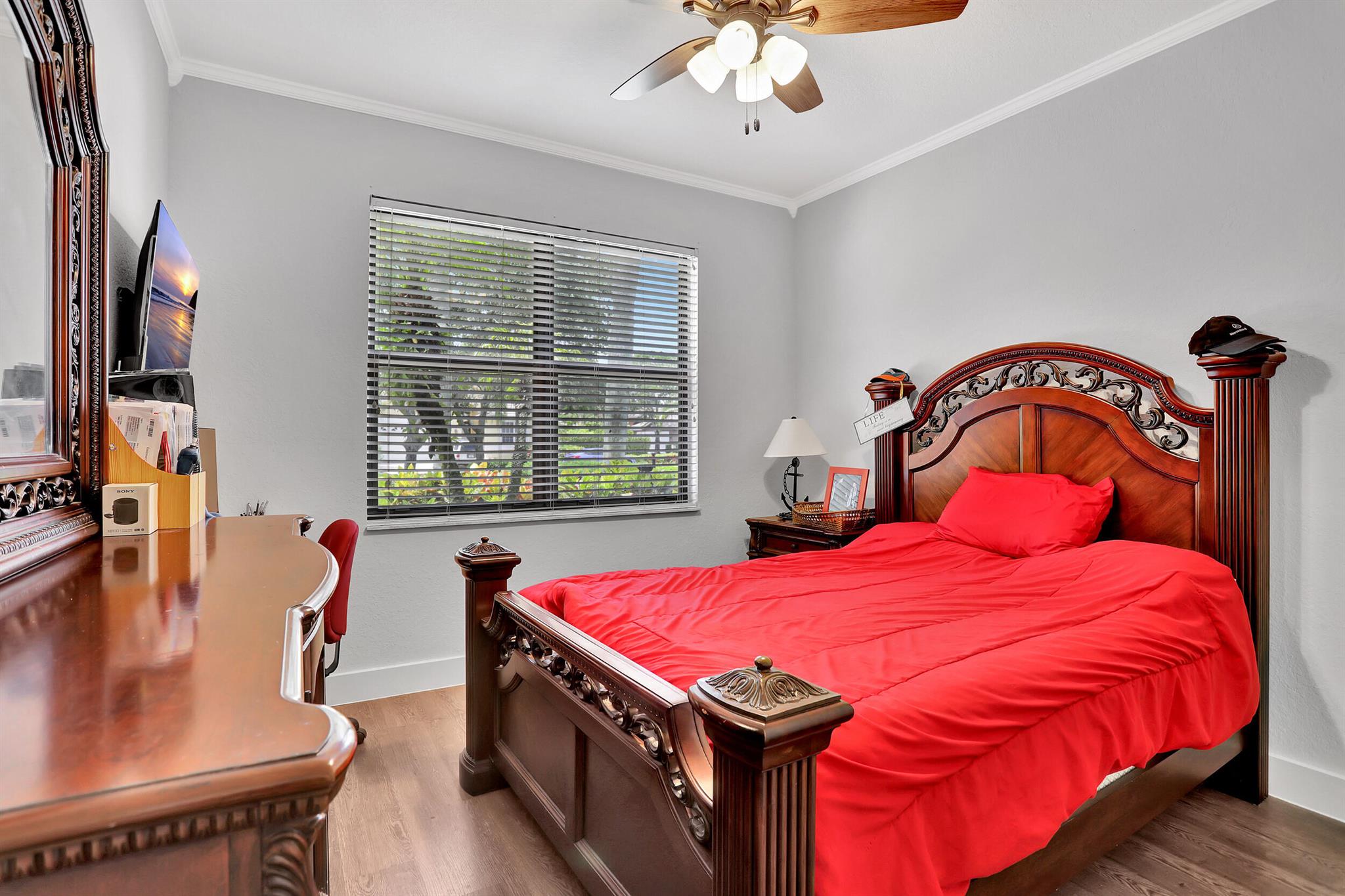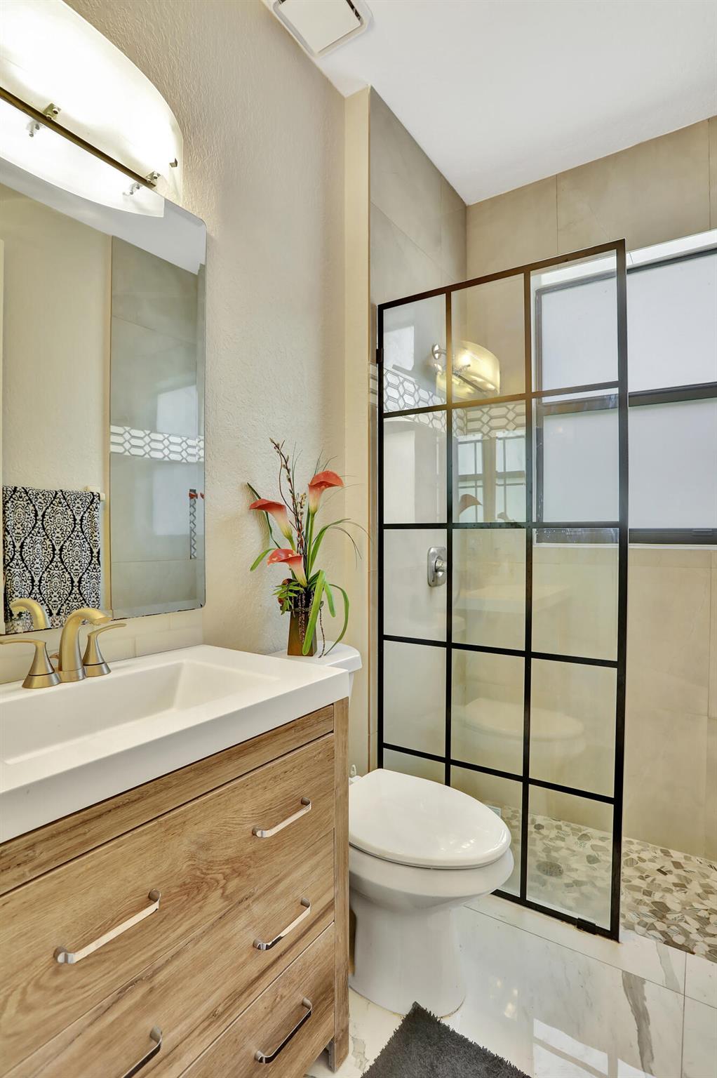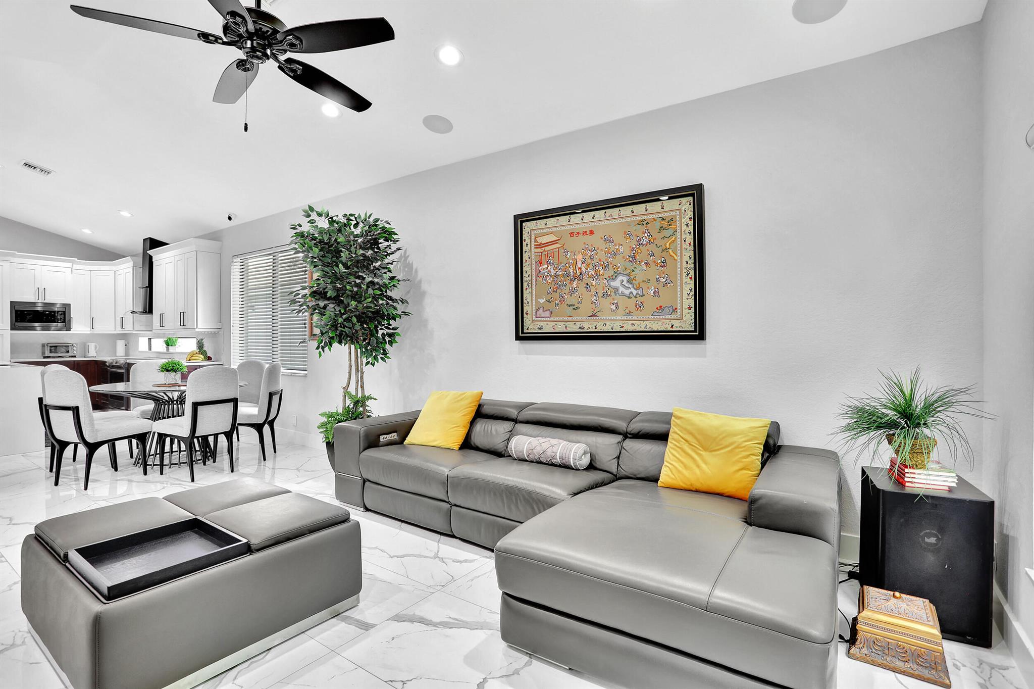Situated behind the guarded gates of Eagle Trace you will find this exquisitely appointed home that has been remodeled with elegance and sophistication! Tucked in to a culdesac you will approach your new home thru updated impact double glass doors! Once opened the pristine marble floors catch your eye and lead you thru the foyer to the main living and entertaining area, featuring custom wall and electric fireplace! Enjoy cooking dinners in your updated kitchen area complete with an oversized island! Your CONVERTIBLE den/3rd bedroom has custom glass barn doors and a brand new vanity/valet drawers built in! This home is complete with all solid surface and tile flooring, IMPACT WINDOWS, solid core interior doors, central vac and motion and camera surveillance. Come tour this gem today!