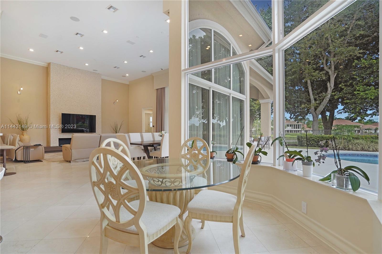MAGNIFICENT CUSTOM MADE BREATHTAKING HOME WITH GOLF TO LAKE VIEW ON CUL-DE-SAC IN THE BEST COMMUNITY. AMAZING MASTER BEDROOM WITH ADDITIONAL BRAND NEW BUILT BEDROOM IN THE GARAGE. ELEGANT MARBLE FLOORS IN SPACIOUS LIVING AREA. 16FT CEILINGS AND HUGE HURRICANE IMPACT WINDOWS INSTALLED 2021. FABULOUS GOURMET KITCHEN, WITH ALL APPLIANCES, EXQUISITE FAMILY ROOM, WET BAR AND FIREPLACE. NEW ROOF, NEW A/C, ALL BATHROOMS REMODELED! ALL BEDROOMS WOODEN FLOORS AND CLOSETS. NEW EQUIPMENT FOR JACUZZI AND POOL. REMODELED GARAGE WITH A/C. SURROUND SYSTEM THRUOUT THE HOUSE.