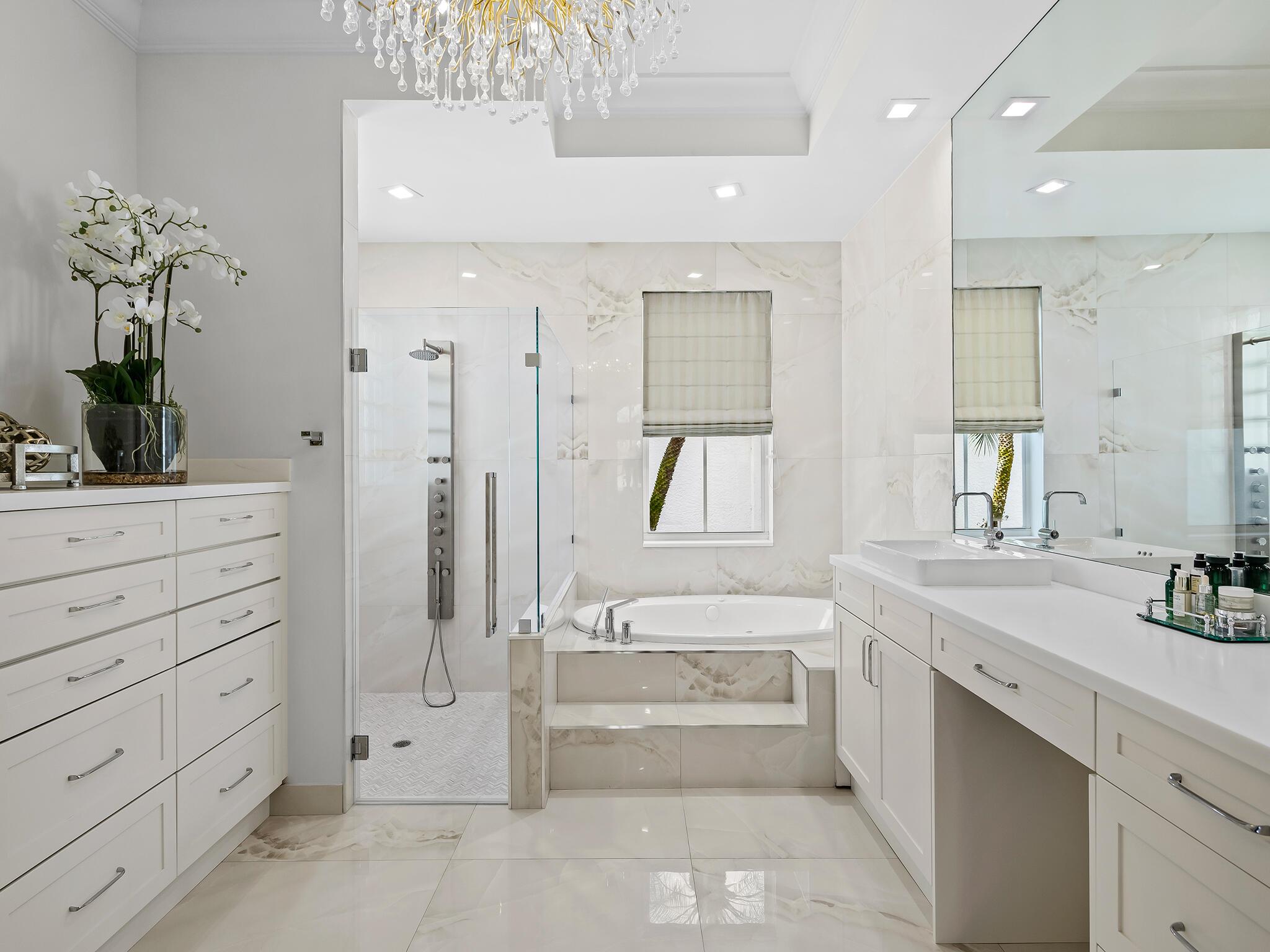 Experience unparalleled luxury in this spectacular fully renovated home in The Oaks. Revel in stunning lake views, breathtaking sunsets, a new roof and lushly landscaped backyard, complete with a large patio and pool. This 5 BR home + office, 6 full & 1 half BA's with 4,869 living sq ft, boasts a modern chef's island gourmet kitchen, 4X4 porcelain flooring, a fireplace and a custom bar that complements the open layout. The primary suite, w/ 3 custom walk in closets, his and her bathrooms, home office, and ensuite guest bedroom all on first floor. Experience comfort and entertainment with 3 ensuite bedrooms and home theater upstairs. With a lakefront location, corner lot, extra-large circular driveway, 3-car garage, and pristine features throughout, make this home truly exceptional!