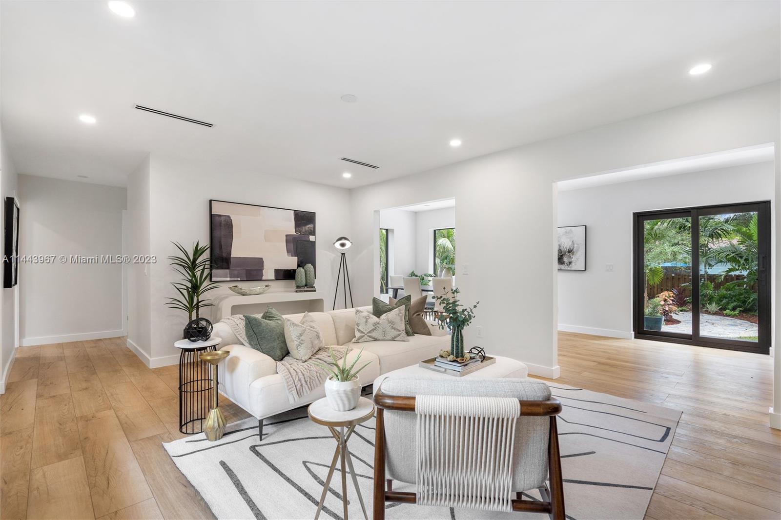 Exquisite Tropical Haven in Miami Shores - A Truly Unique Gem! Immerse yourself in the splendor of this completely renovated 2-bed, 2-bath gem in Miami Shore. Plus an extra room that can be used as a den/office or 3rd bed. Renovated from the studs up, this home is bathed in natural light; the spacious interior boasts a modern kitchen with stainless steel appliances and unique tile flooring. The impact windows offer both security and breathtaking views of the lush landscaping. Perfect for gatherings, the serene backyard sits on a quiet, tree-lined, dead-end street. Experience the allure of upscale living and tropical beauty in one unique package!