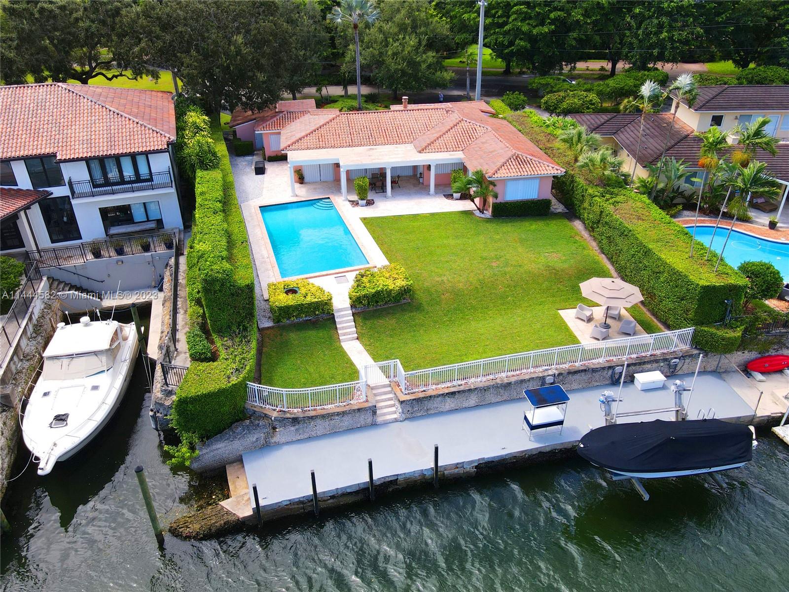 Welcome to this 4 BR, 4 BA boater’s dream home prominently situated on the Coral Gables waterway. This gracious property features 75 ft of water frontage, private dock & boat lift, providing seamless navigation under two high bridges to the open water. Step inside the 2,646 sf house & discover a classic floor plan with split bedrooms, eat-in kitchen & spacious living spaces that open to the outside through sets of French doors. Outdoor living is further enhanced with a 20x40 foot pool, a deep covered patio and a sprawling lawn on a 15,300 sf lot which is elevated high above the canal. Enjoy living in an ideal location w/ easy access to the vibrant amenities of South Miami, the cultural offerings of the University of Miami, & prime water access & views!