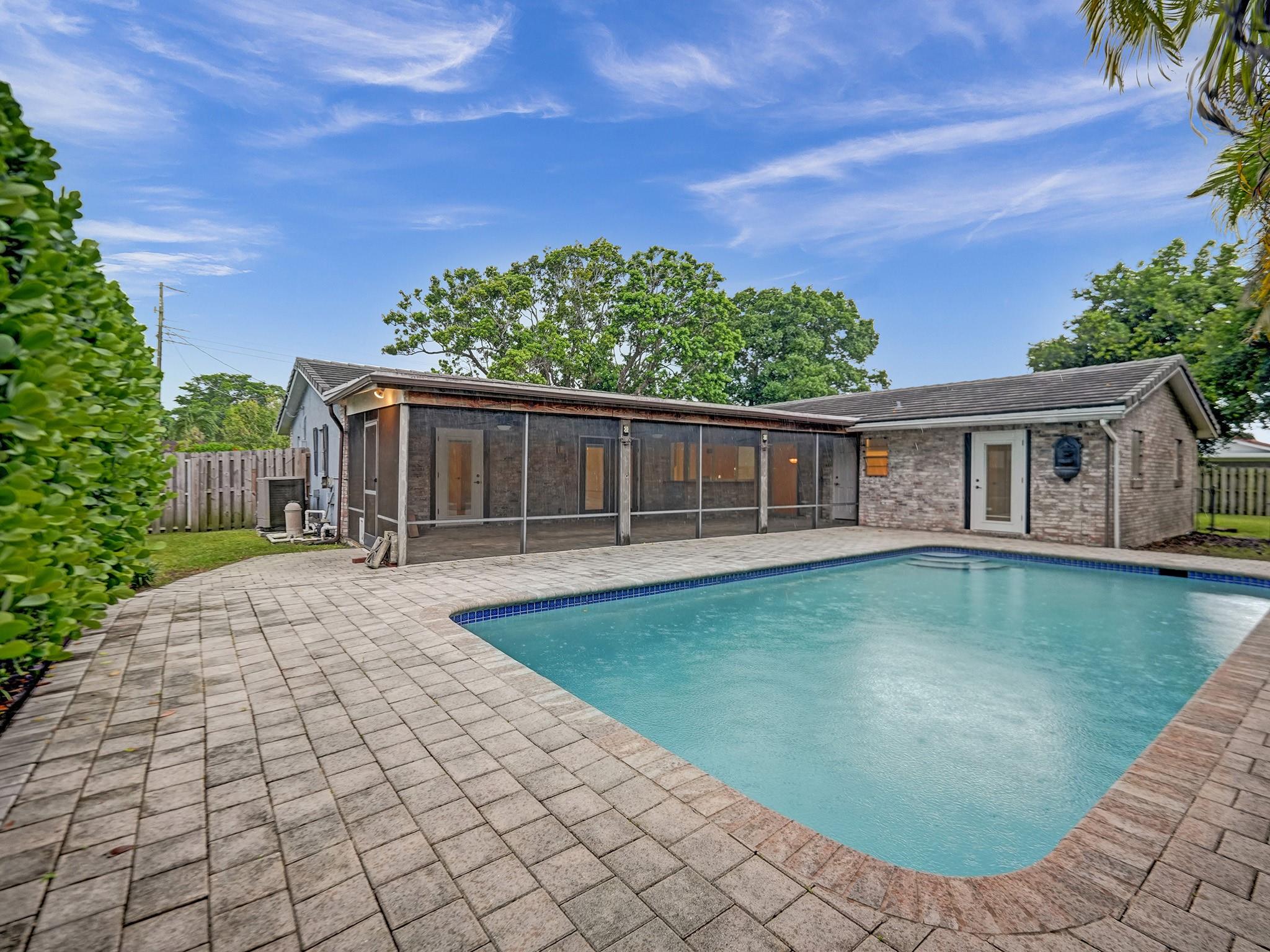 South Florida lifestyle at it’s finest! This home sits on 12,650sf lot and has all you need inside & out with 4 bedrooms, 2 bathroom plus a den. Spacious home with living room/dining room area & separate family room. Kitchen boasts wood cabinets, granite counters, SS Appliances. New washer/dryer, fridge, range and cooktop. NO HOA FEES in this neighborhood. Enjoy an attached 2 car garage and a paver driveway can accommodate endless possibilities for the space. Large laundry located in garage. Huge Screened porch adds yet one more living space overlooking tropical pool setting. Lush landscaping & fenced backyard creates a private paradise to relax & enjoy. Pool is heated to enjoy year round. Appliances replaced: 2020-2023 Roof: 2018, Pool pump/Heater: 2021