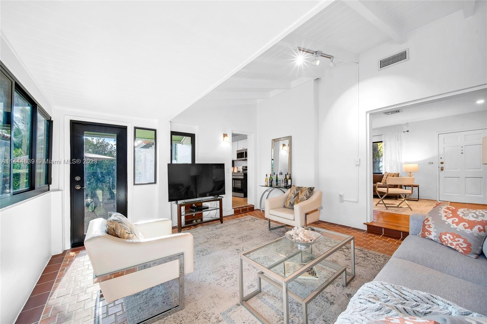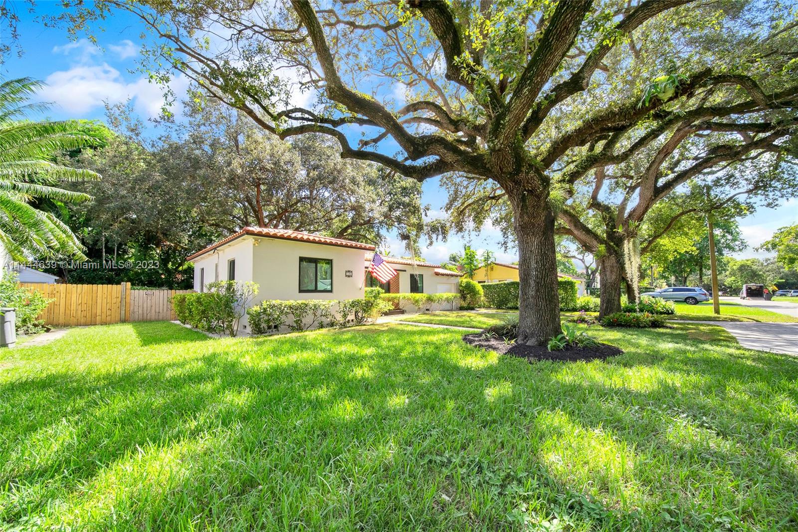 Welcome to Six Oaks, in the heart of Miami Shores. You’ll feel like you’re living in your own private sanctuary in this meticulously maintained and smartly updated early mid-century home, surrounded by six breathtaking majestic live oak trees. Enter into desirable open flow living with natural hardwood floors, working fireplace, separate dining room, generous kitchen and grand rear media-sun room opening to the lush rear gardens. A stately starter home or clever down-sizer, with two spacious bedrooms, two full baths, and a one car garage. Updates include new tile roof, upgraded electrical, impact windows-doors and brand-new appliances, with plenty of upside! Tranquility awaits in this must-see home on a quiet tree-lined cul-de-sac, a few blocks to downtown Miami Shores in a non-flood zone.