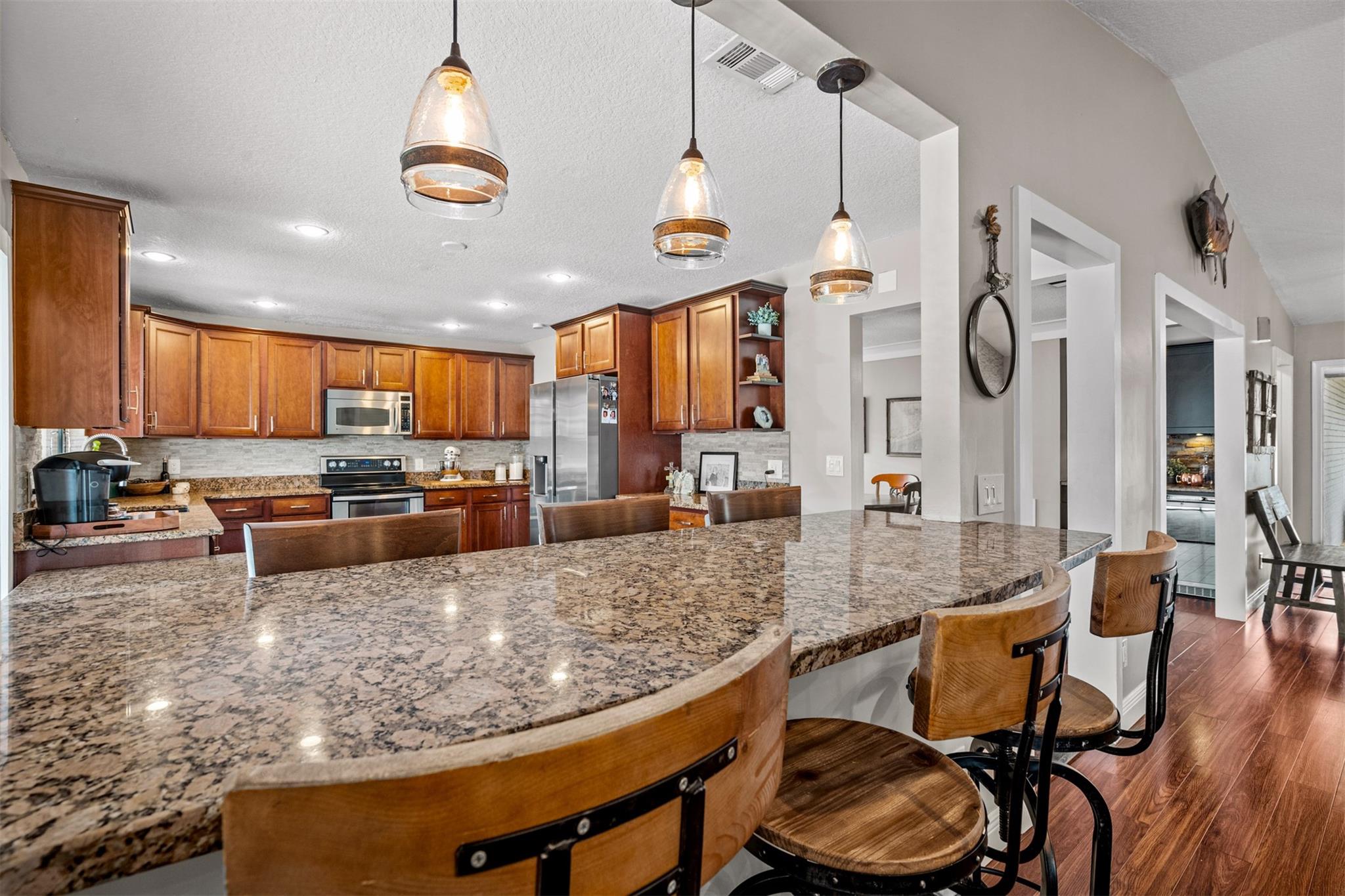 Welcome to your dream home! Nestled in a PRIME LOCATION, this exquisite 5-bed/2-bath features: Spacious 2-Car garage. High ceilings. Inviting living space. Kitchen with granite countertops and plenty of space for meal prep, Window overlooking the pool with a breathtaking view that's sure to inspire your culinary creations or to keep an eye on the kids. Charming custom home bar. Master bedroom with walk-in closet, double sink, a tub & separate shower, side door conveniently opens up to the pool area allowing you to step out for a refreshing dip or unwind poolside. Spacious bedrooms. Guest bath with double sink & relaxing bathtub. Plenty of space for an office. Pool area entices with its irresistible charm, pergola & more. NO HOA, A rated schools, Schedule a showing today.